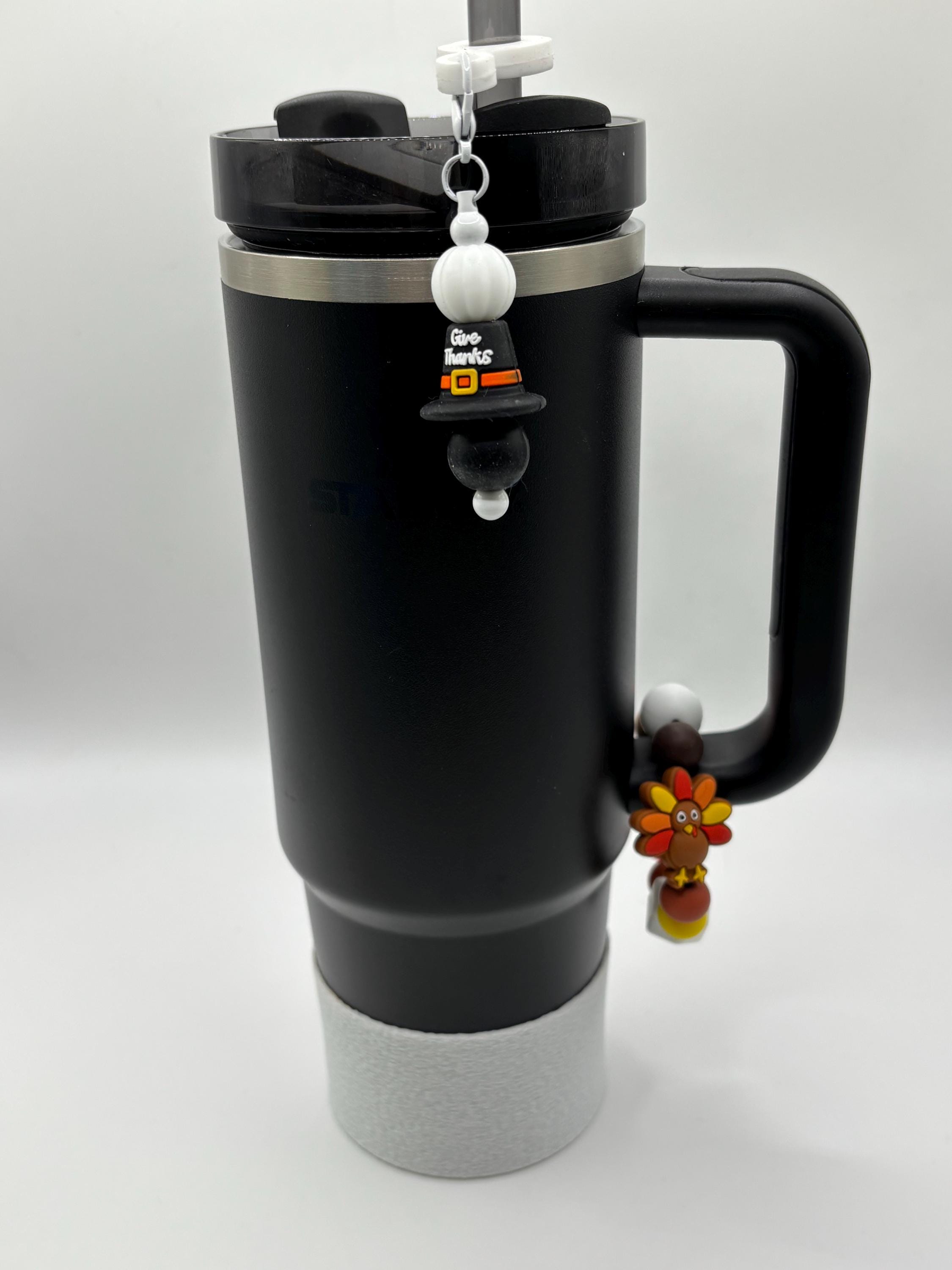 These Thanksgiving handle and straw charm bracelets are made for your Tumbler and are shown on a 30 Ounce Stanley. They will fit any tumbler with a handle/ straw.