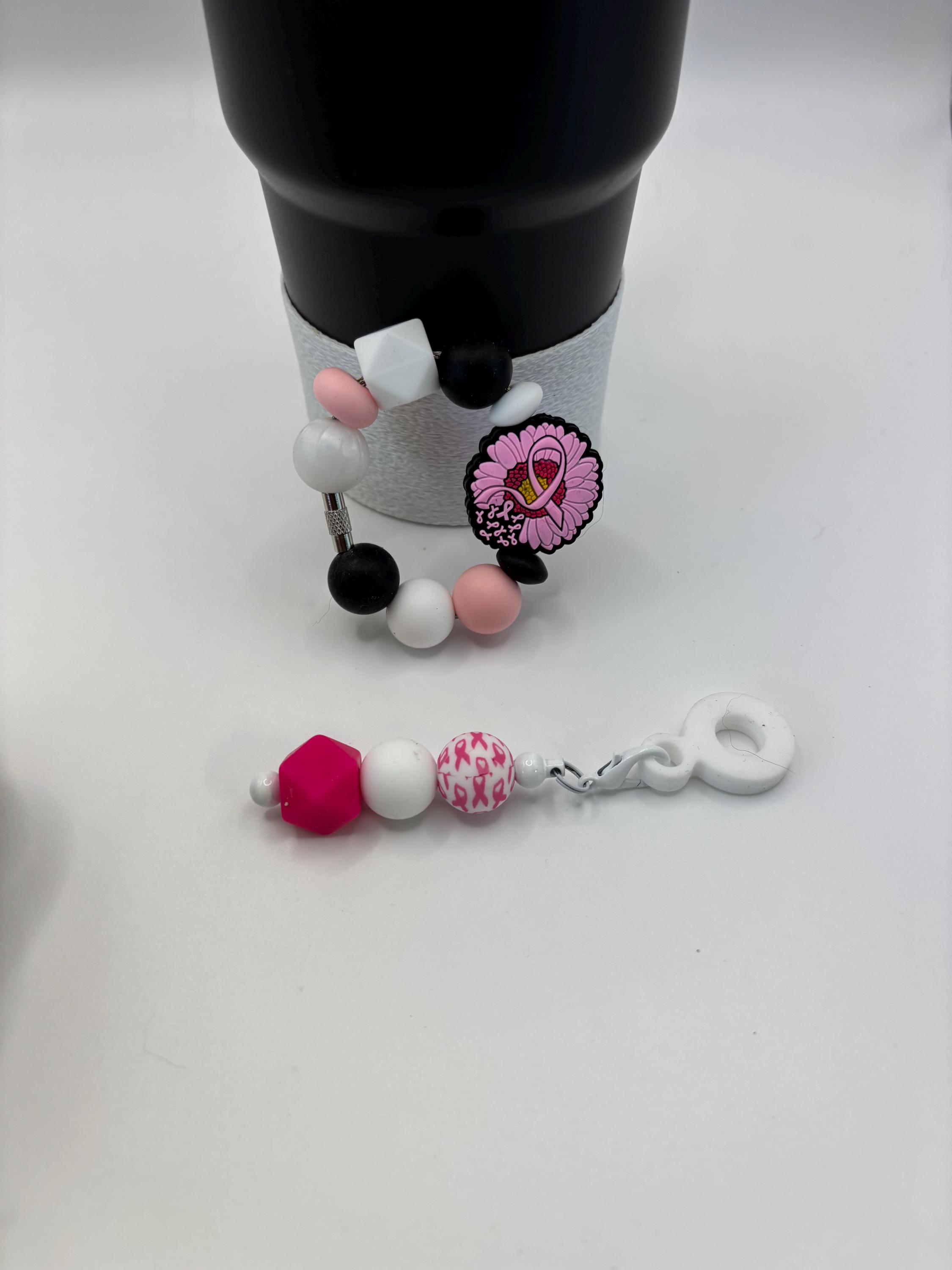 Breast Cancer Pink Ribbon Awareness Stanley Cup Bracelet: Cup Handle Bracelet | Straw Charm | Purse Bracelet |