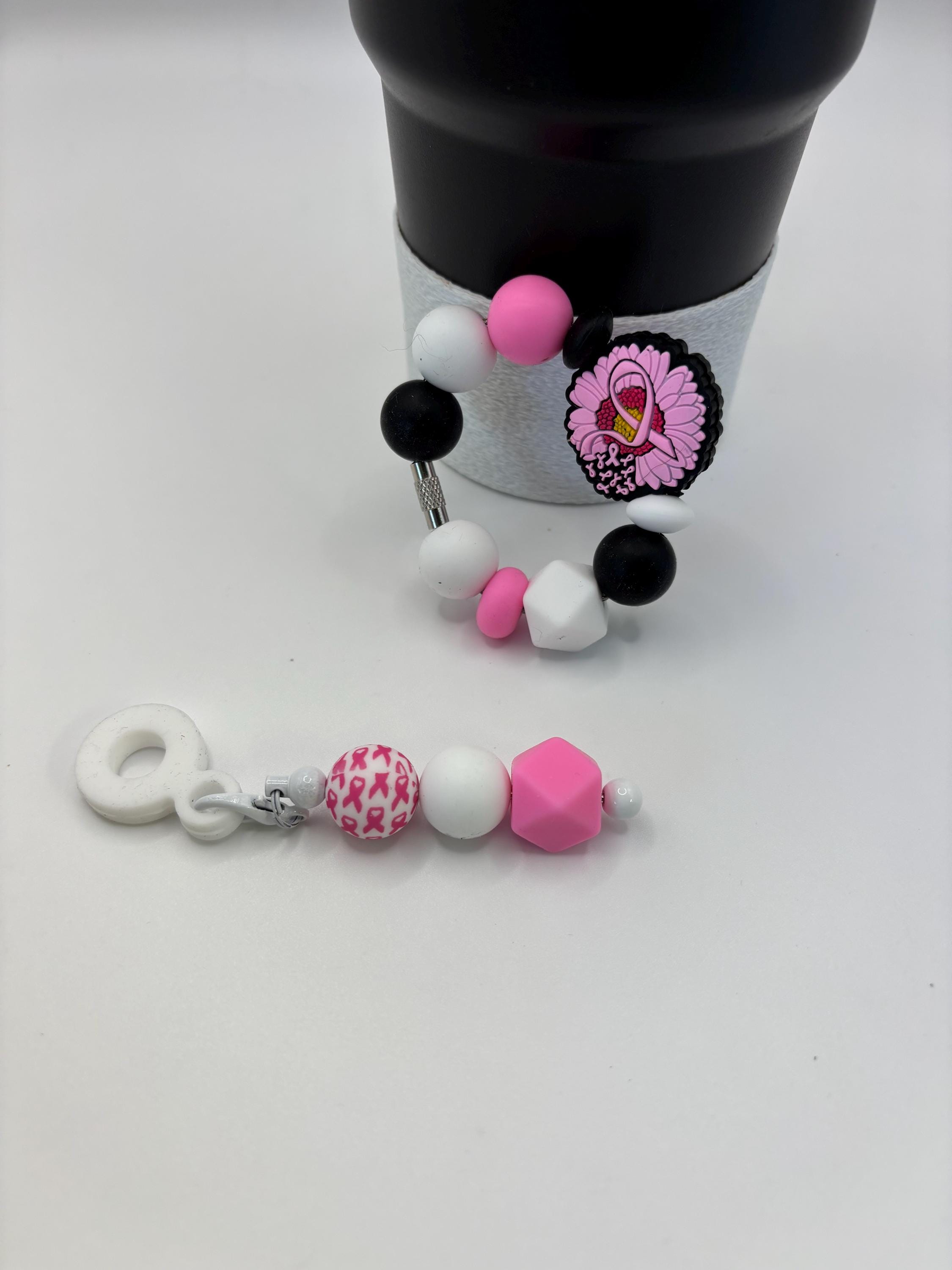 These handle and straw charm bracelets are made for your Tumbler and are shown on a 30 Ounce Stanley. They will fit any tumbler with a handle/ straw and could also be purse charms too !
