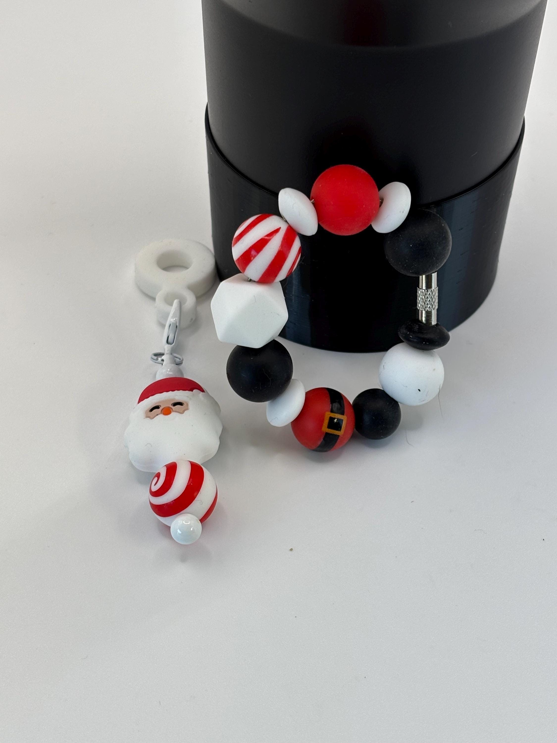 These holiday handle bracelets and straw charms are made for your Tumbler and are shown on a 30 Ounce Stanley. They will fit any tumbler with a handle and or straw and could also be purse charms too !