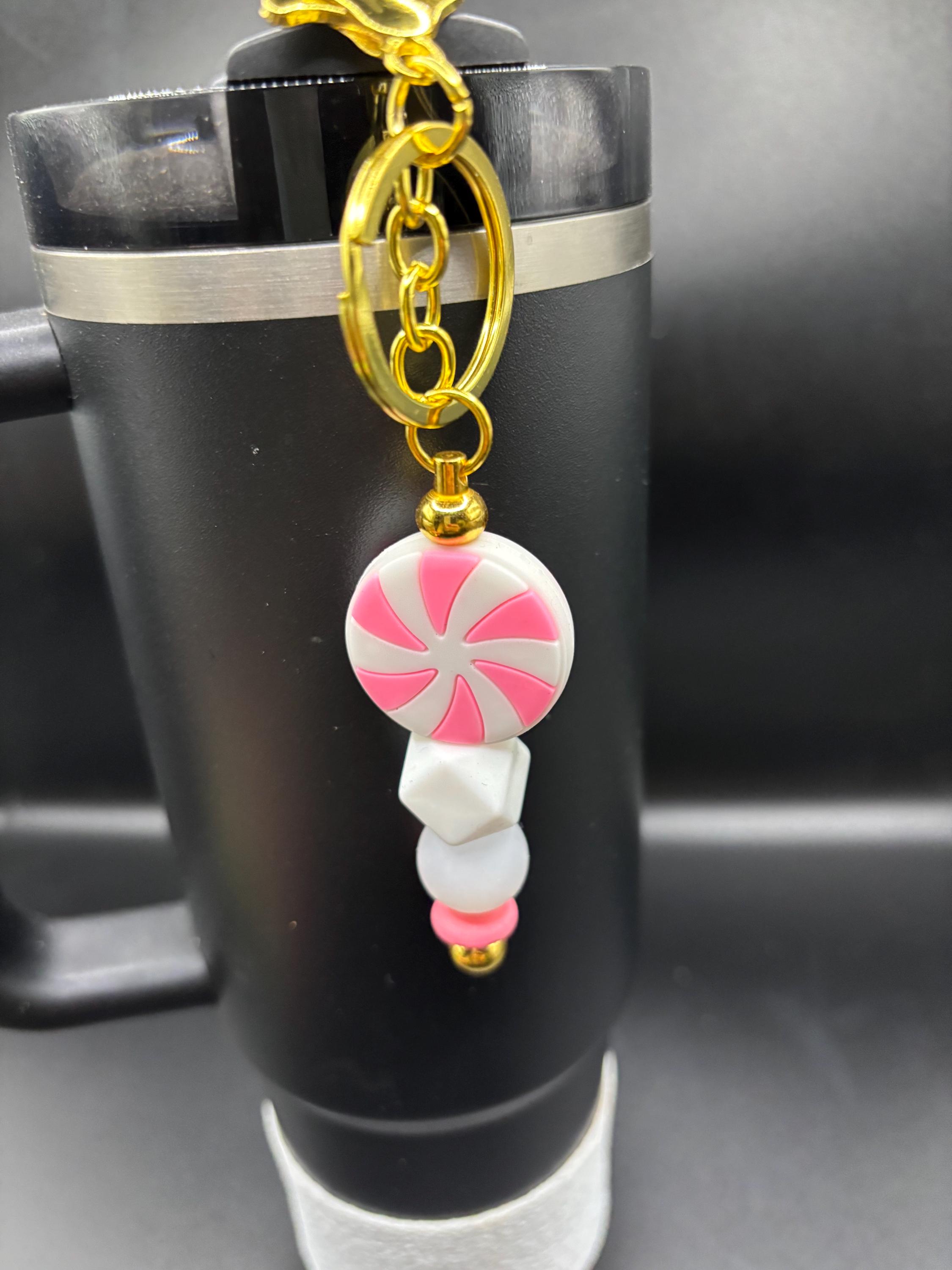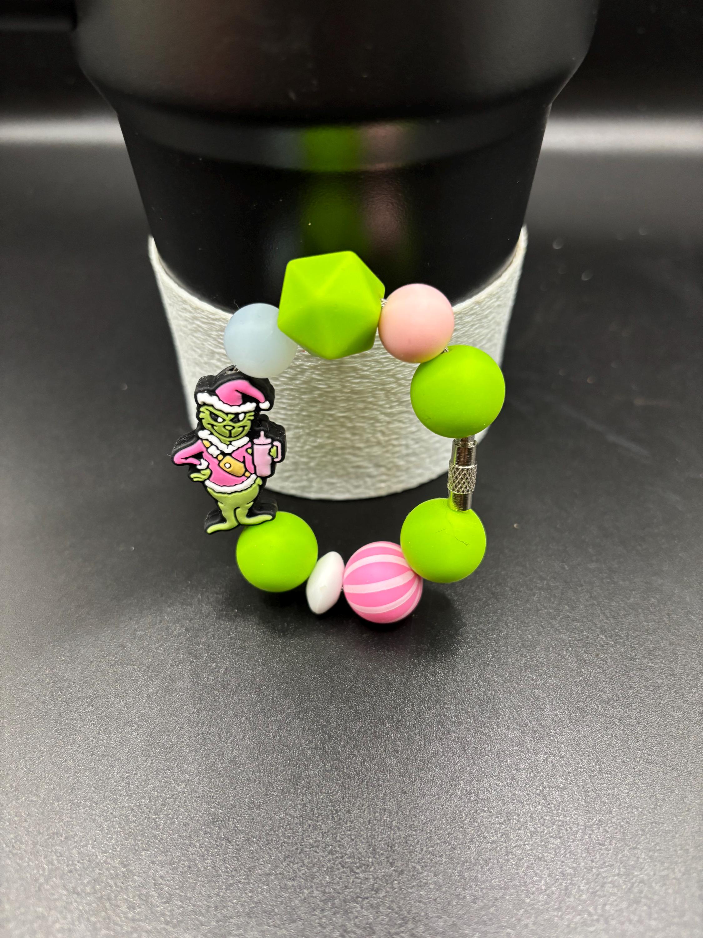 These holiday handle bracelets and straw charms are made for your Tumbler and are shown on a 30 Ounce Stanley. They will fit any tumbler with a handle and or straw and could also be purse charms too !