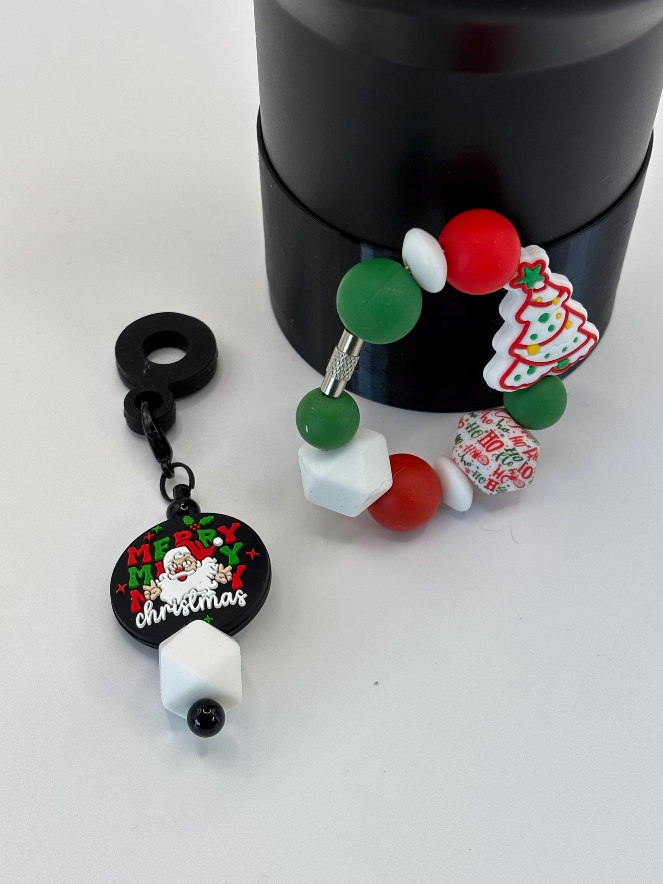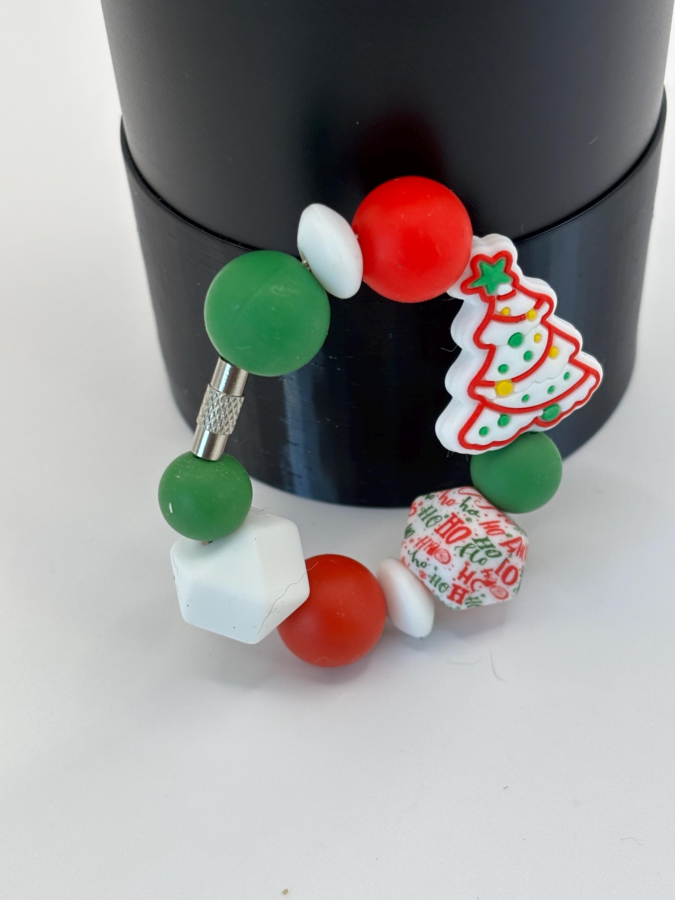 These holiday handle bracelets and straw charms are made for your Tumbler and are shown on a 30 Ounce Stanley. They will fit any tumbler with a handle and or straw and could also be purse charms too !
