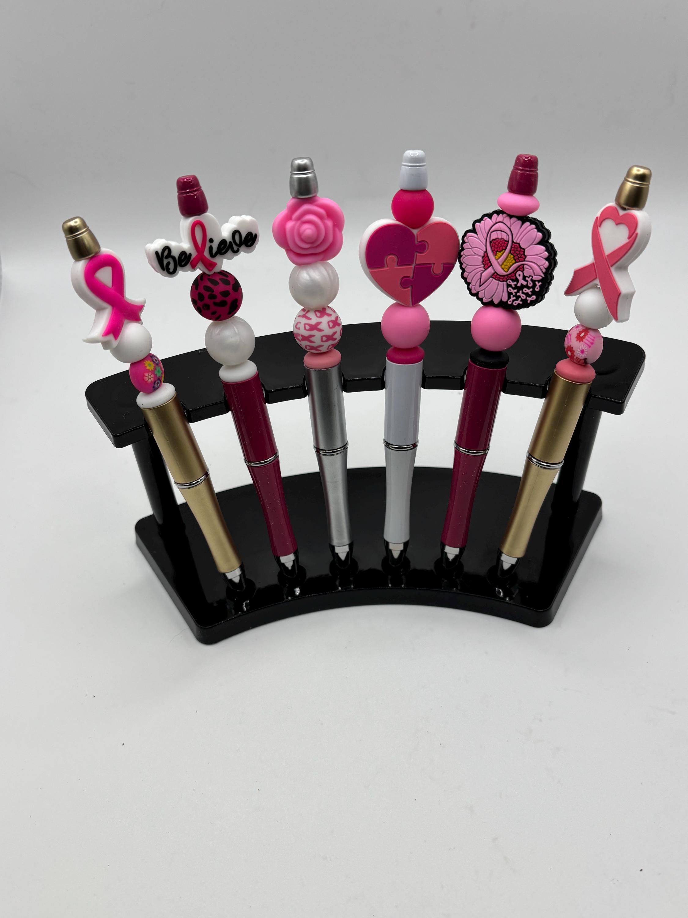 The theme for these silicone beaded pens are Breast Cancer Awareness. For supporters, survivors and warriors.