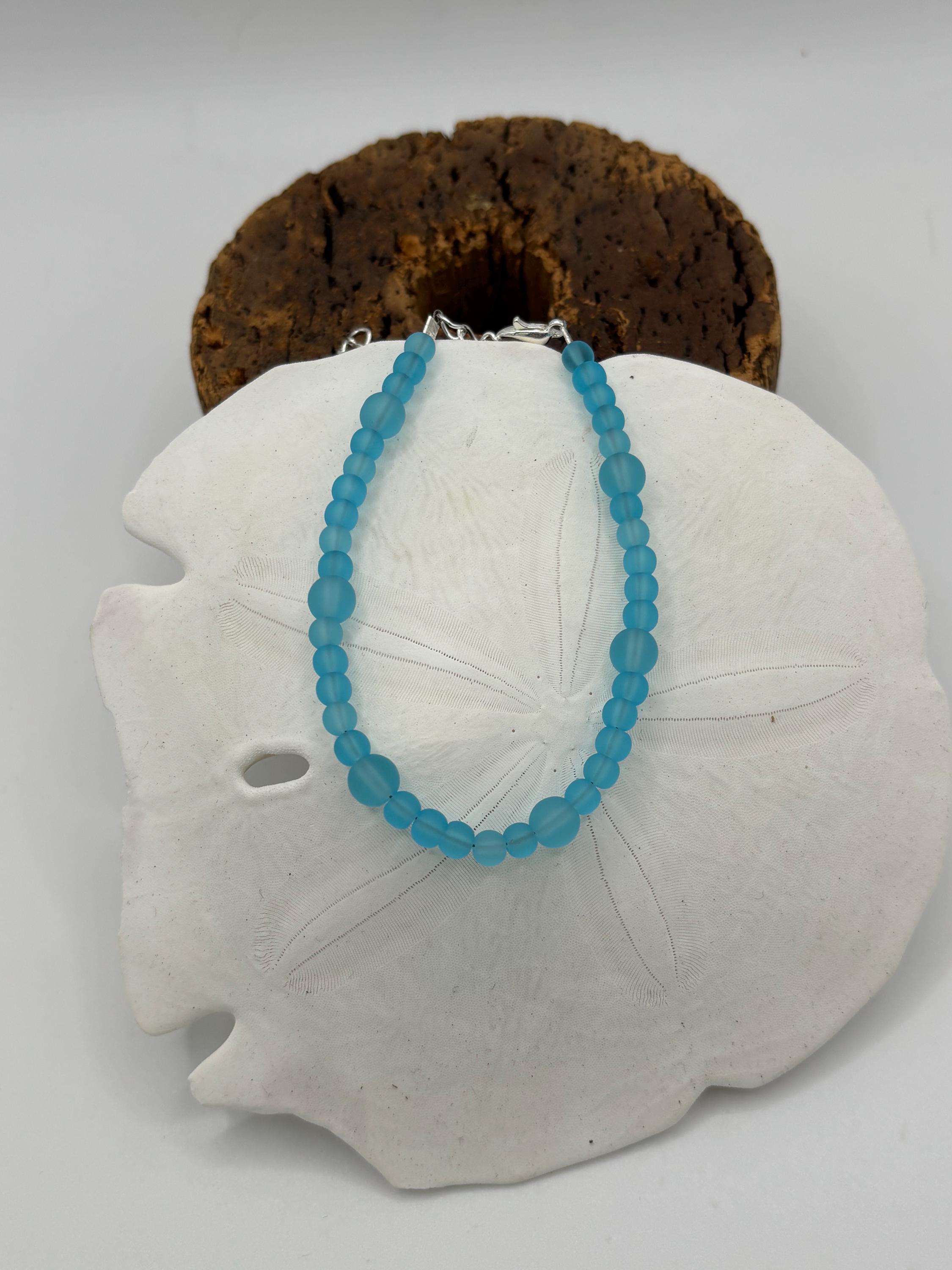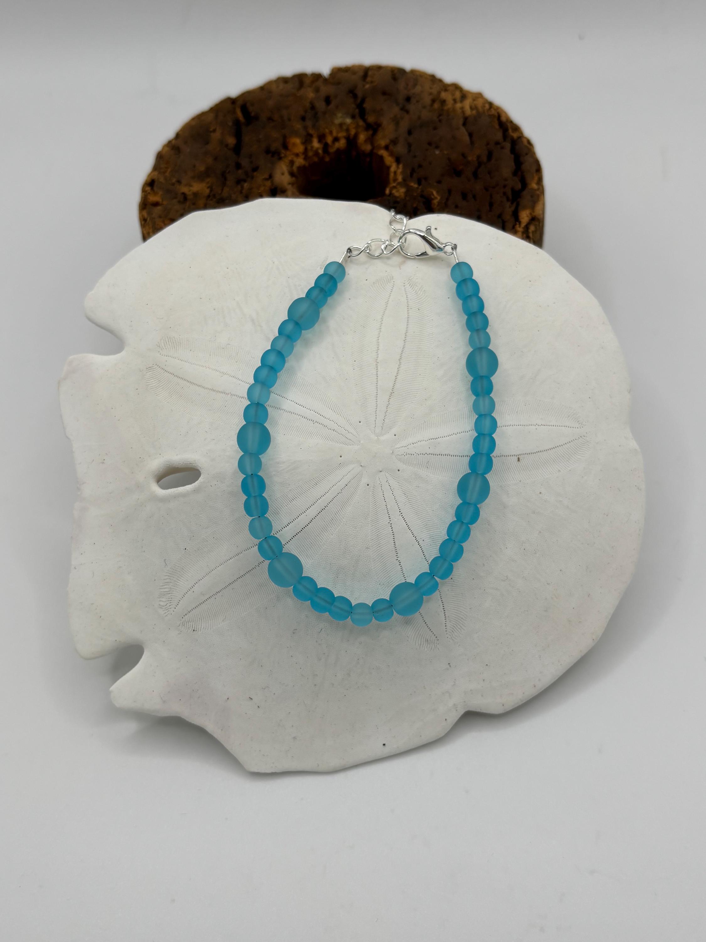 This beautiful Seaglass bracelet is made with Turquoise Blue Colored Seaglass. It is delicate, made with 4mm round beads. Truly for the minimalist.