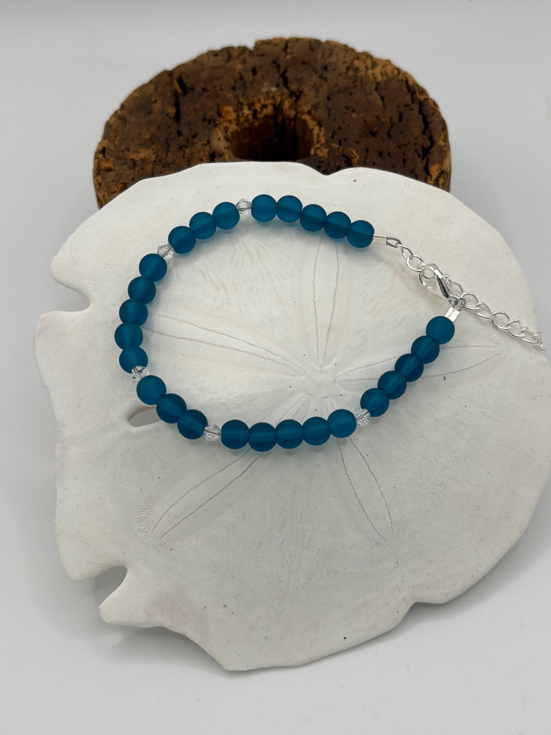 This beautiful Seaglass bracelet is made with Blue Colored Seaglass. It is a pretty peacock blue color.