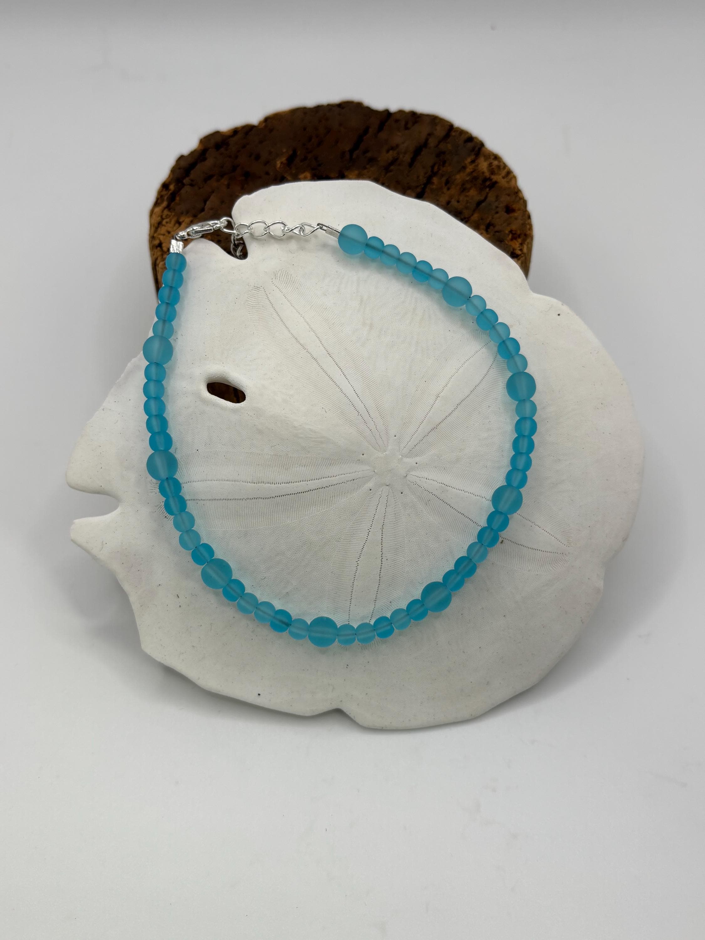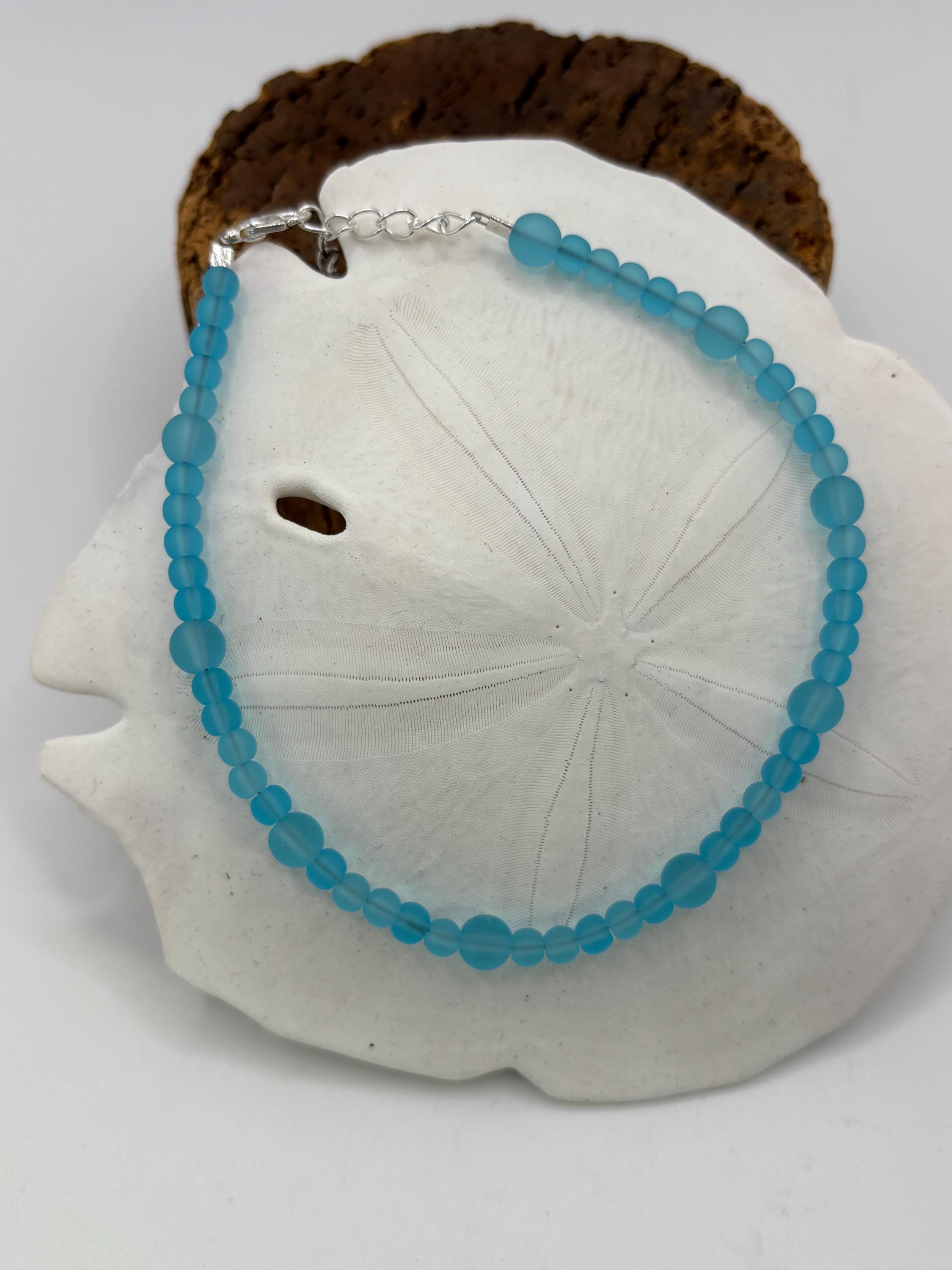 This beautiful Seaglass ankle bracelet is made with 4mm small rounds in turquoise blue and 6mm accent Seaglass.