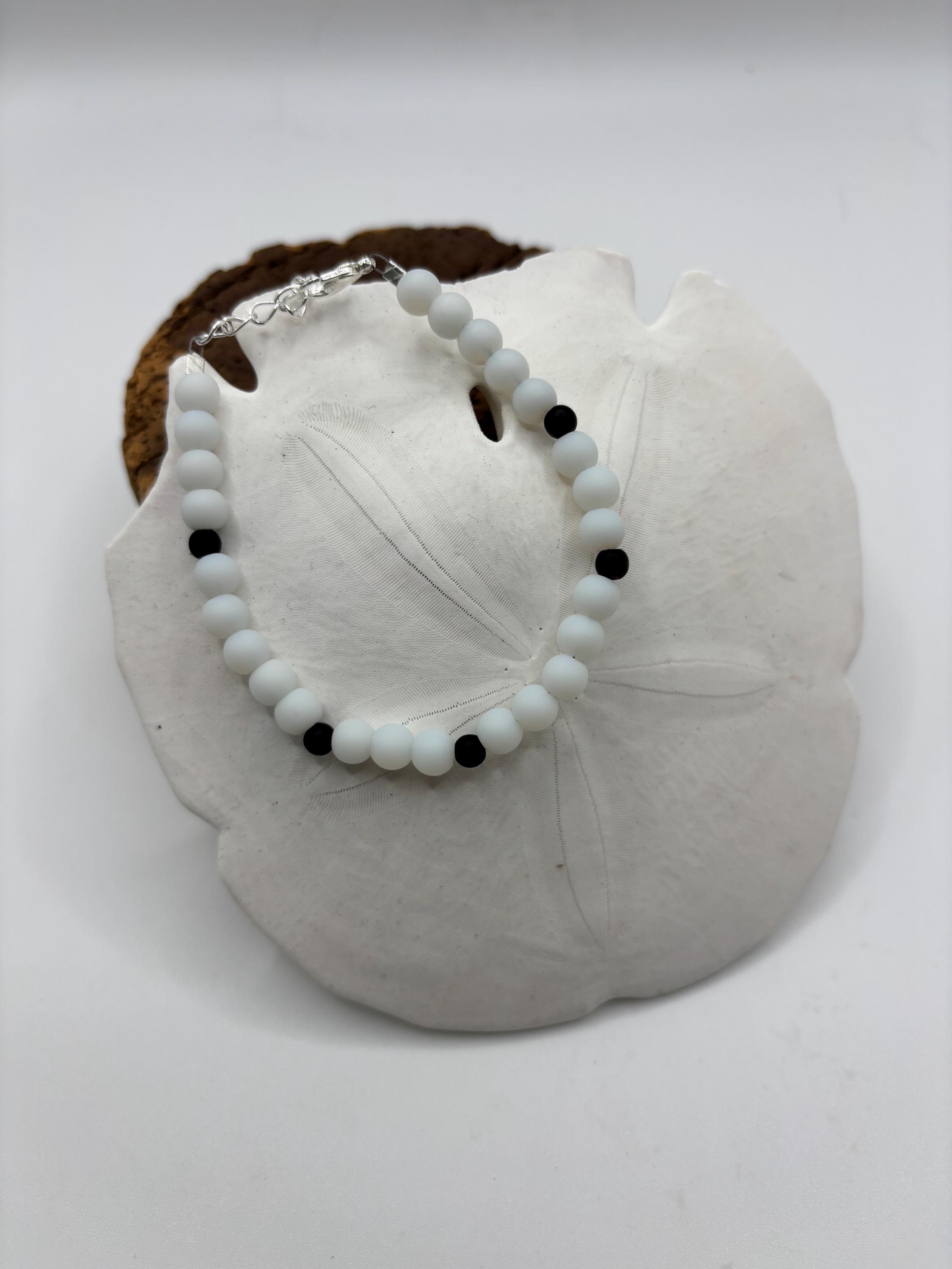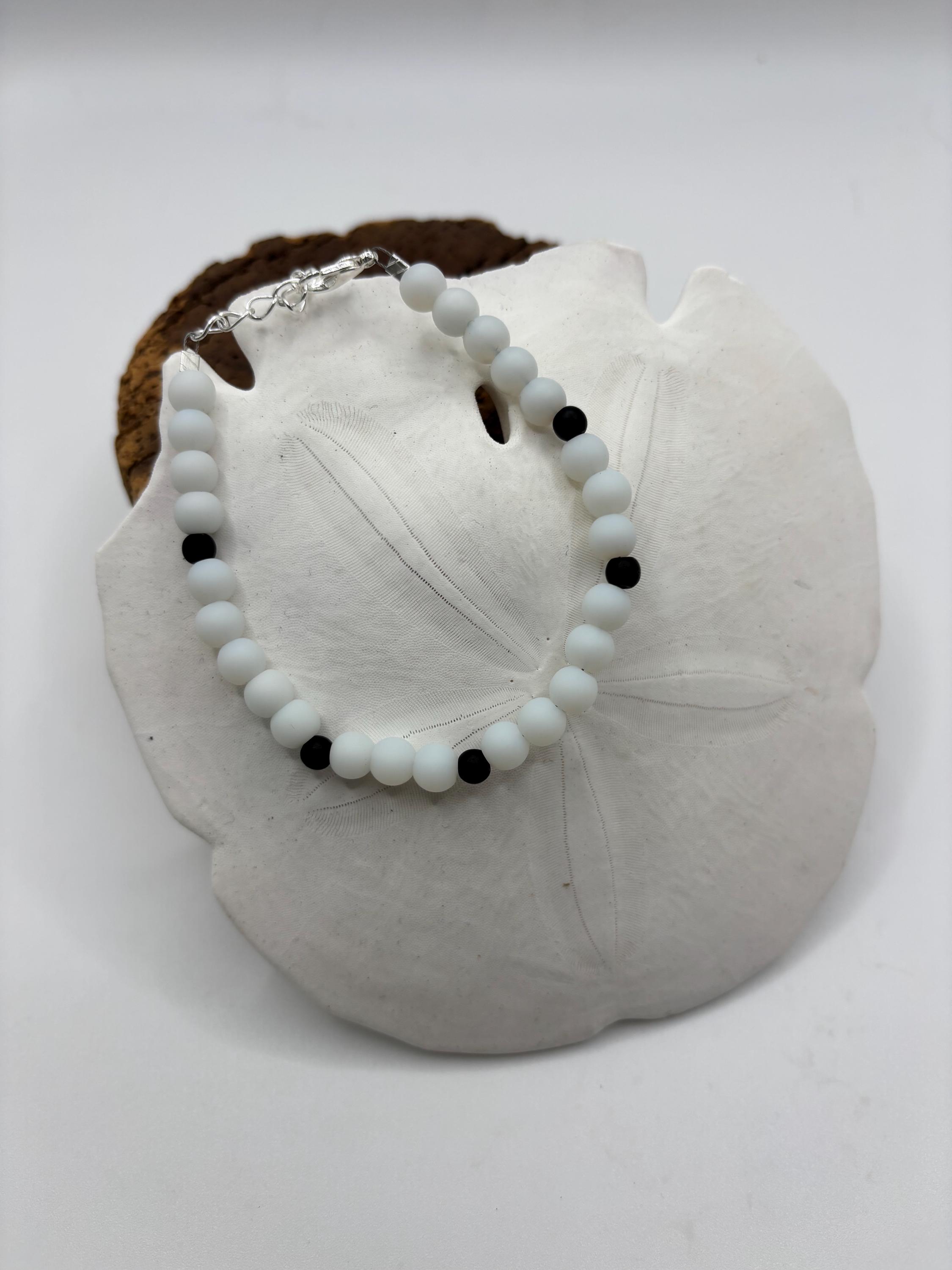This beautiful Seaglass bracelet is made with white Seaglass and black Seaglass accent beads.