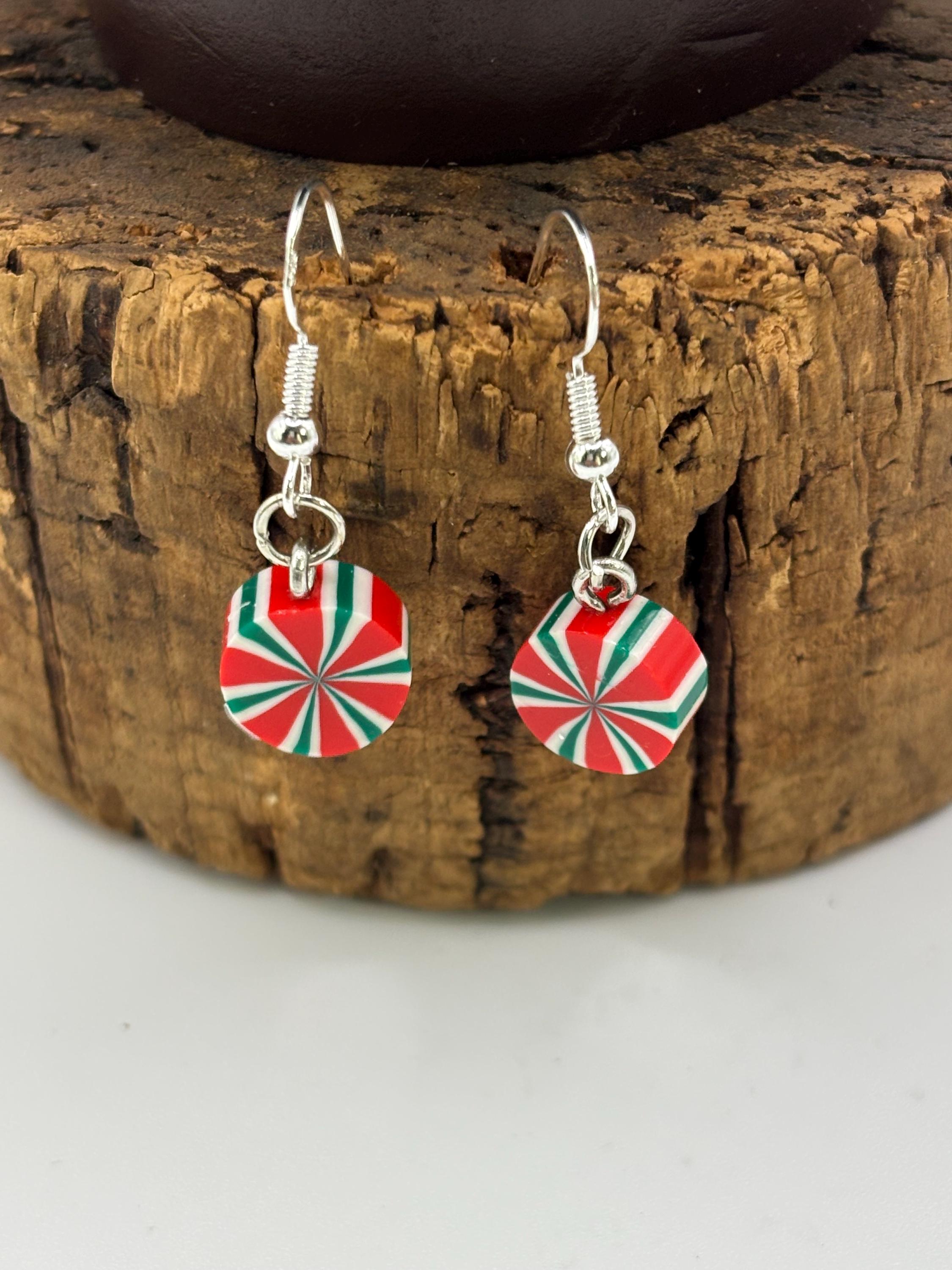 These light weight Christmas peppermint candy earrings are acrylic and will be the perfect accessory for Christmas.