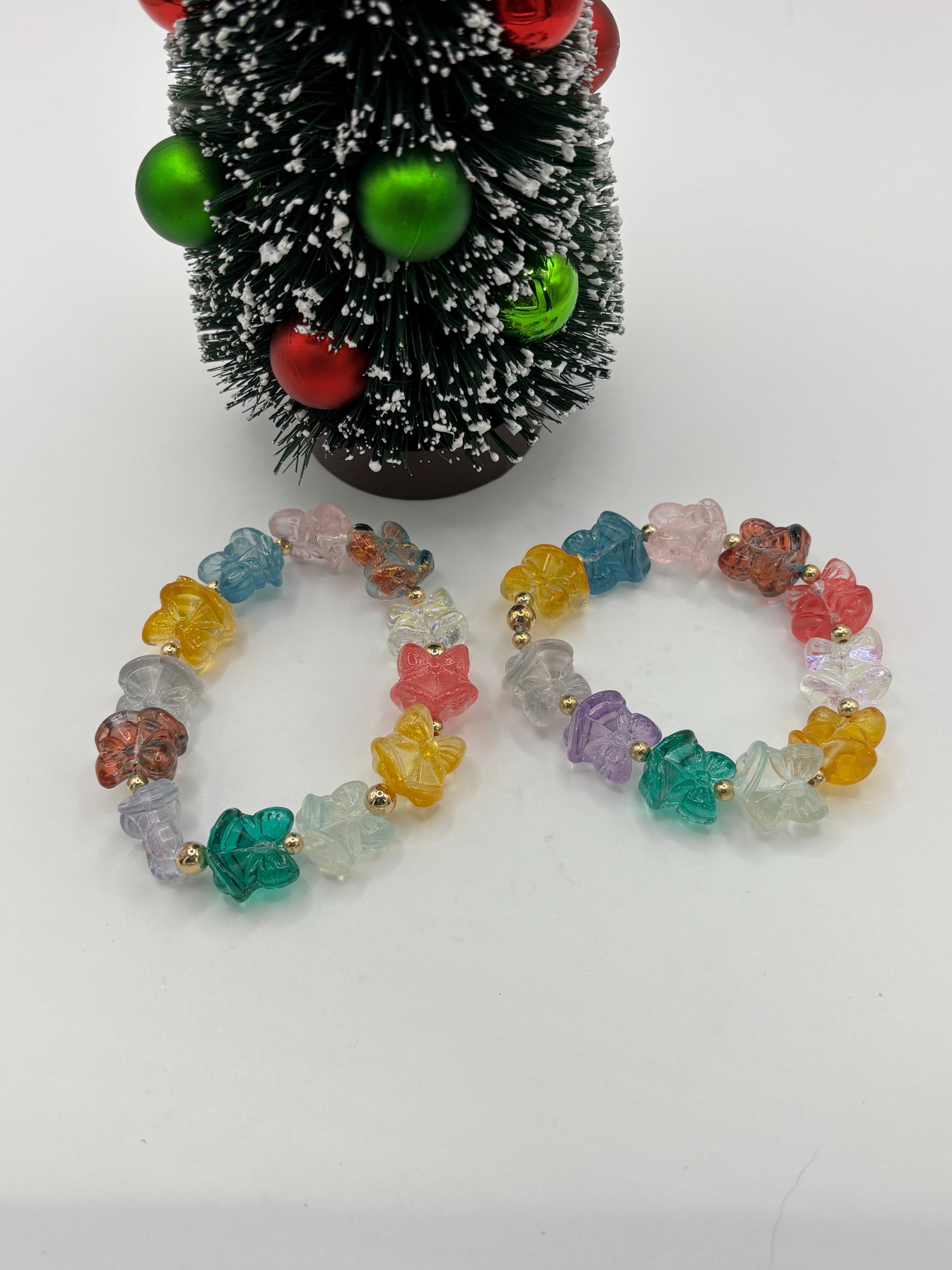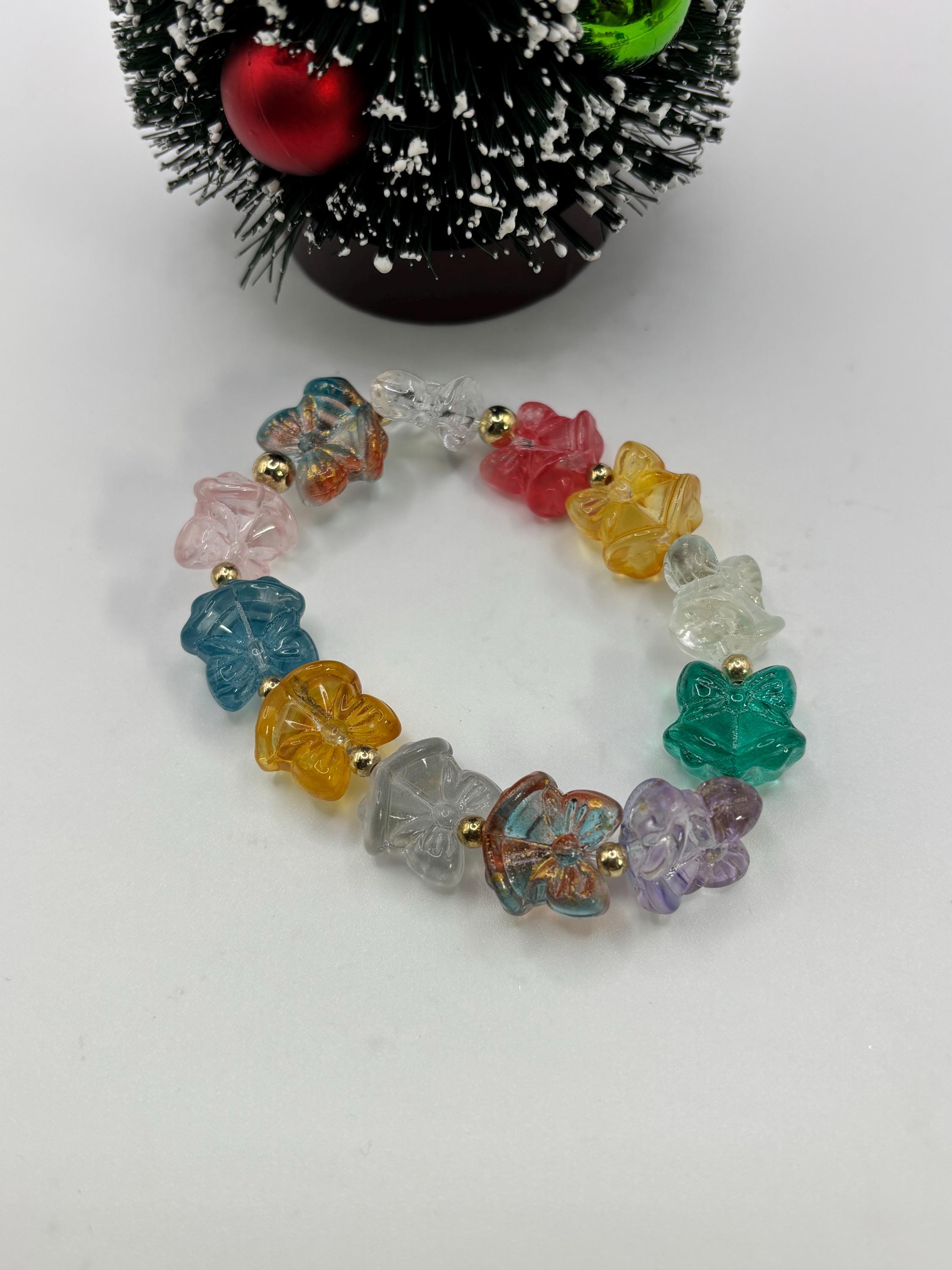Bracelet has lampwork bells and bows in pretty colors.