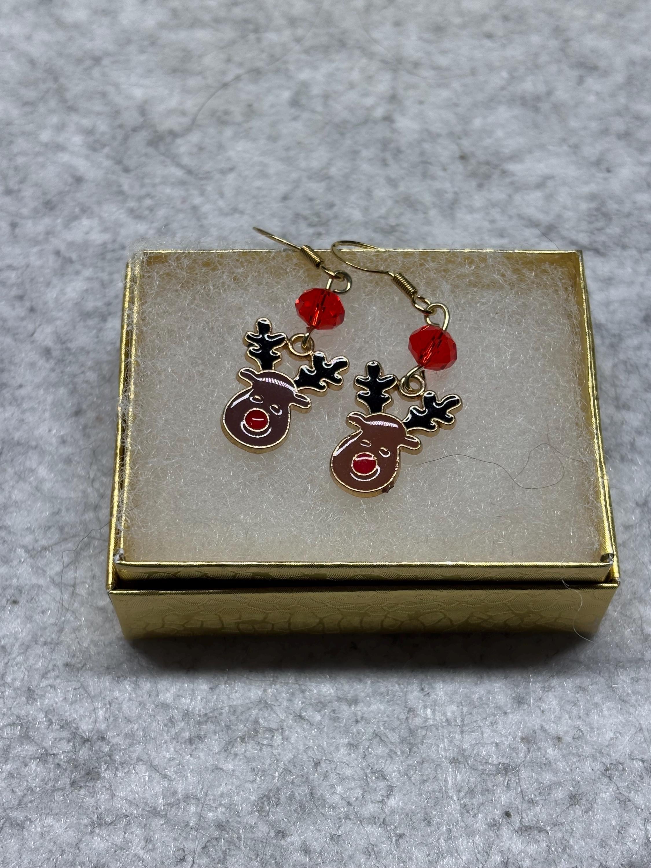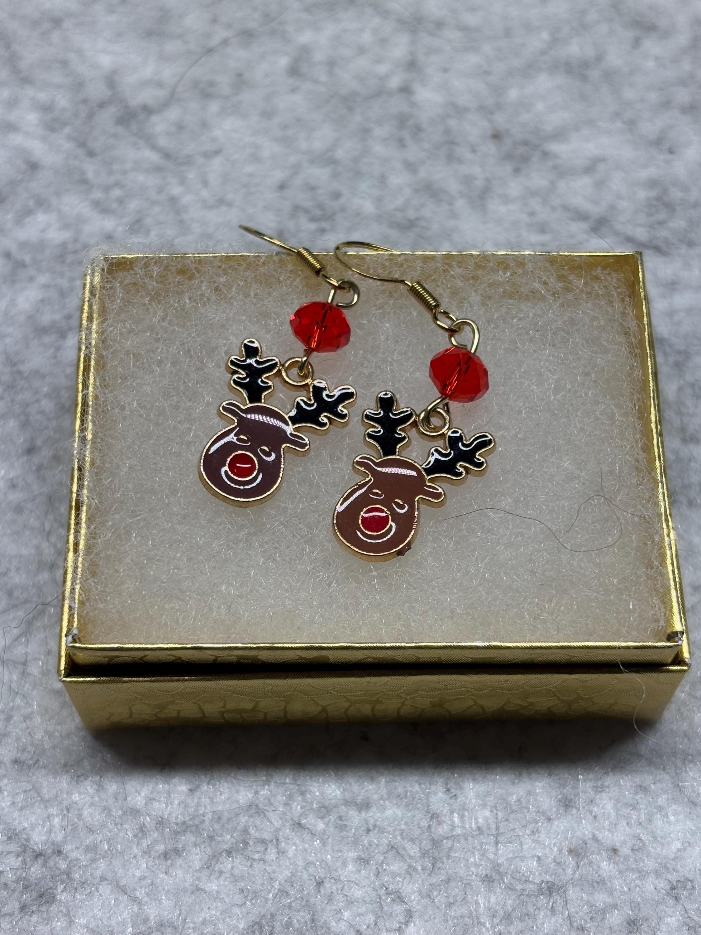 These Christmas earrings are enamel on metal and will be the perfect accessory for the Christmas season. They are on sterling silver ear wires.