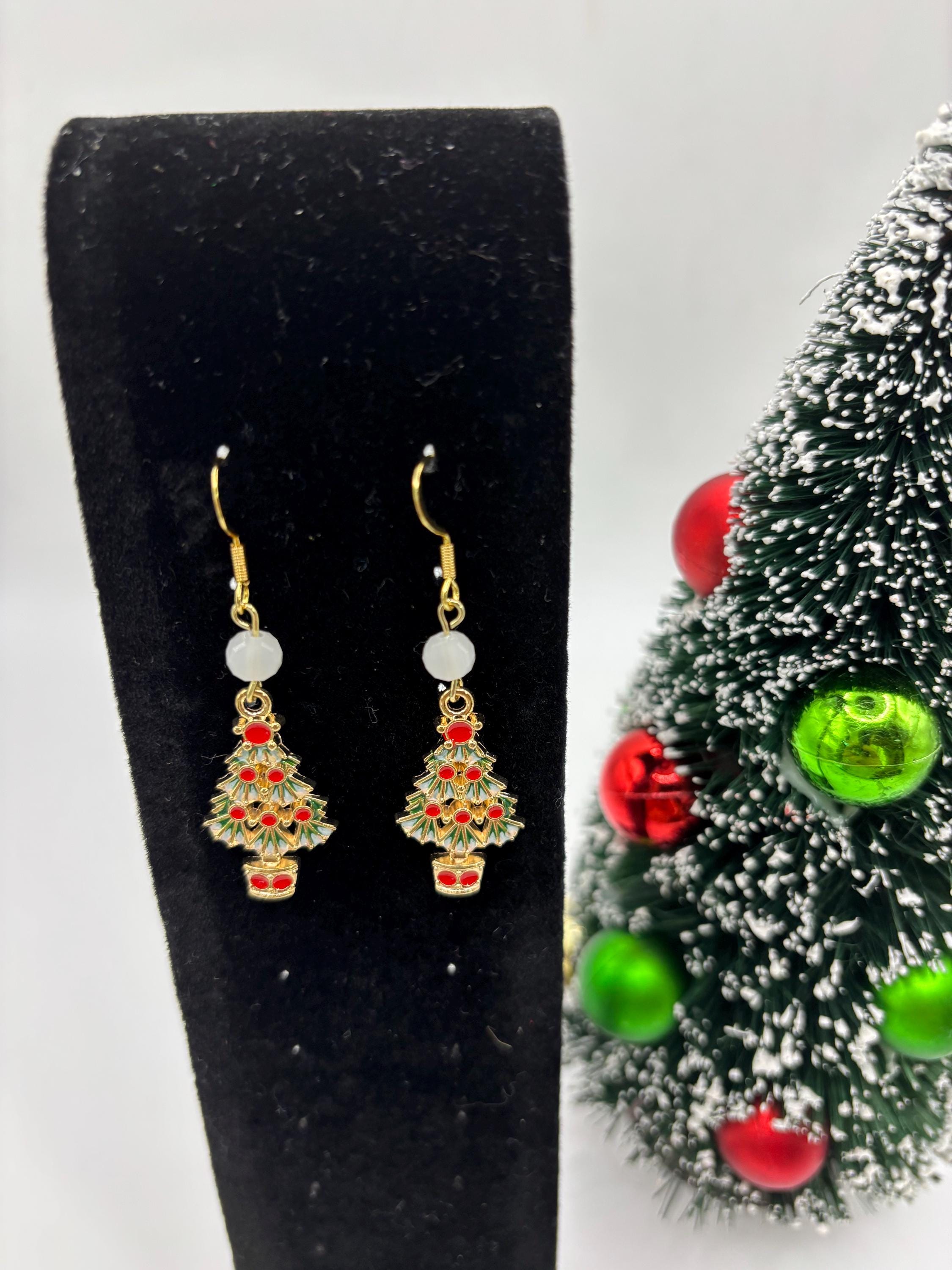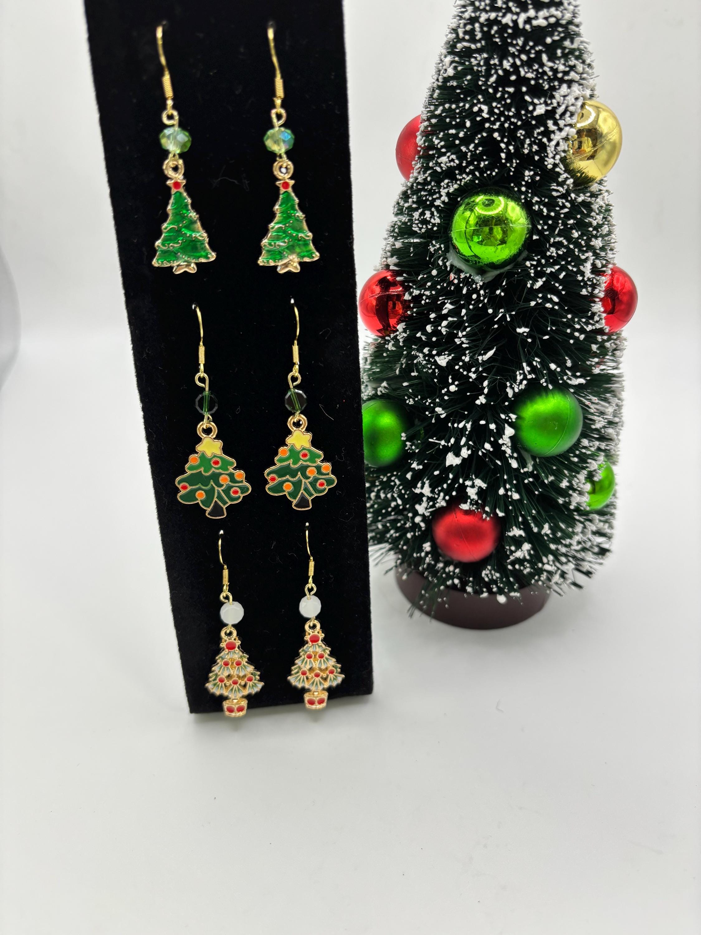 These Christmas earrings are enamel on metal and will be the perfect accessory for the Christmas season. 4 styles of Christmas trees
