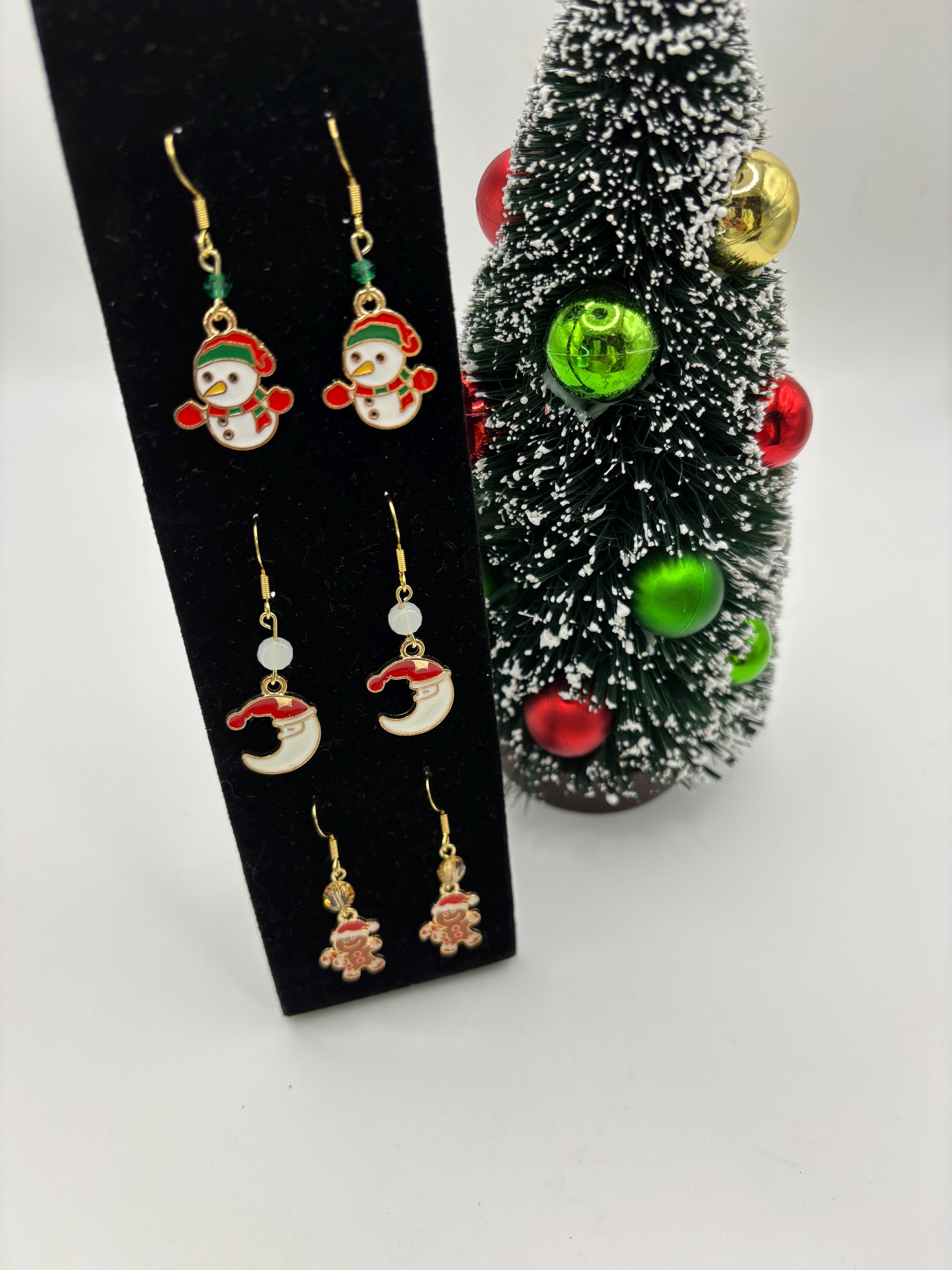 Christmas Earrings | Holiday Earrings | Christmas Earrings | Gingerbread man | Santa Moon | Snowman