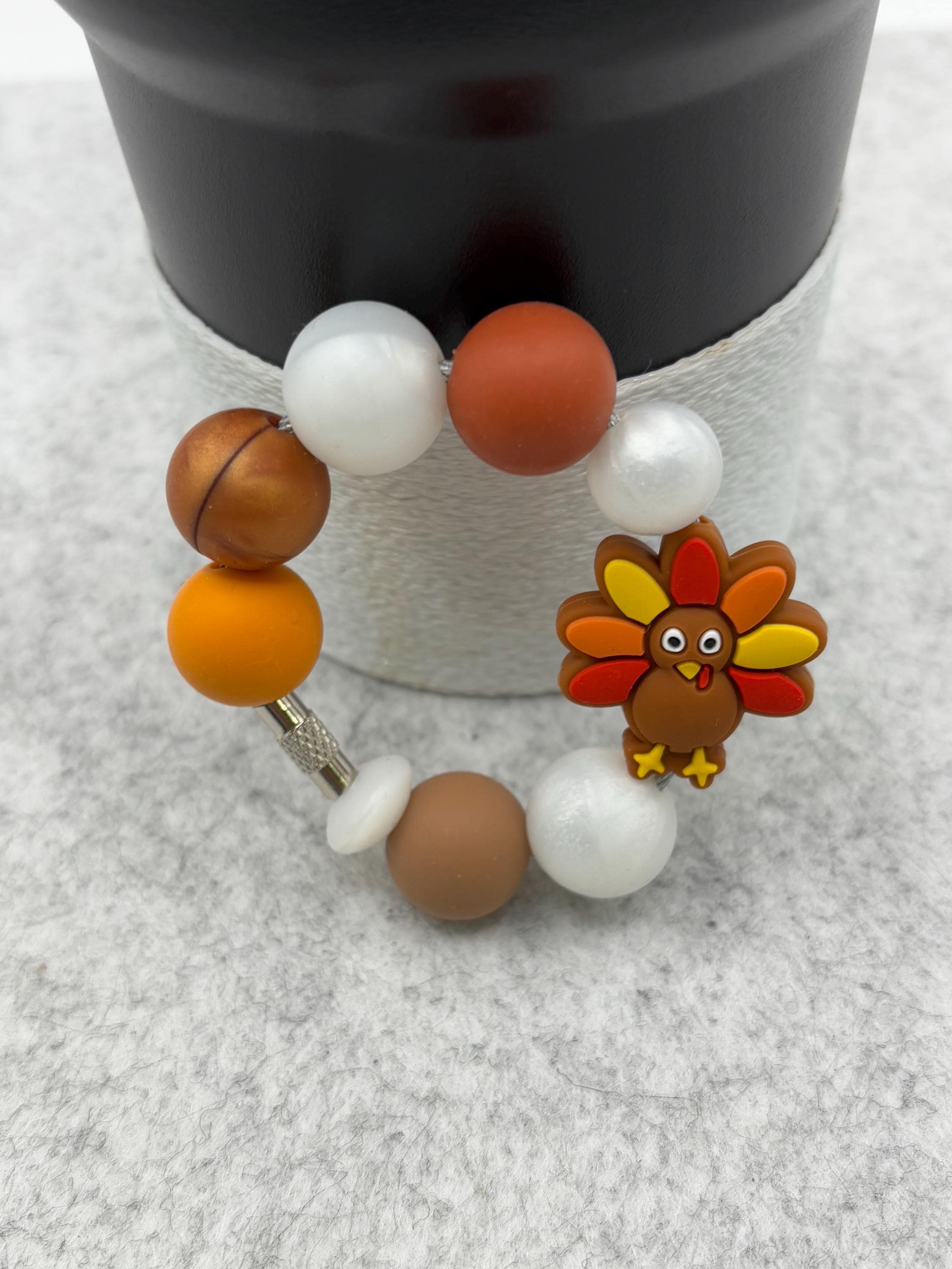 These Thanksgiving handle and straw charm bracelets are made for your Tumbler and are shown on a 30 Ounce Stanley. They will fit any tumbler with a handle/ straw.