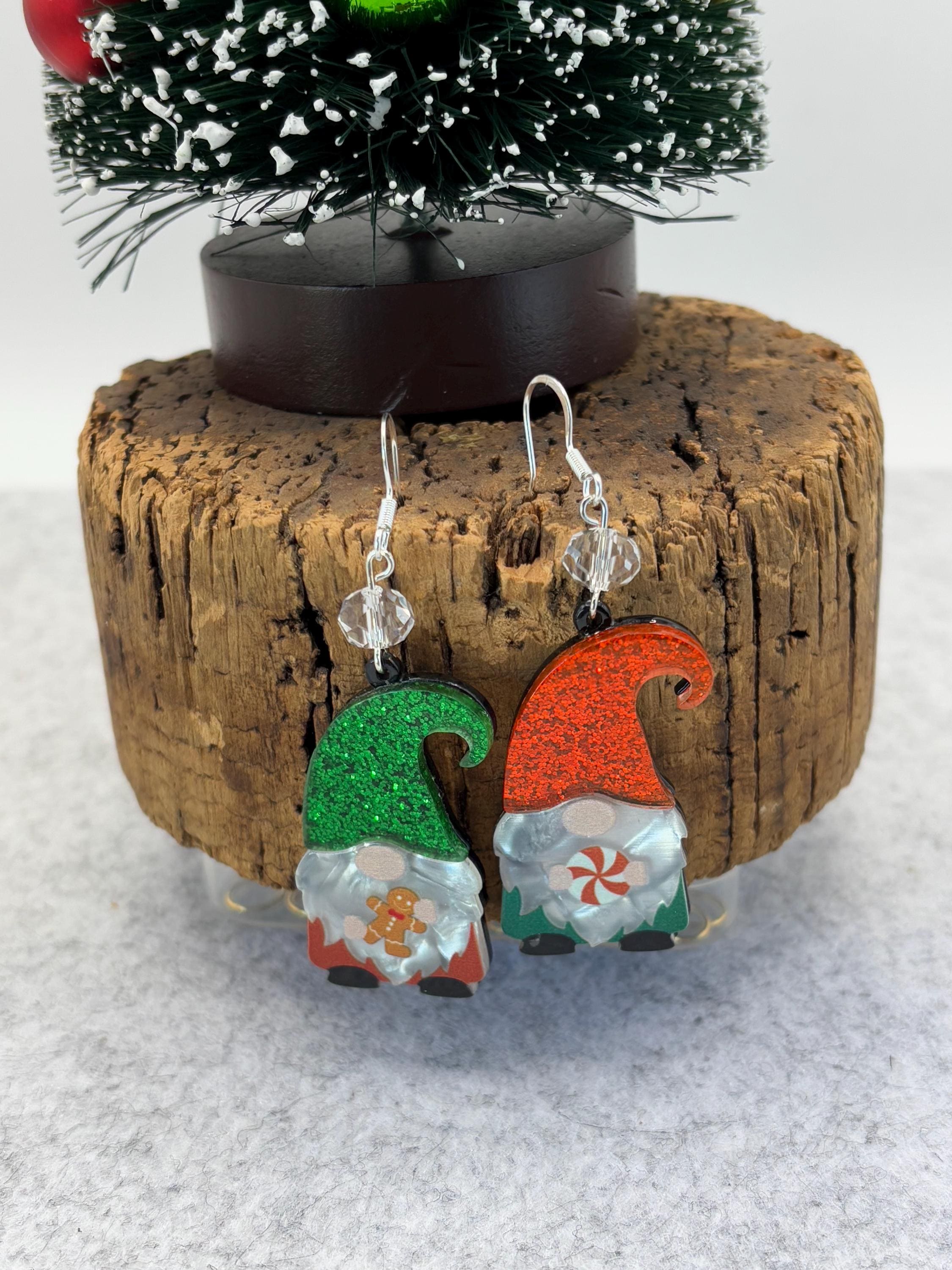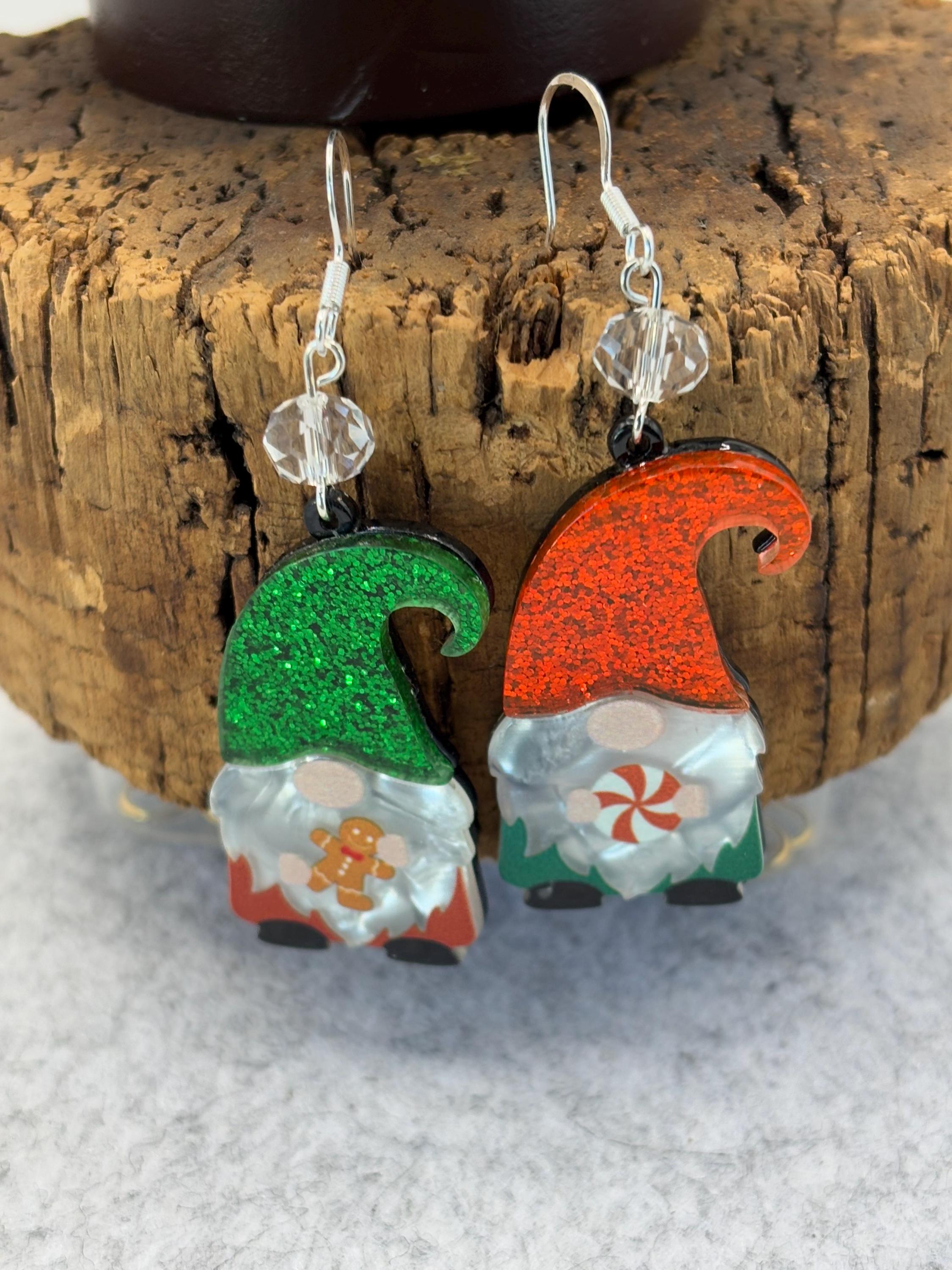 These light weight Christmas Gnome earrings are acrylic and will be the perfect accessory for an Ugly (or not) sweater contest!