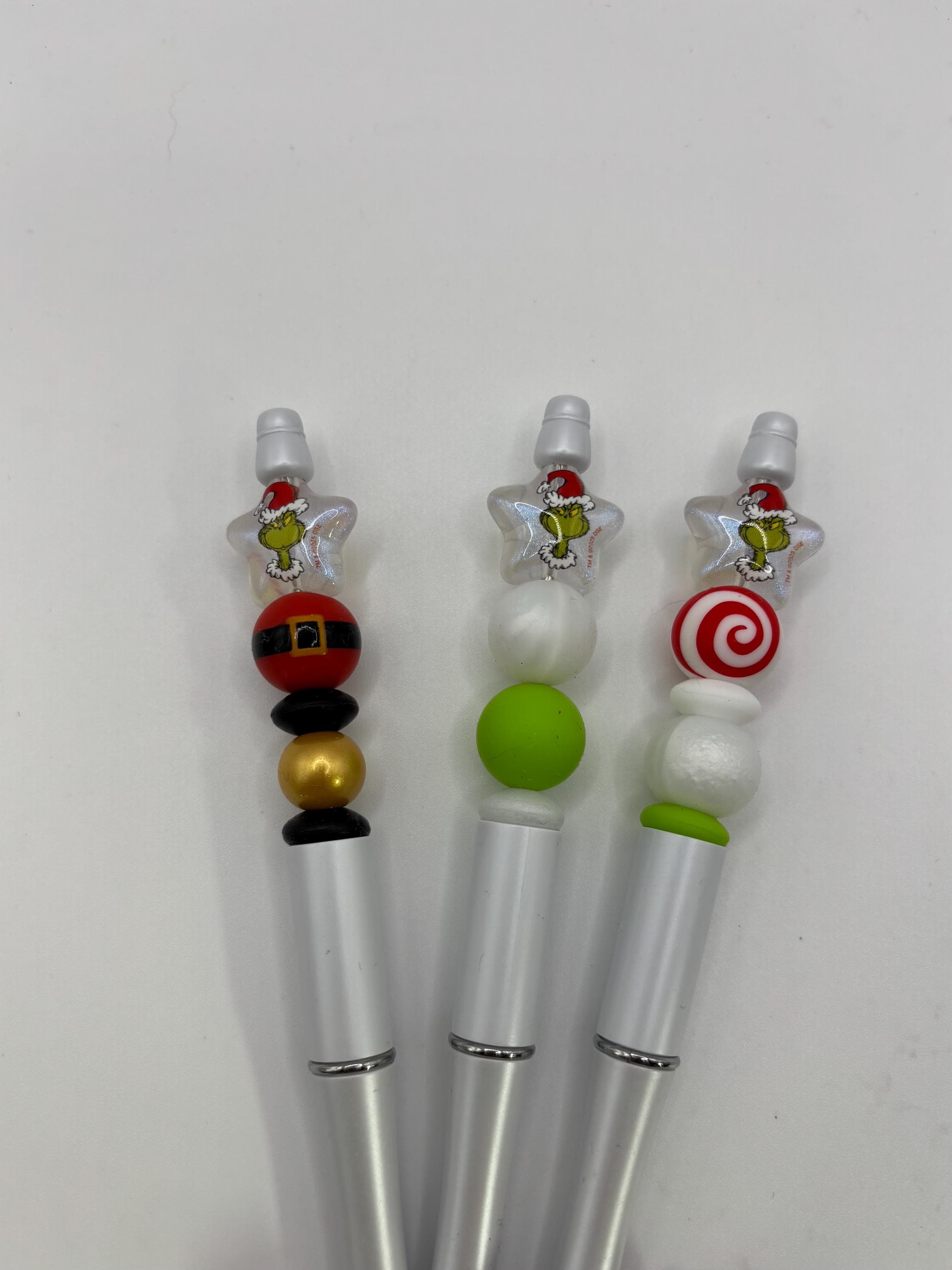 The theme for these silicone beaded pens is Christmas . Perfect for the holidays !