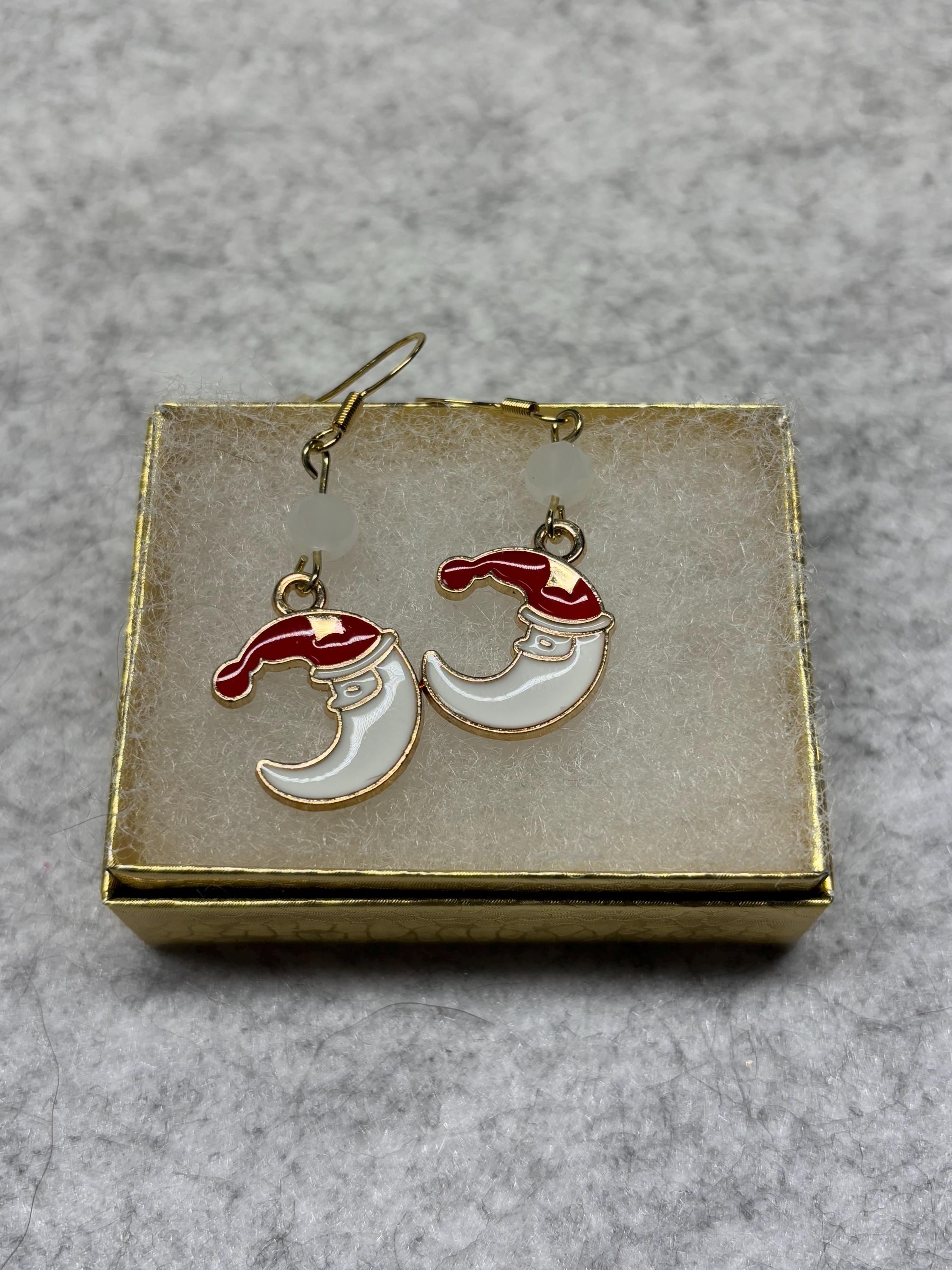 Christmas Earrings | Holiday Earrings | Christmas Earrings | Santa Moon