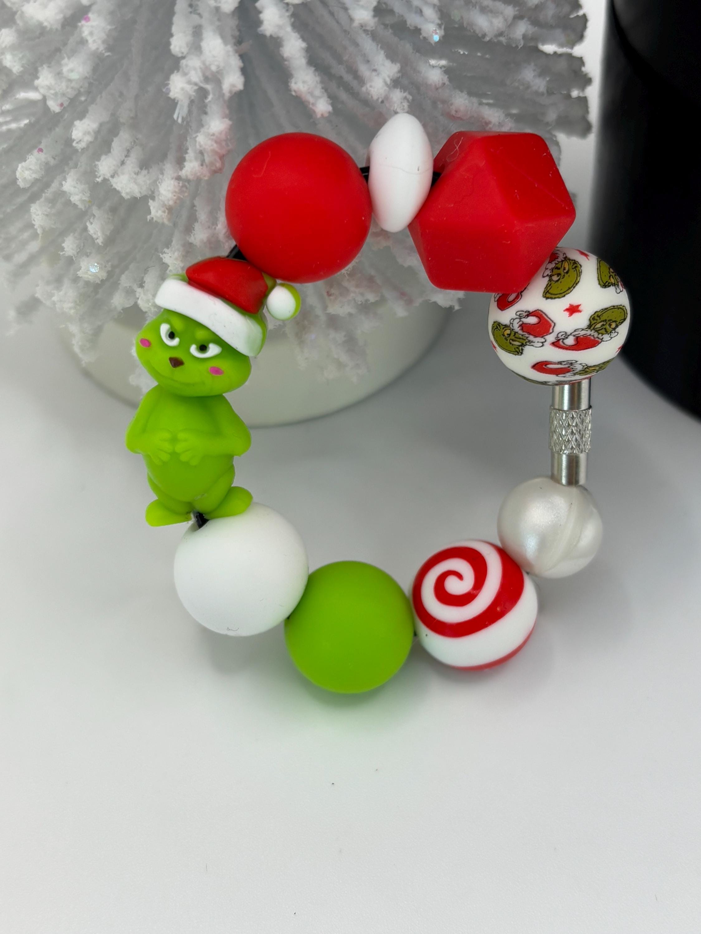 These holiday handle bracelets and straw charms are made for your Tumbler and are shown on a 30 Ounce Stanley. They will fit any tumbler with a handle and or straw.