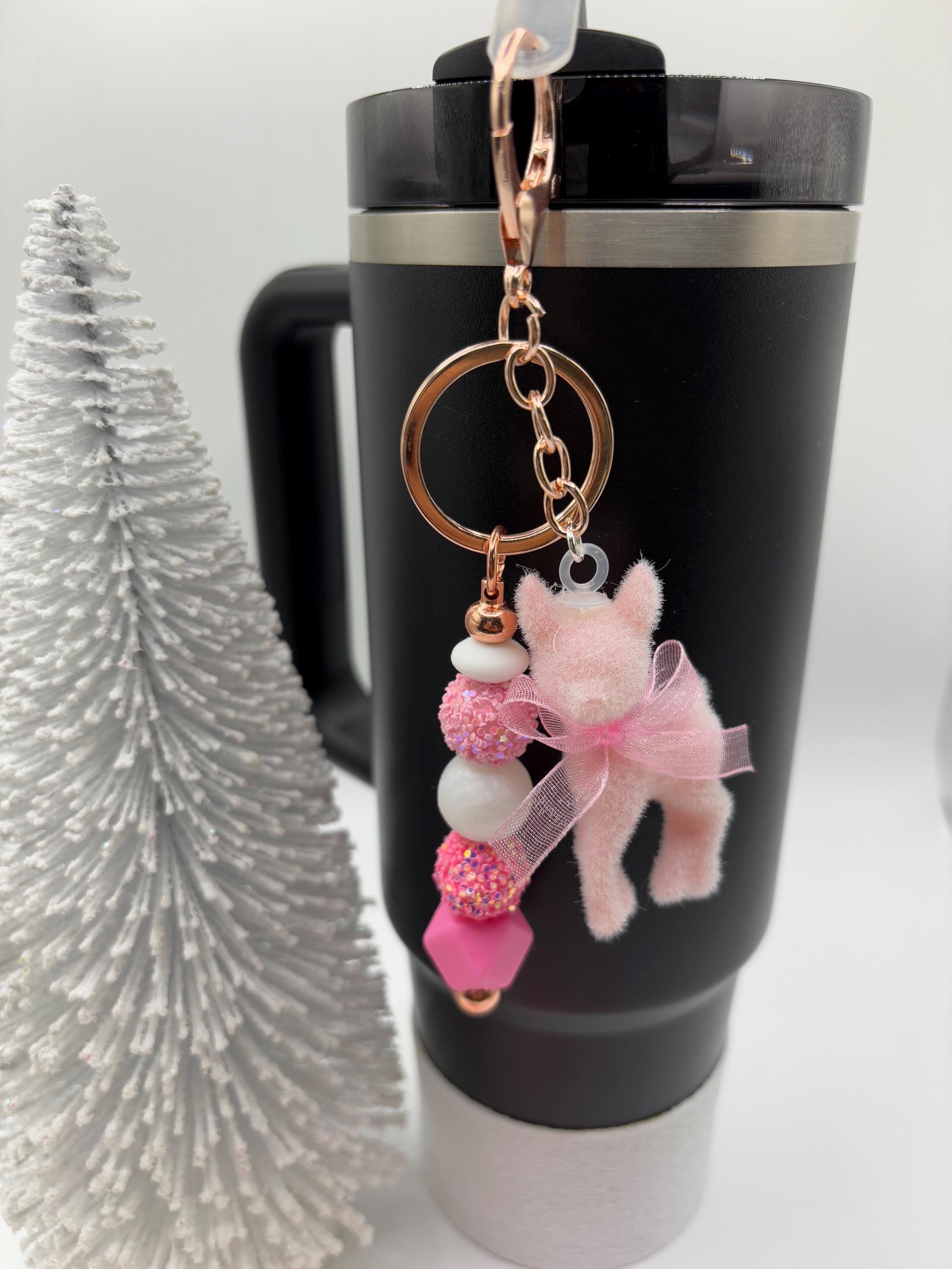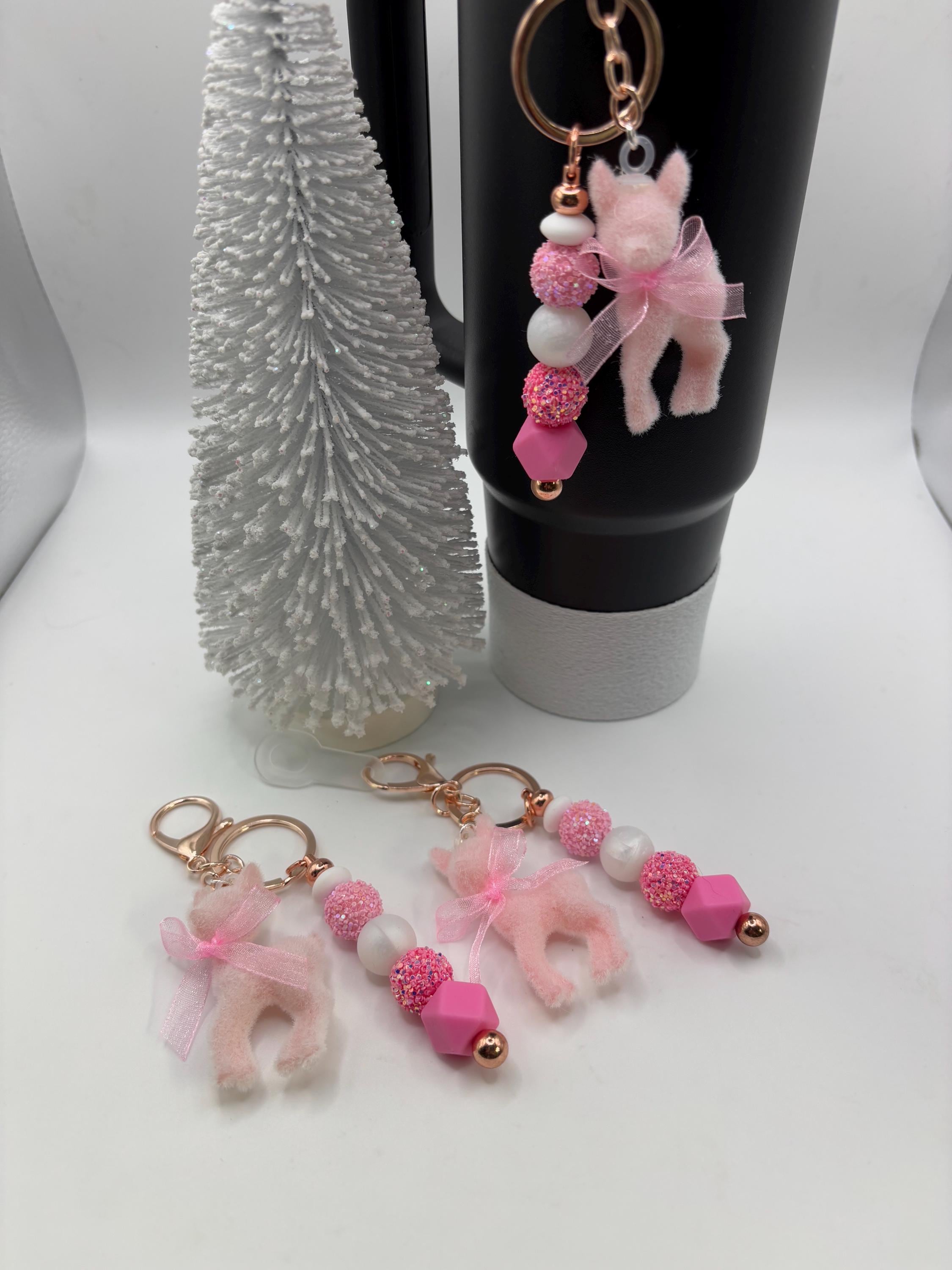 These holiday straw charms are made for your Tumbler and are shown on a 40 Ounce Stanley. They will fit any tumbler with a straw. These fun pink reindeer definitely make a statement!