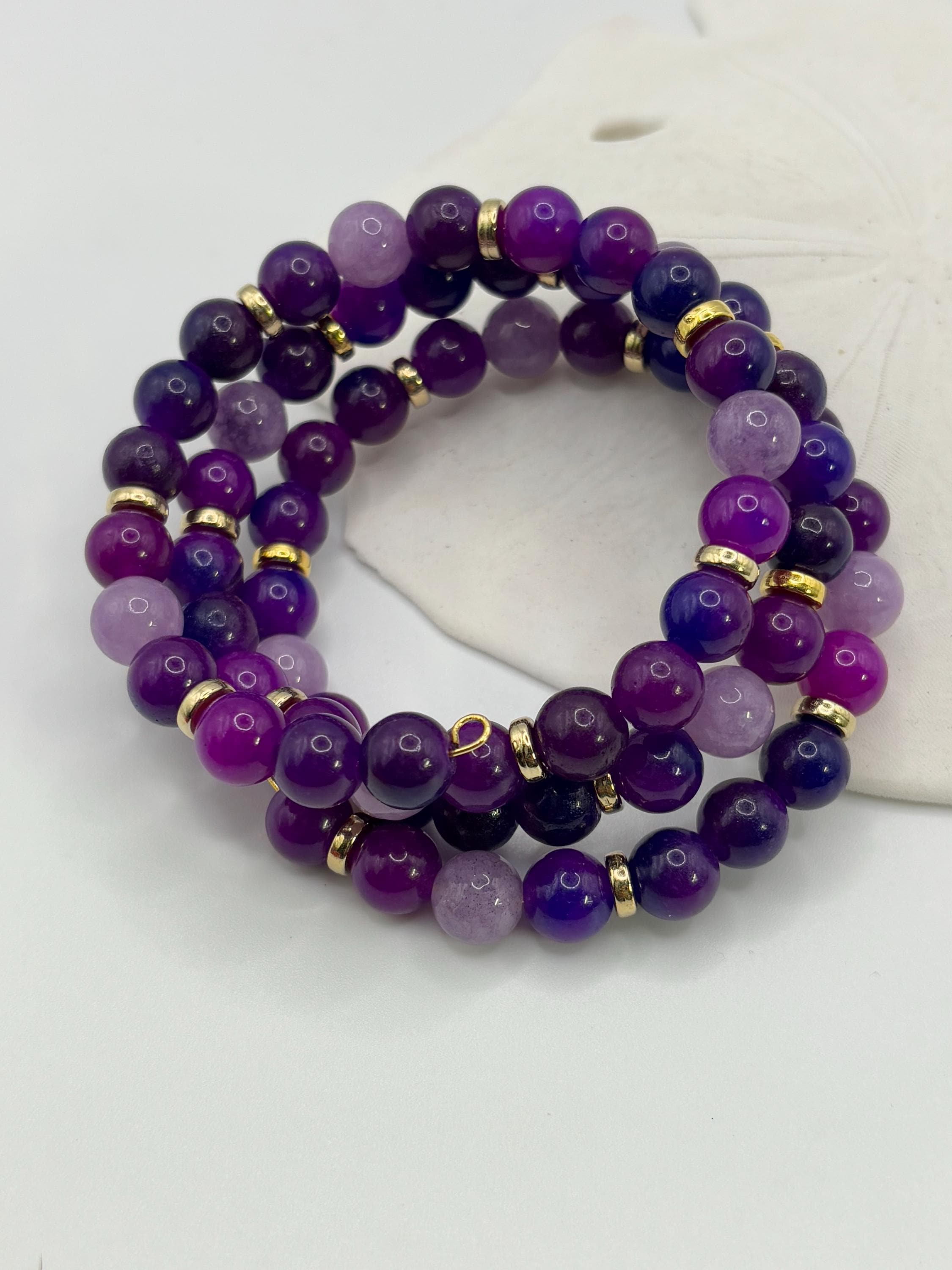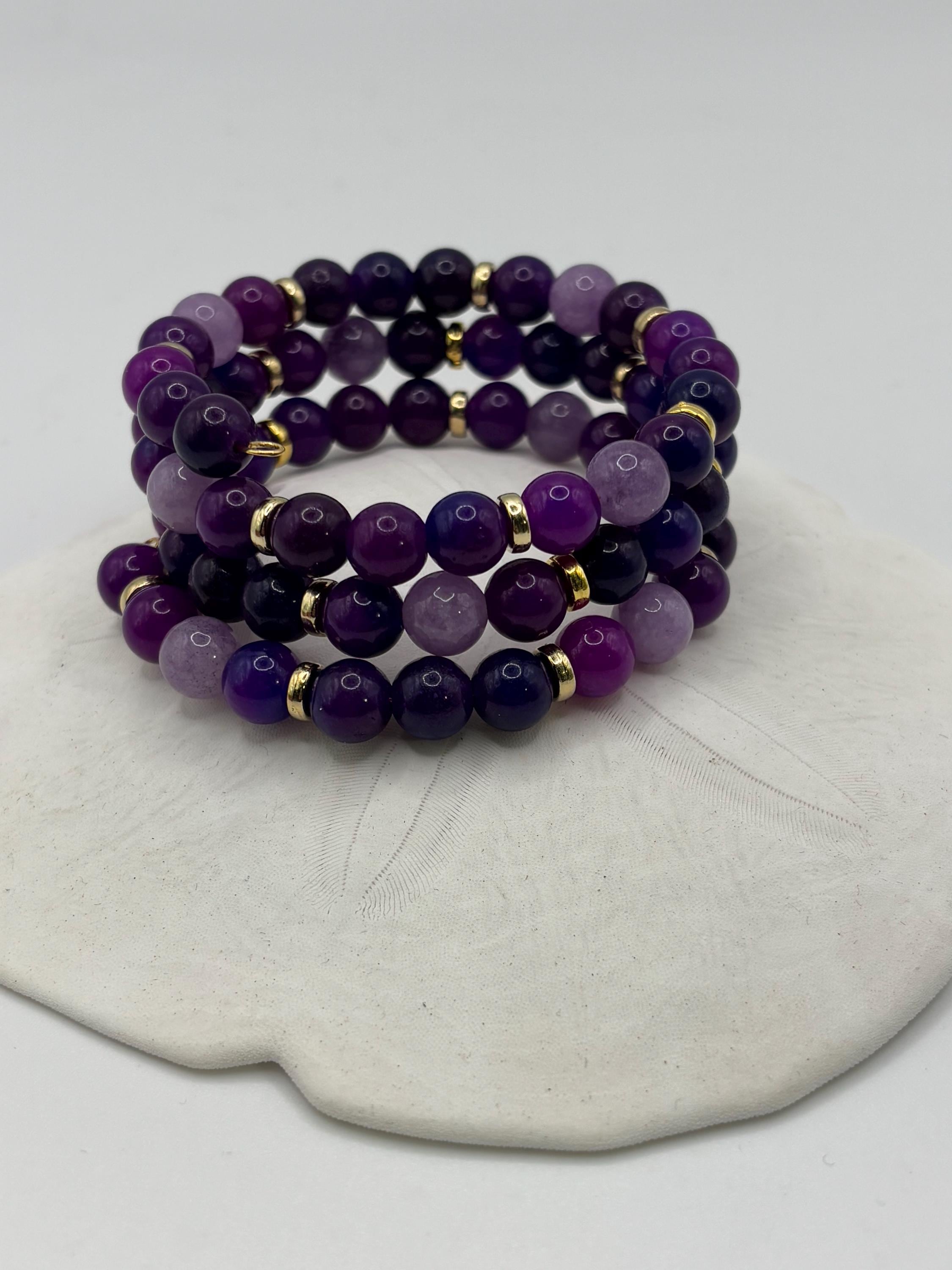 Add a touch of sophistication to your style with our purple Agate and Lilac Lepidolite Gemstones memory wire multistrand bracelet.