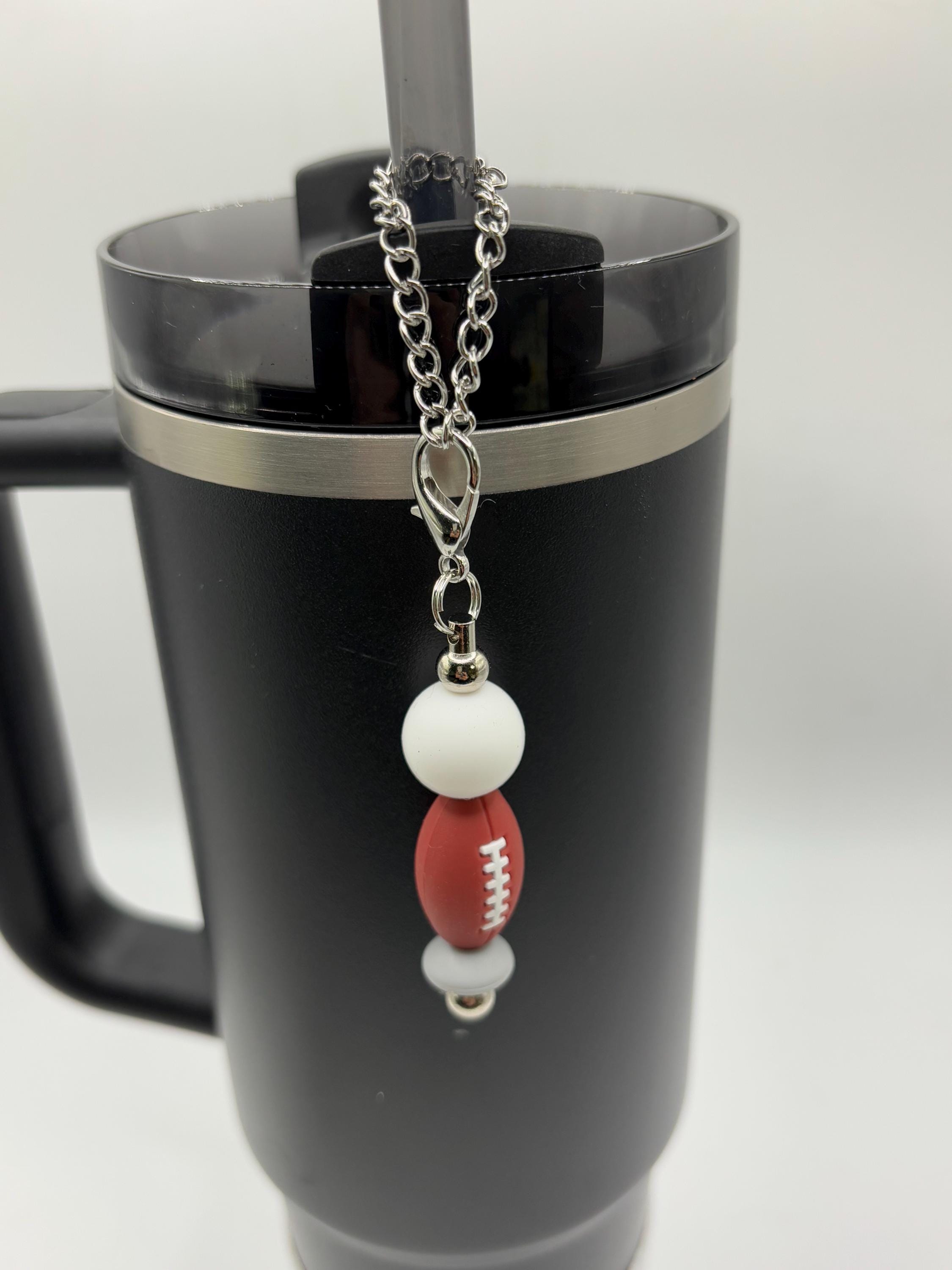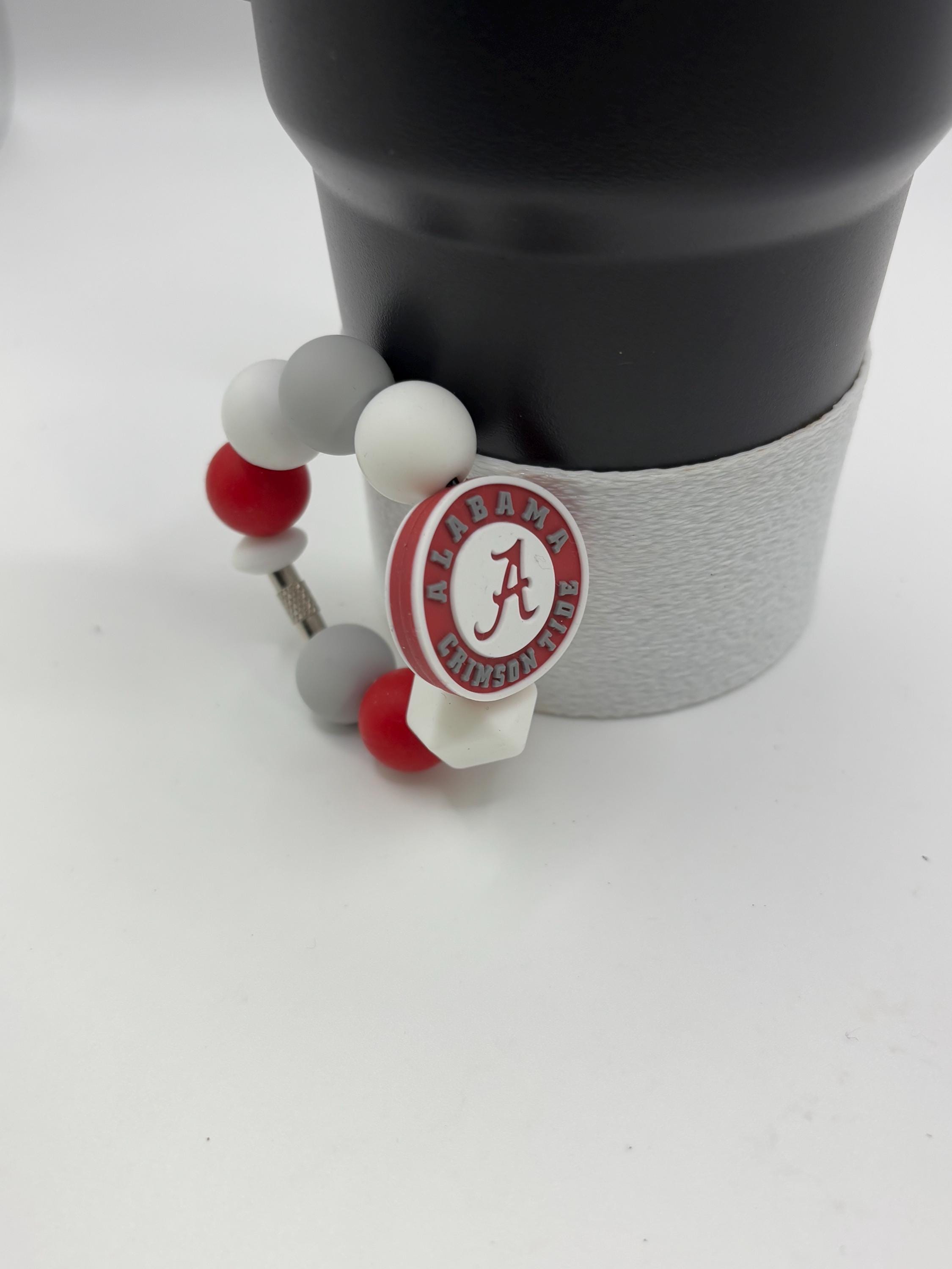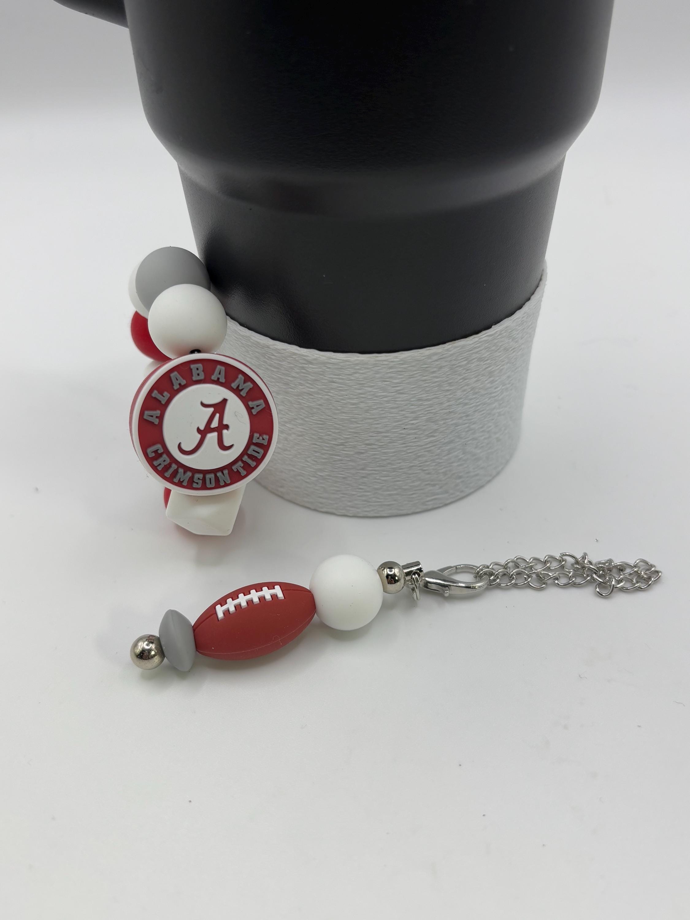This is a 2 piece Alabama football set! These fun handle and straw charm bracelets are made for your tumbler. They will fit any tumbler with a handle/ straw.