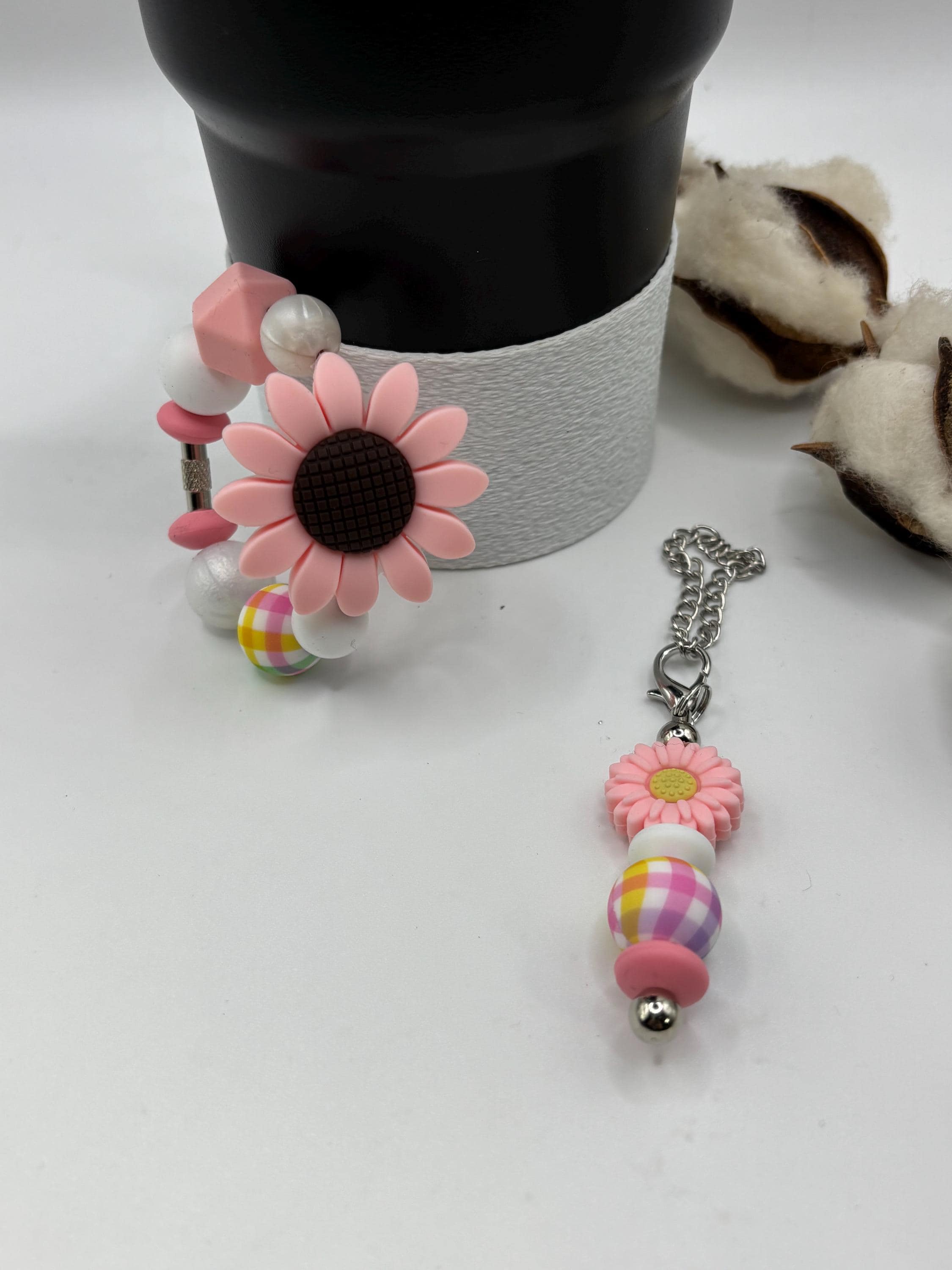 SunFlower Pink Stanley Cup Bracelet: Cup Handle Bracelet | Straw Charm | Sunflowers