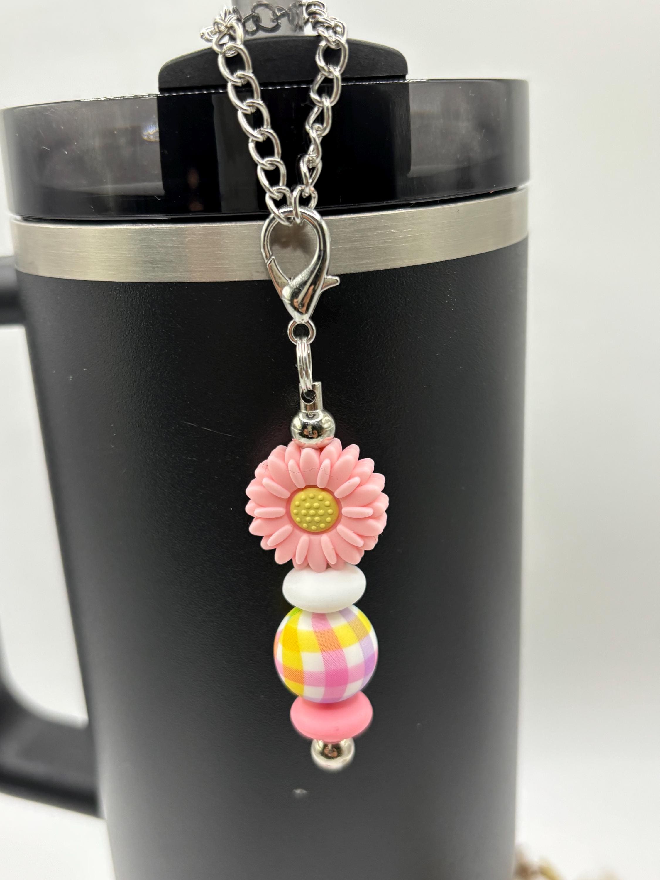 These fun handle and straw charm bracelets are made for your Tumbler and are shown on a Stanley. They will fit any tumbler with a handle/ straw.
