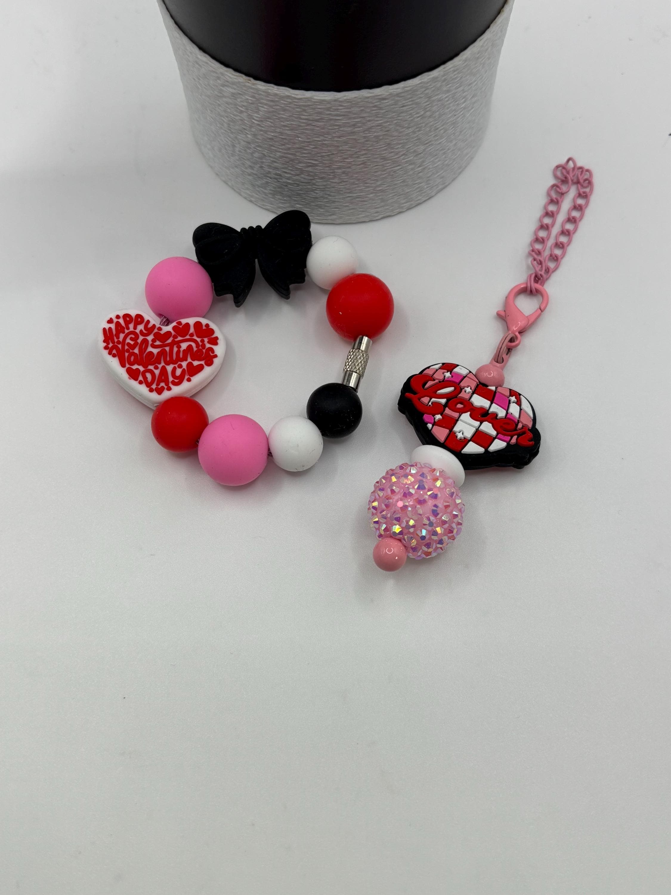 Valentines Day Stanley Cup Bracelet: Cup Handle Bracelet | Straw Charm | Valentine | Hearts