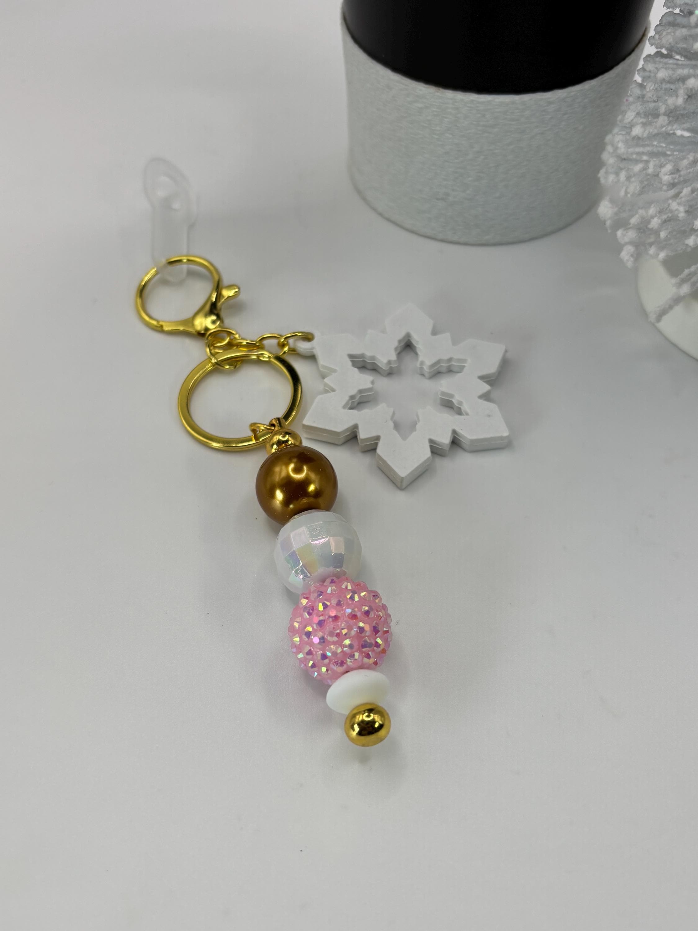 Christmas Snowflake Stanley Cup Straw Charm: | Straw Charm | Holiday | Pink with Snowflake | Purse Charm | Keychain