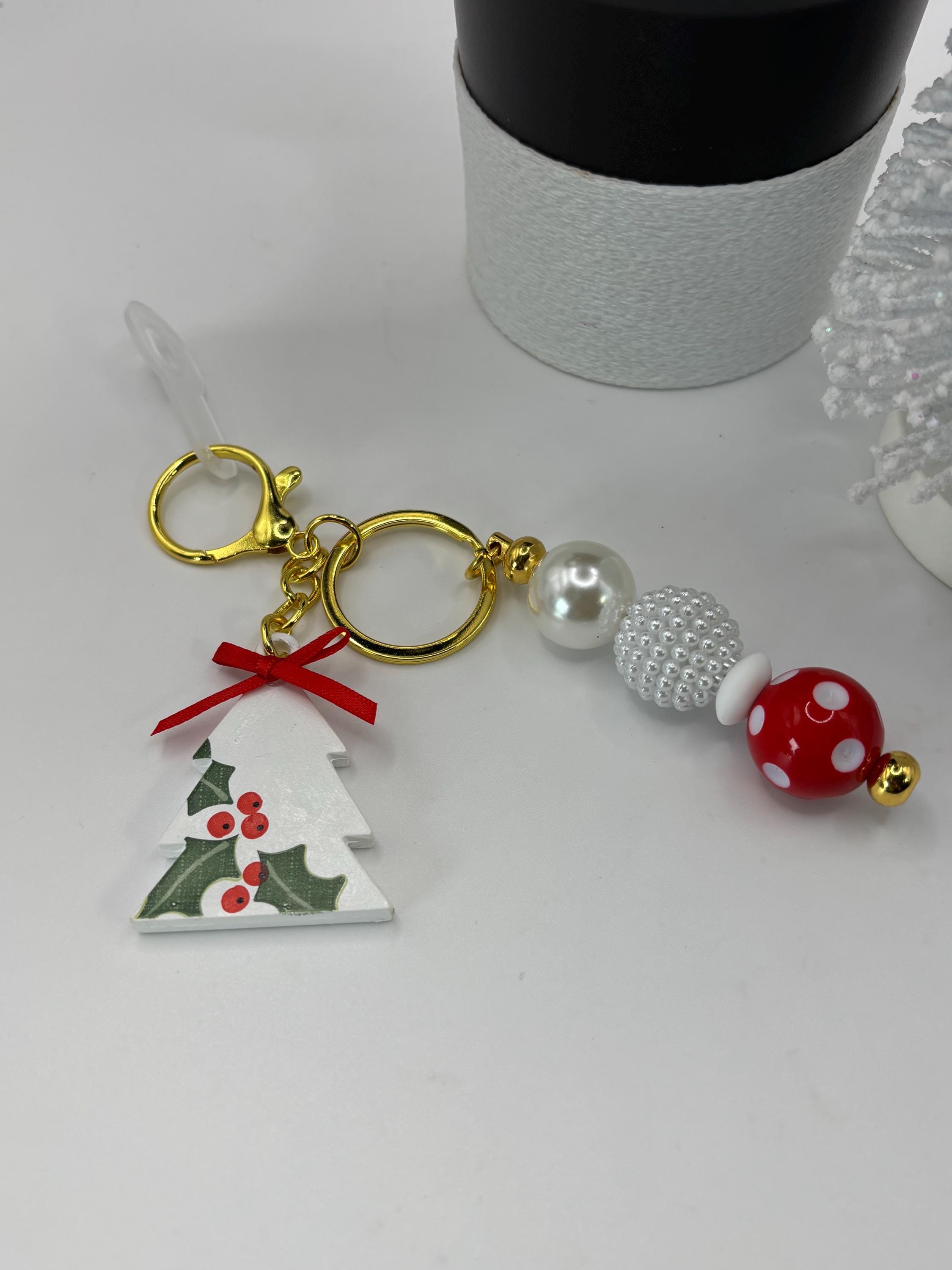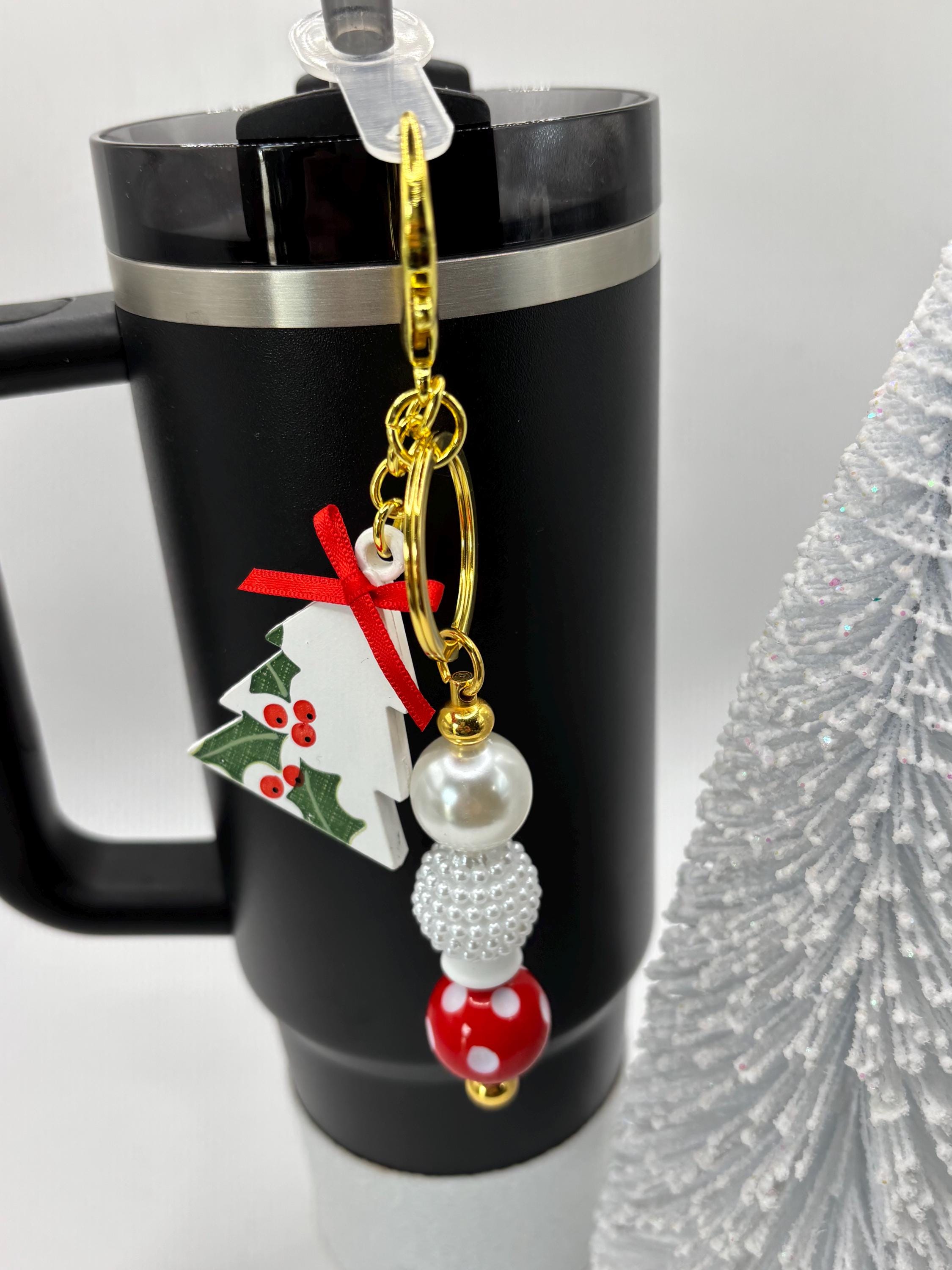 Christmas Tree Stanley Cup Straw Charm: | Straw Charm | Holiday | Red with Tree | Purse Charm | Keychain