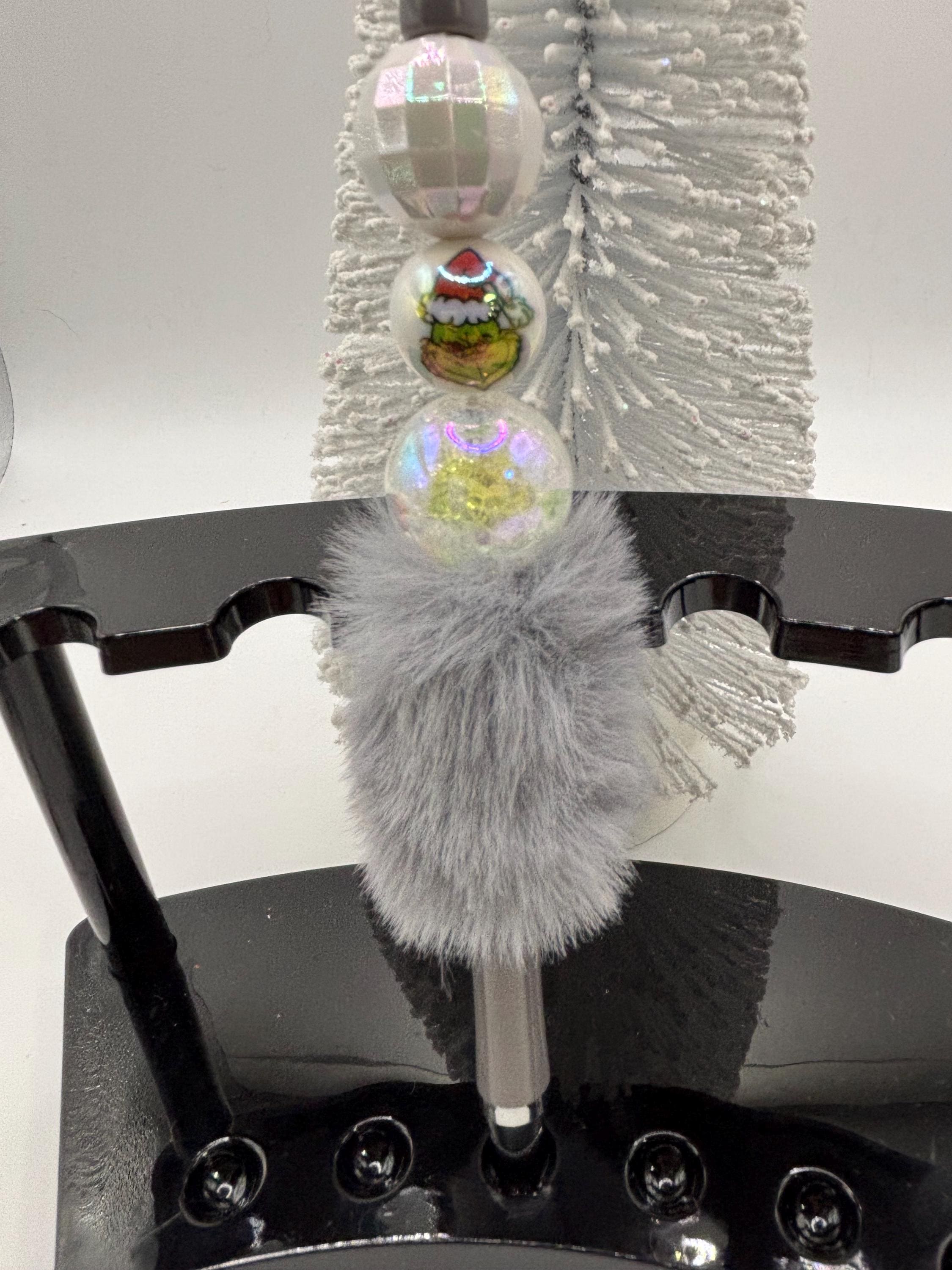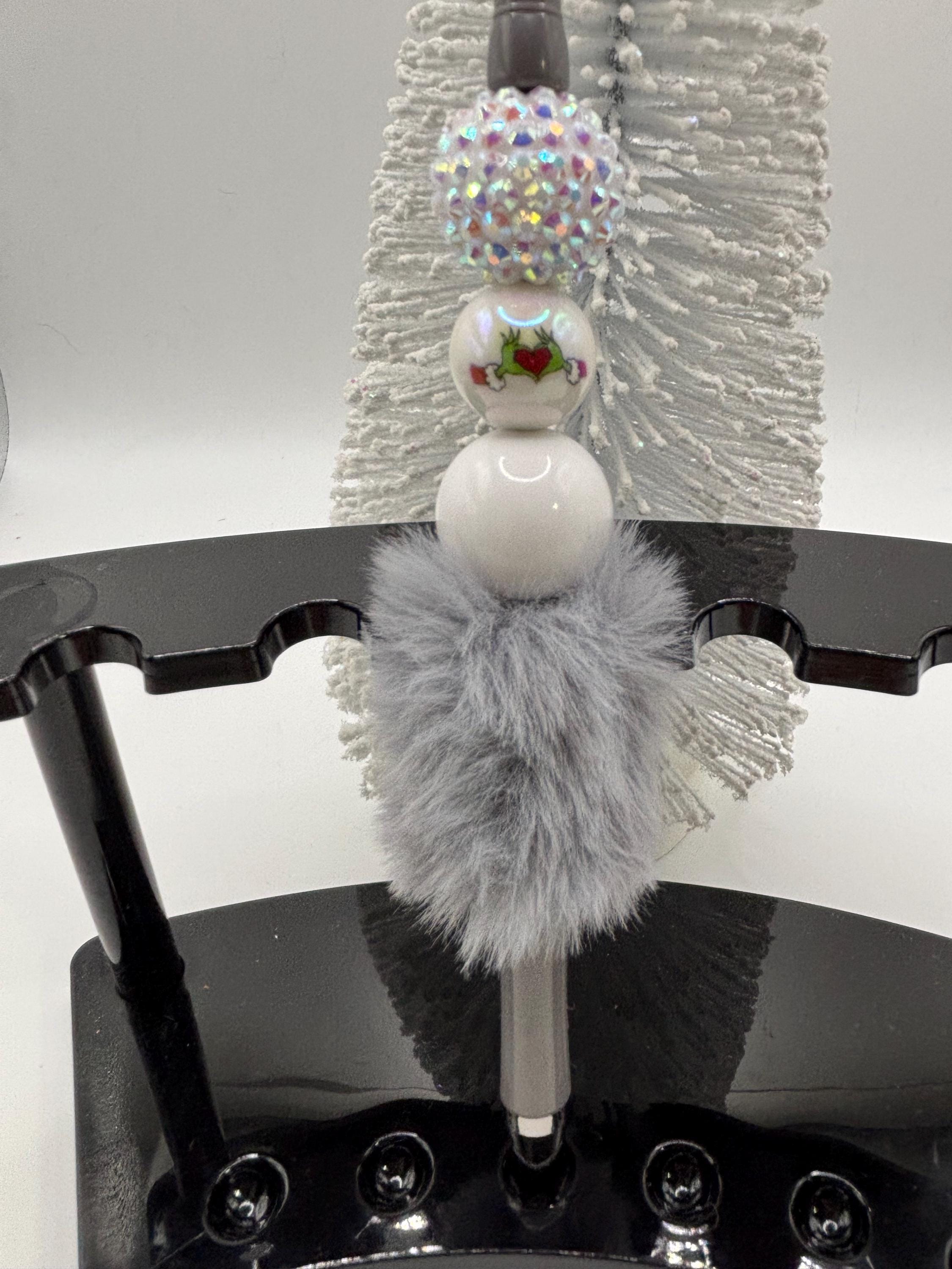 The theme for these silicone beaded pens is The Grinch and Fur . Perfect for the holidays !