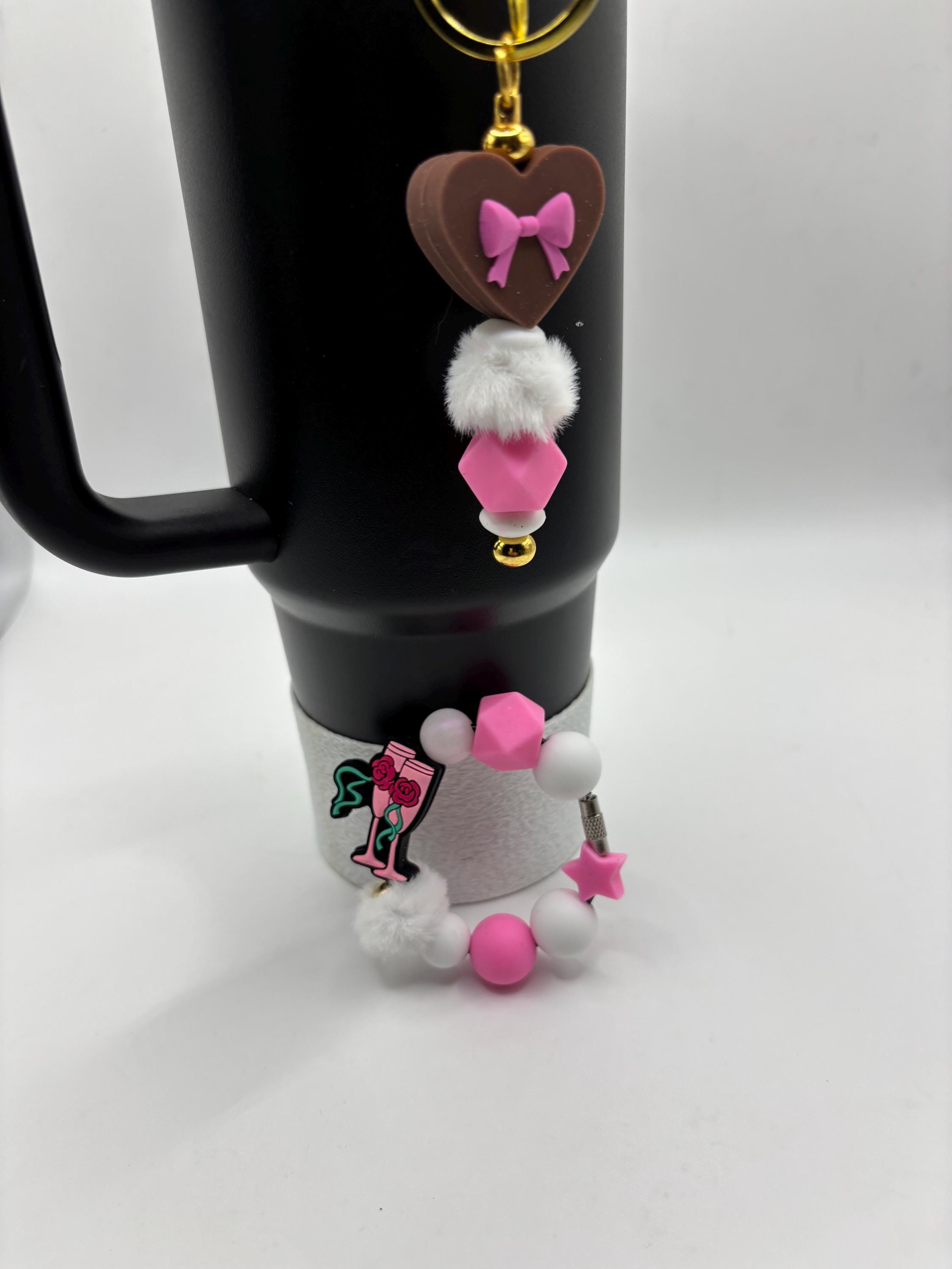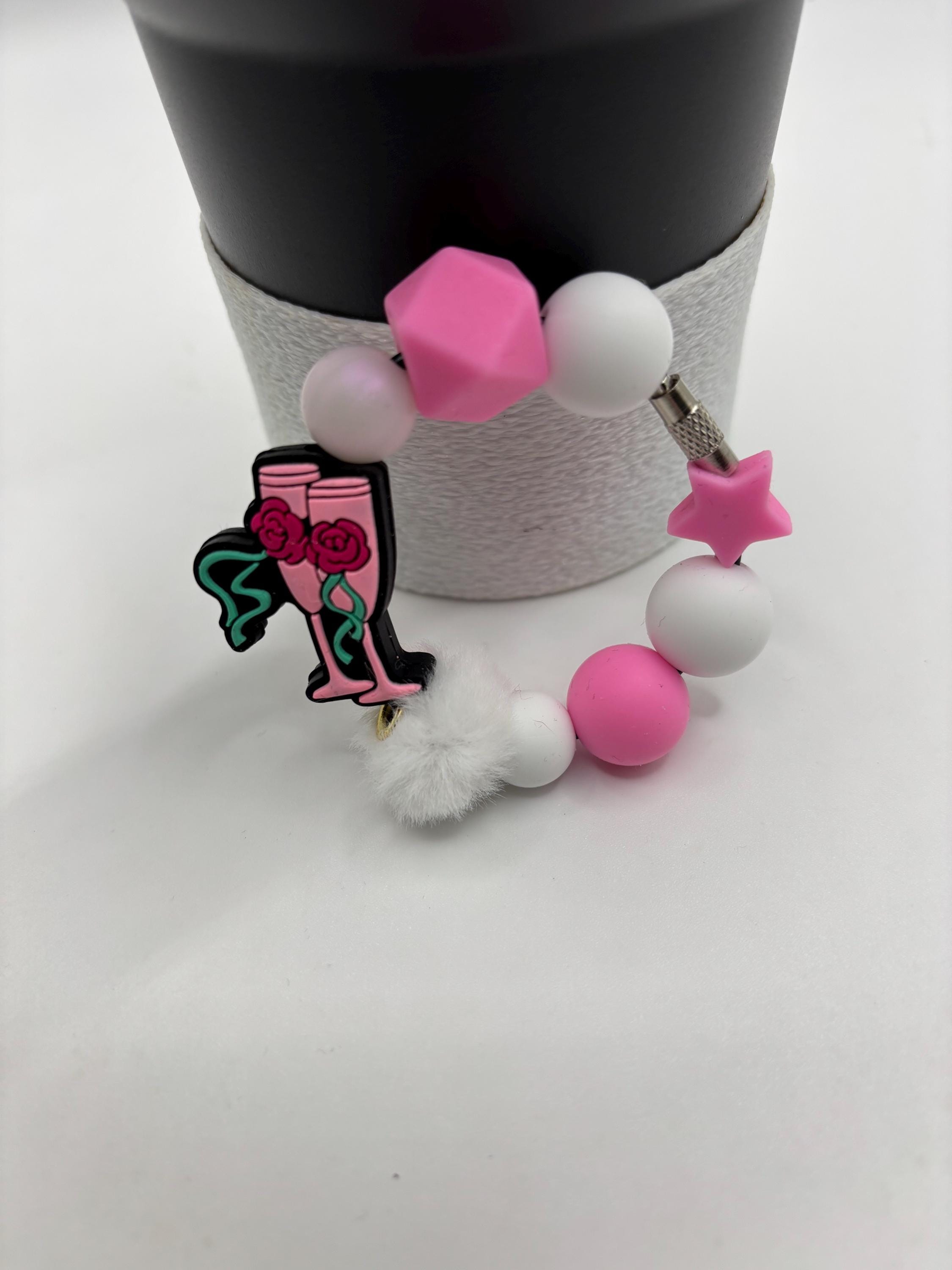 These fun handle and straw charm bracelets are made for your Tumbler and are shown on a 30 Ounce Stanley. They will fit any tumbler with a handle/ straw and could also be purse charms too !
