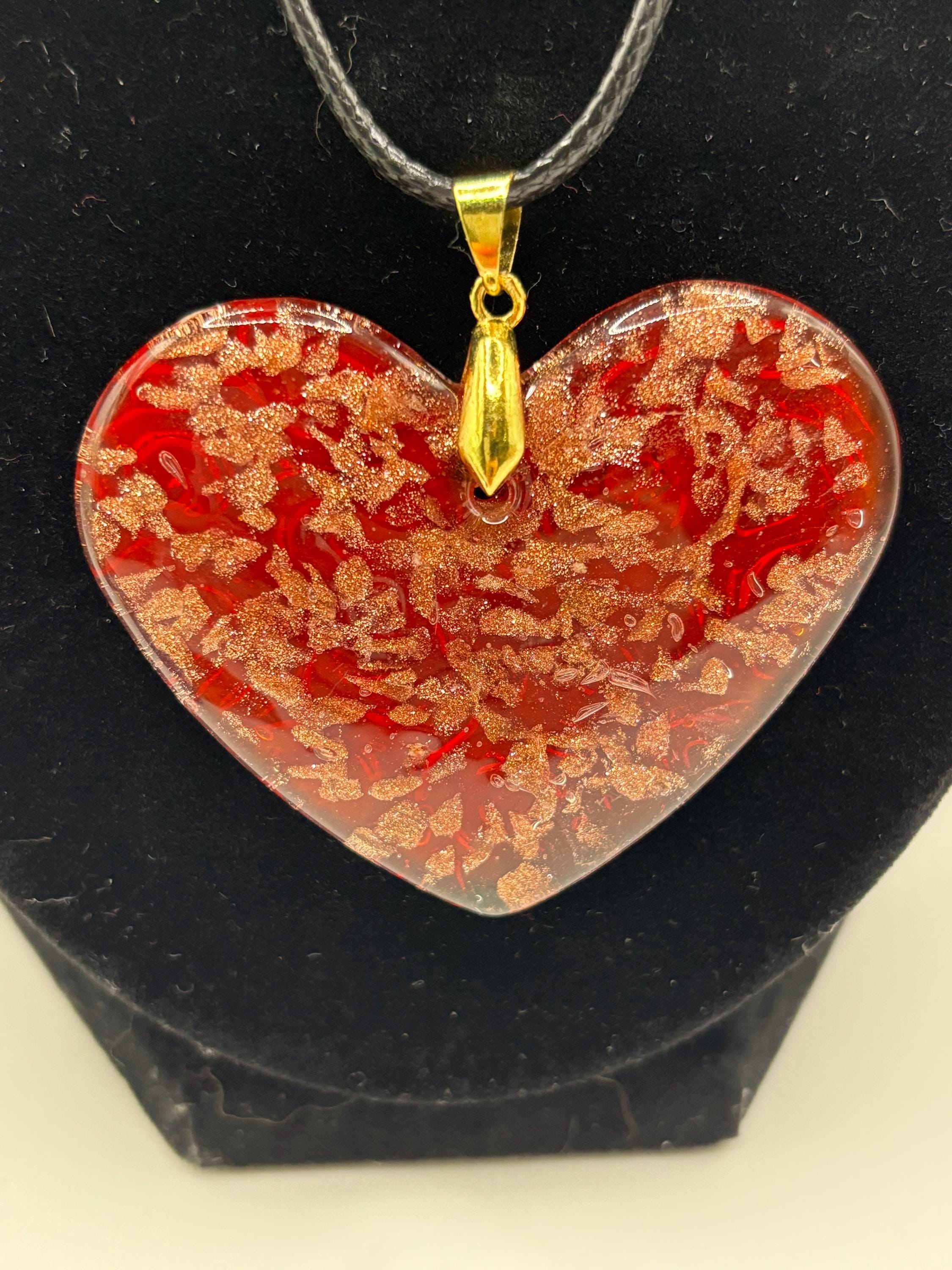 This is a Glass Lampwork Heart necklace, Murano inspired with colorful swirls.