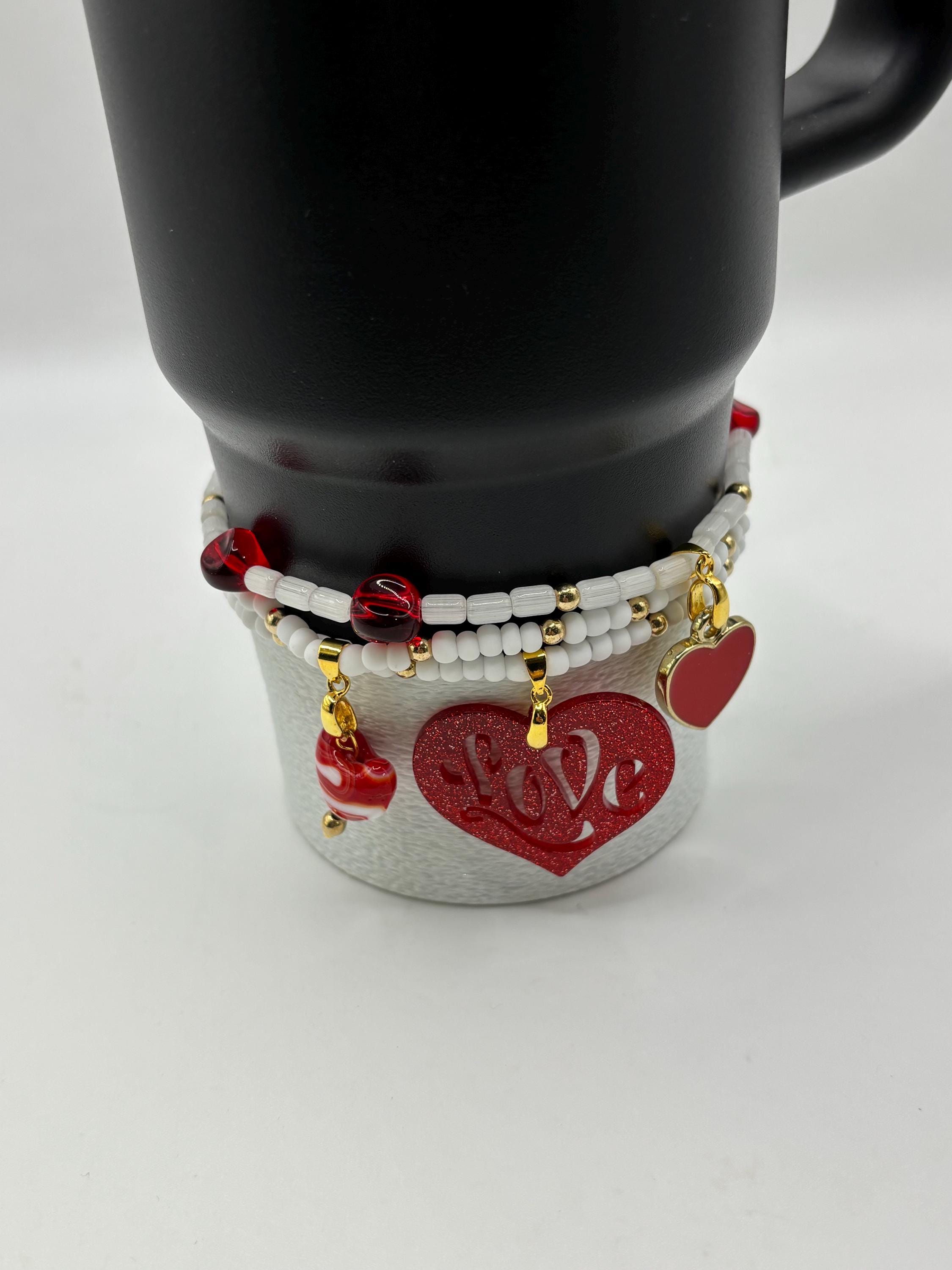 Valentines Day Hearts Stanley Cup Bracelets | Tumbler Charm Bracelet | | Stretchy Cup Bracelet | 3 Bracelet Stack