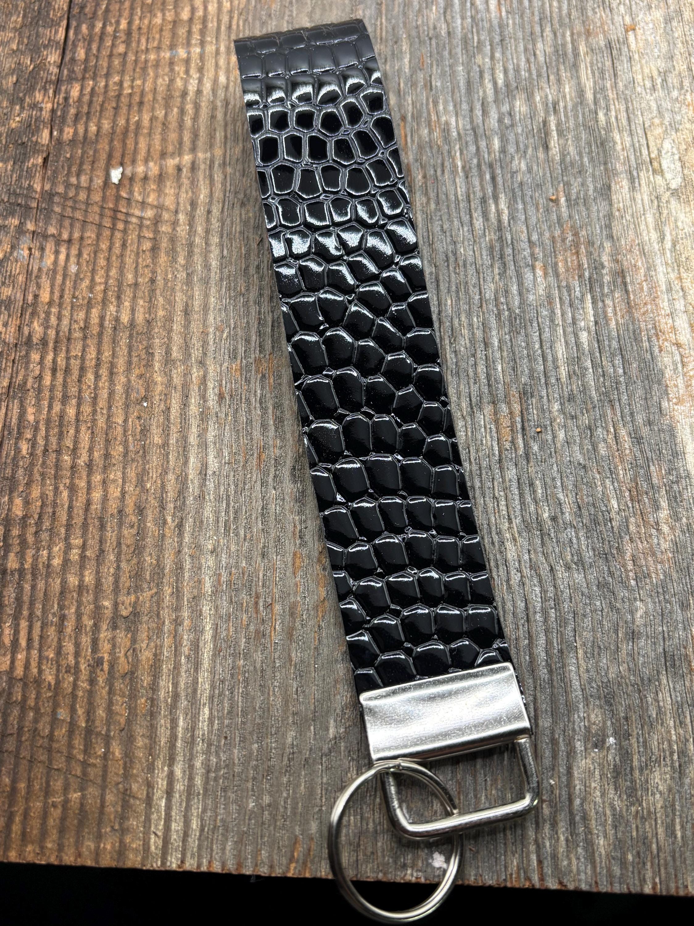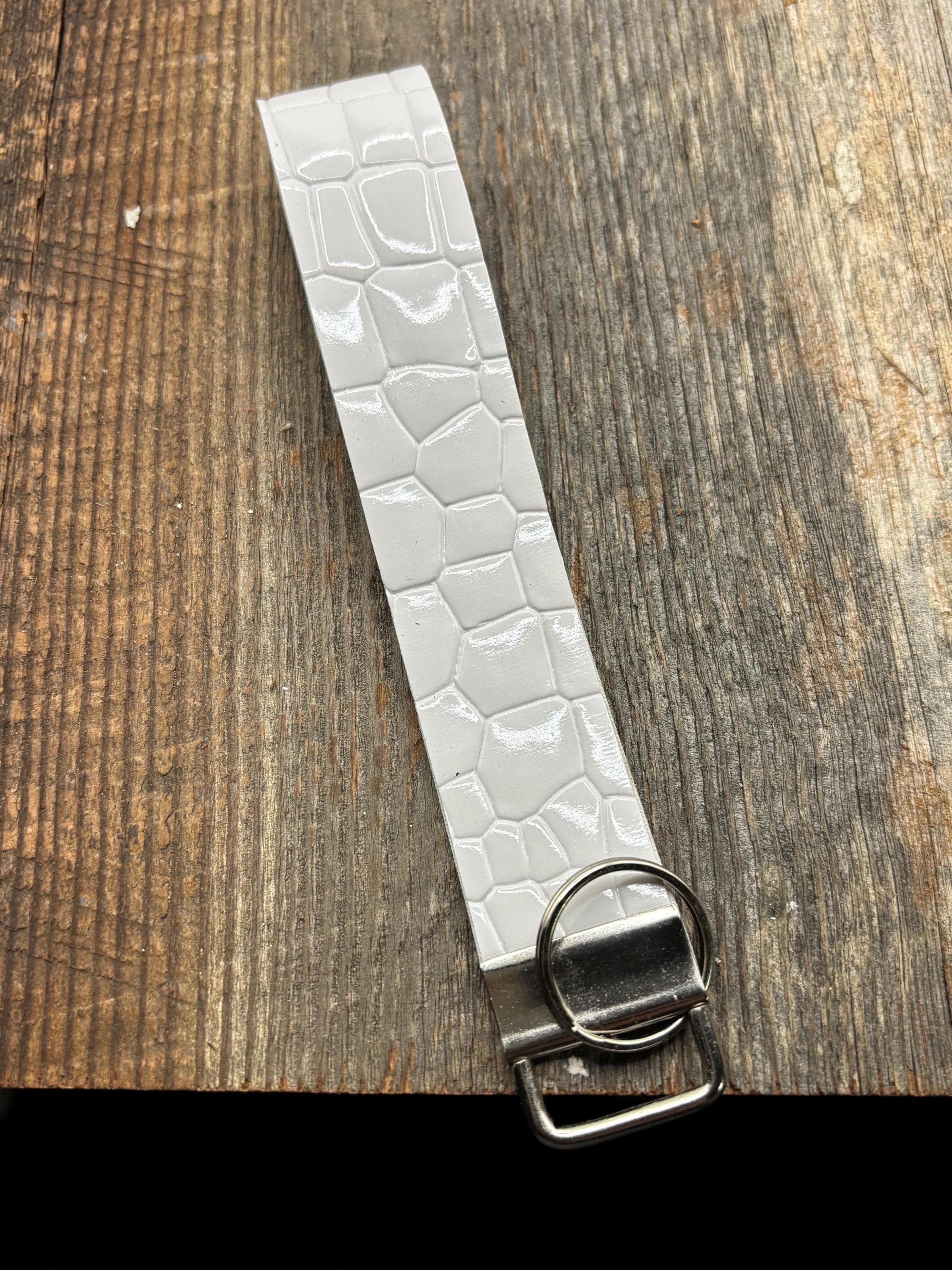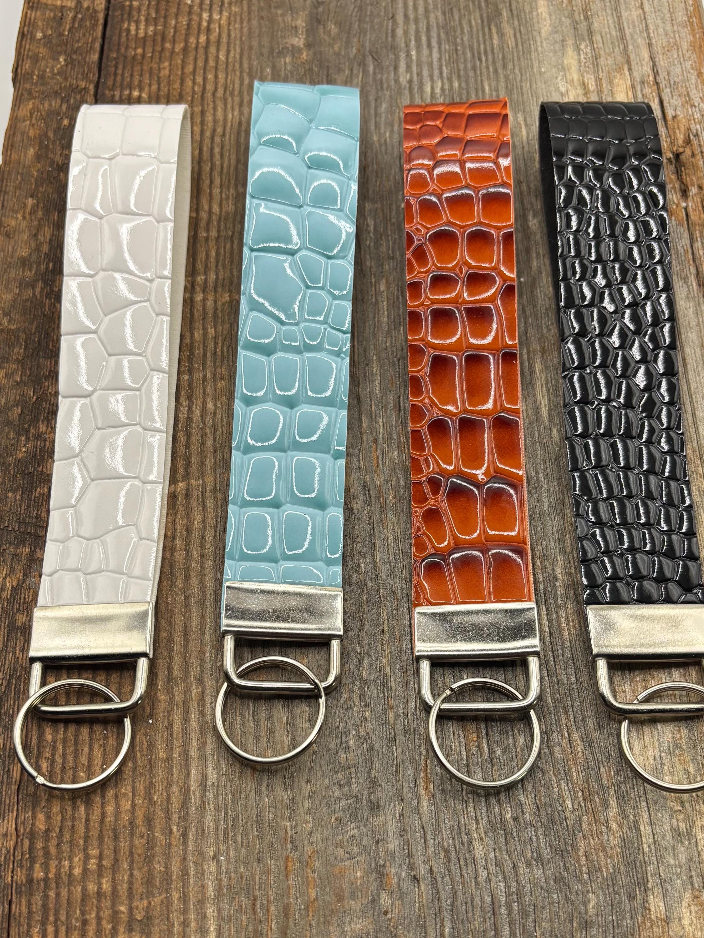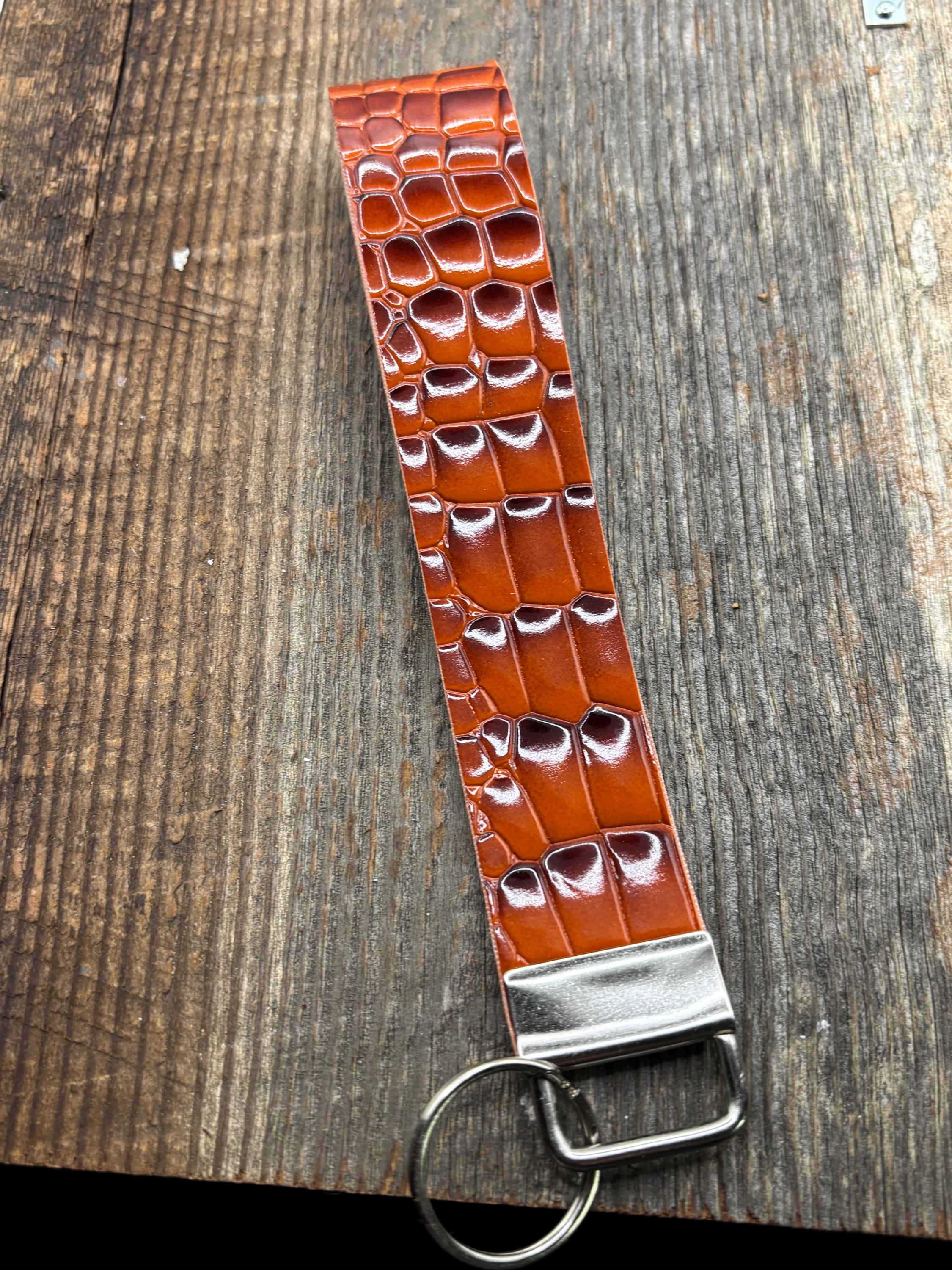 These pretty keychains are a great gift for yourself or someone else ! Made with faux/vegan alligator leather with a patent leather look. The perfect elevated looking wristlet. I’m loving this alligator pattern!