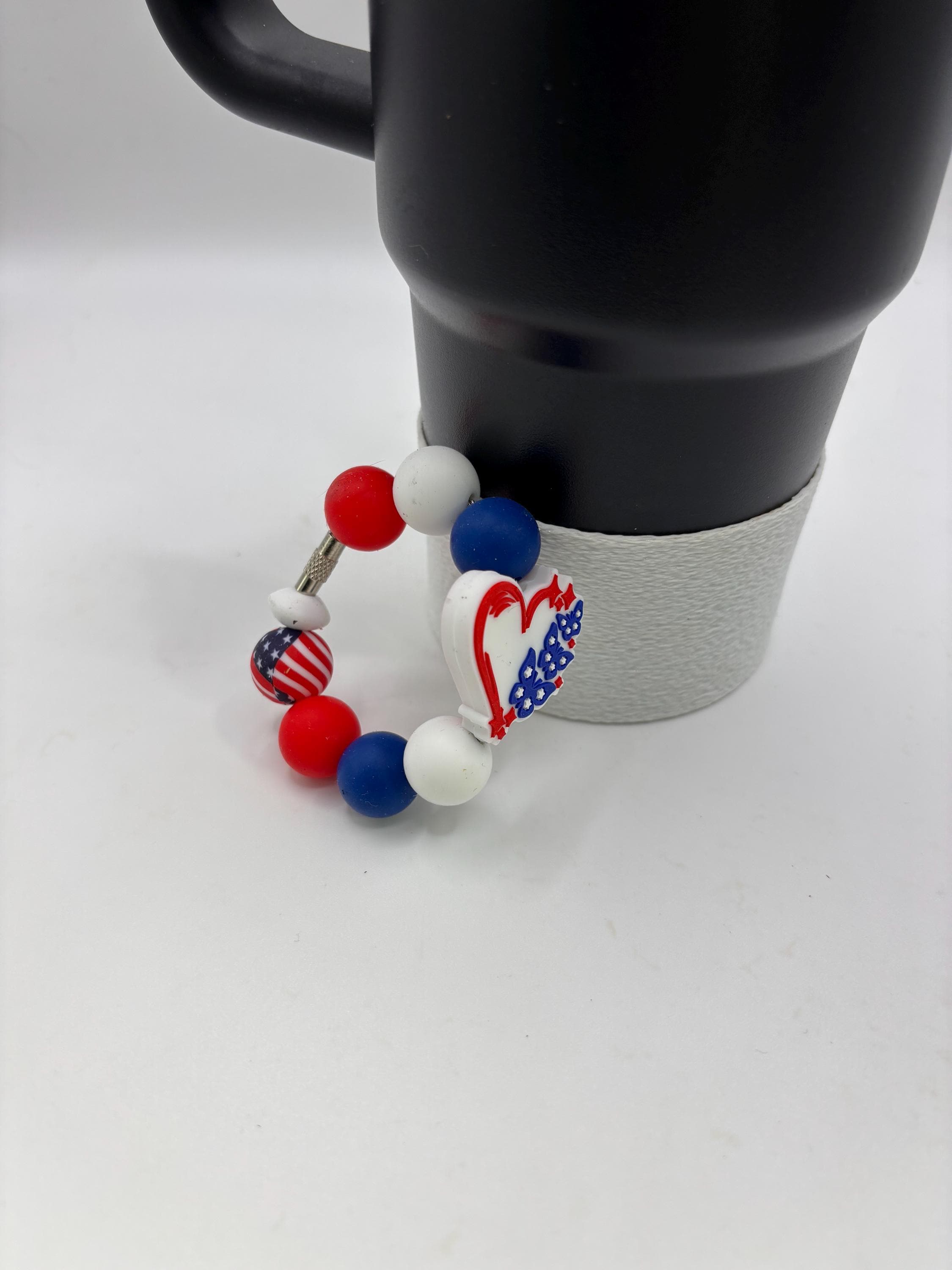 Patriotic Stanley Tumbler Accessories | Handle Charm | Silicone Focal Beads | Straw Charm | Red White and Blue | USA