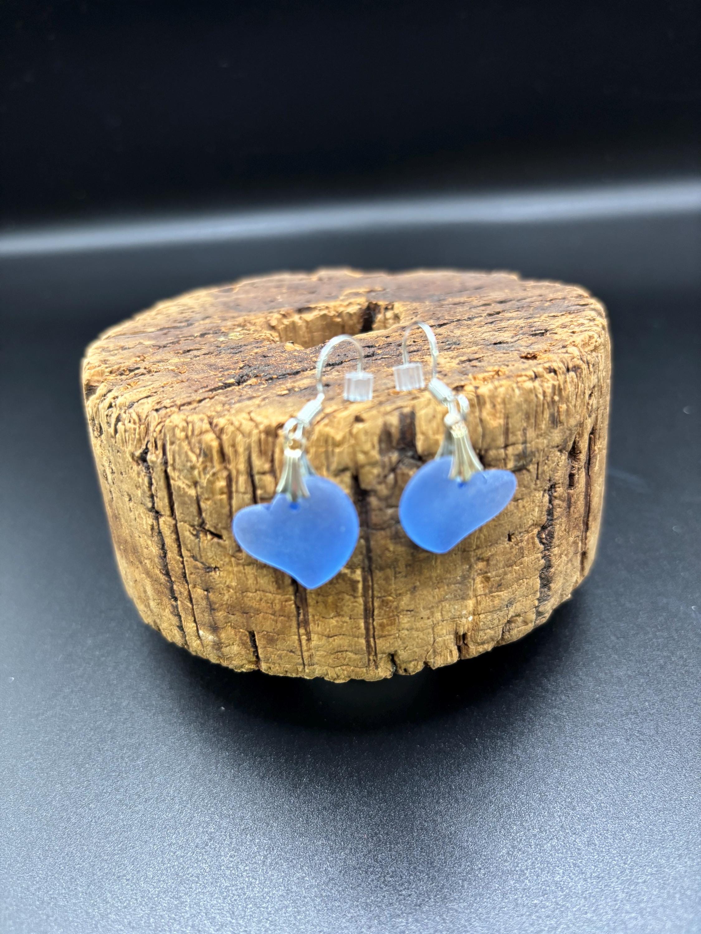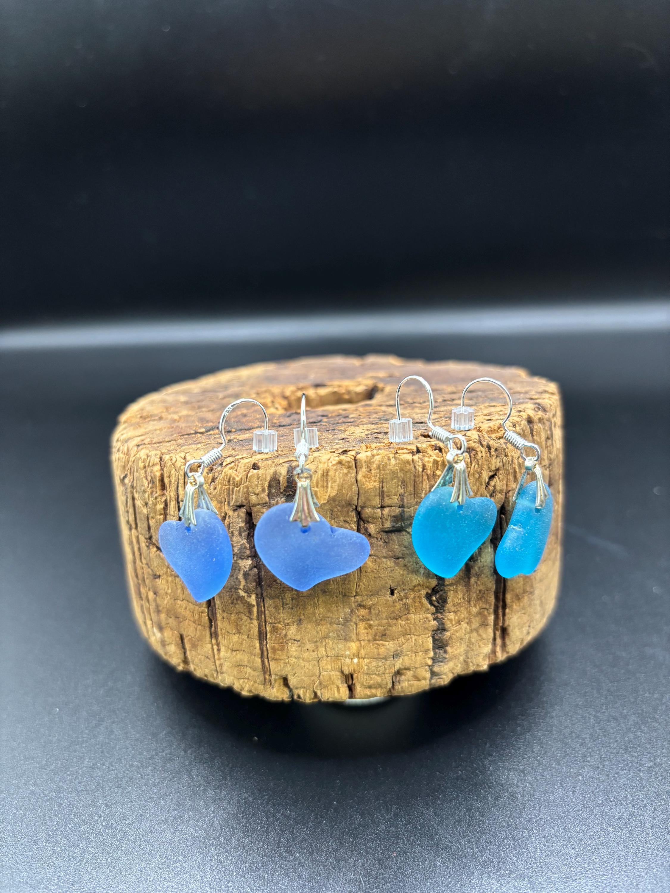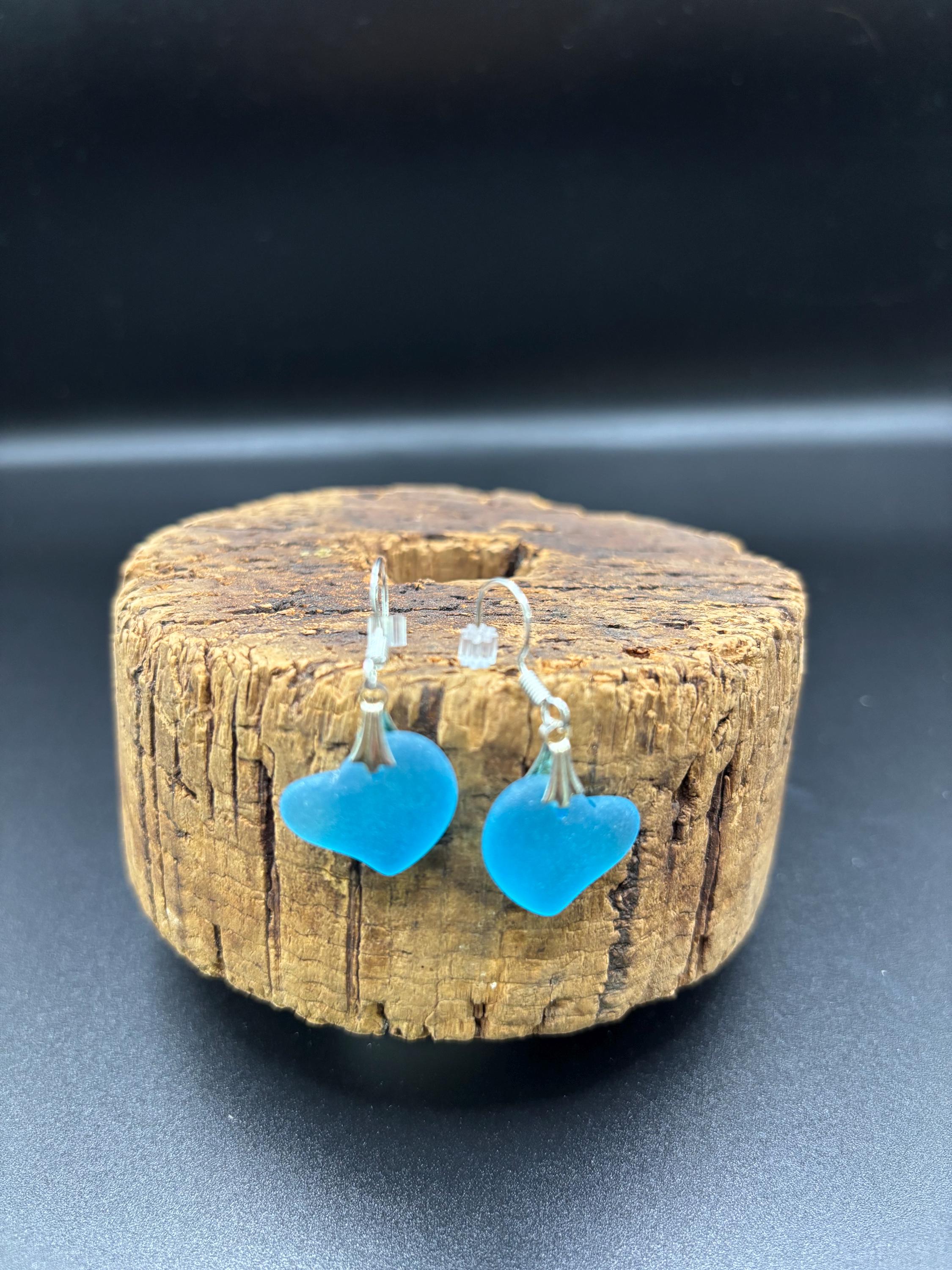 These pretty Seaglass earrings are made with pacific blue or turquoise blue Seaglass. They are on Sterling Silver ear wires