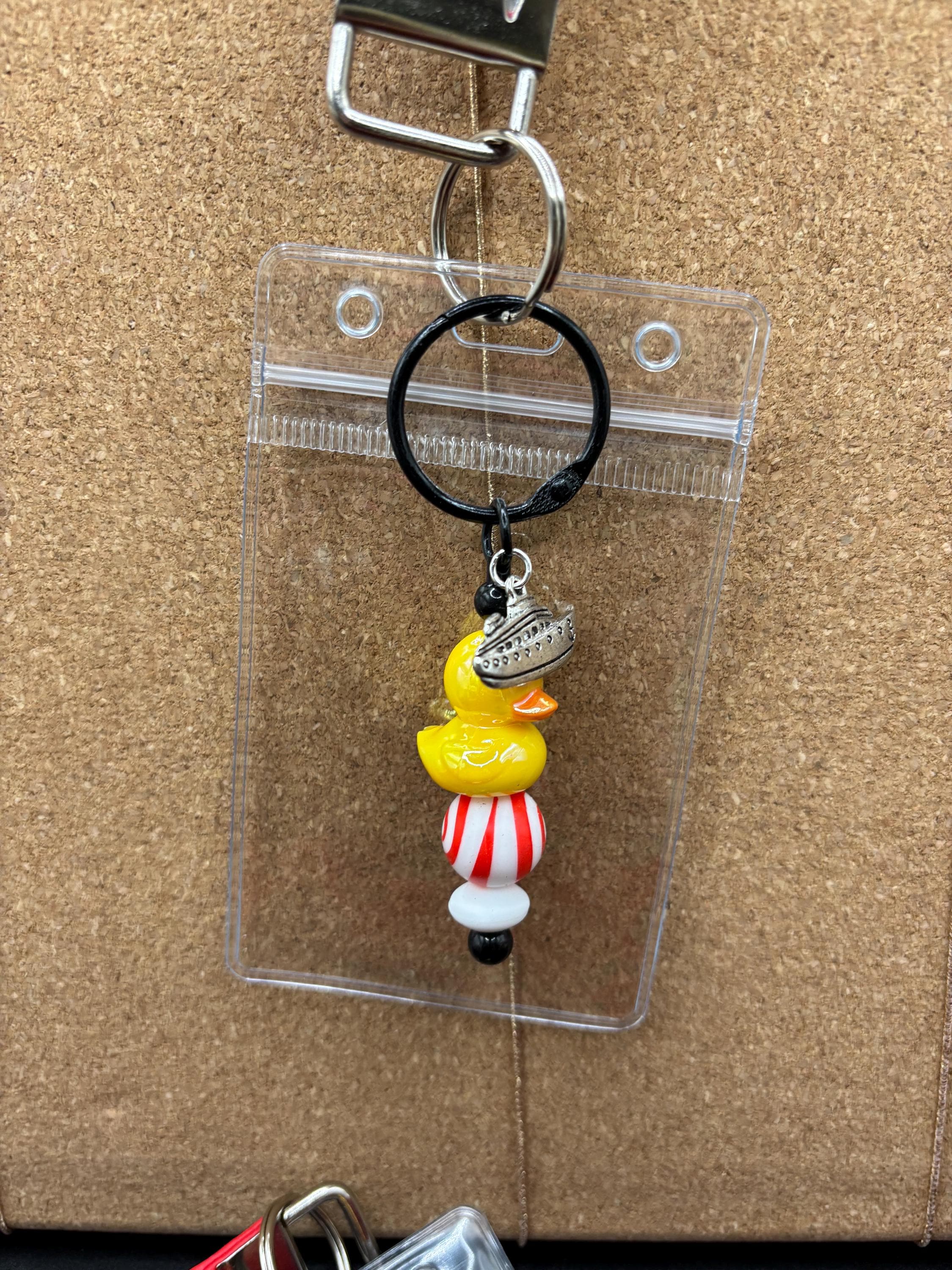 These pretty Lanyards are a great gift for yourself or someone else ! Made with soft, red colored faux/vegan leather, these are a fun ship duck theme on a 36 inch lanyard . Perfect for cruisers or anyone who wants a lanyard with a touch of bling.