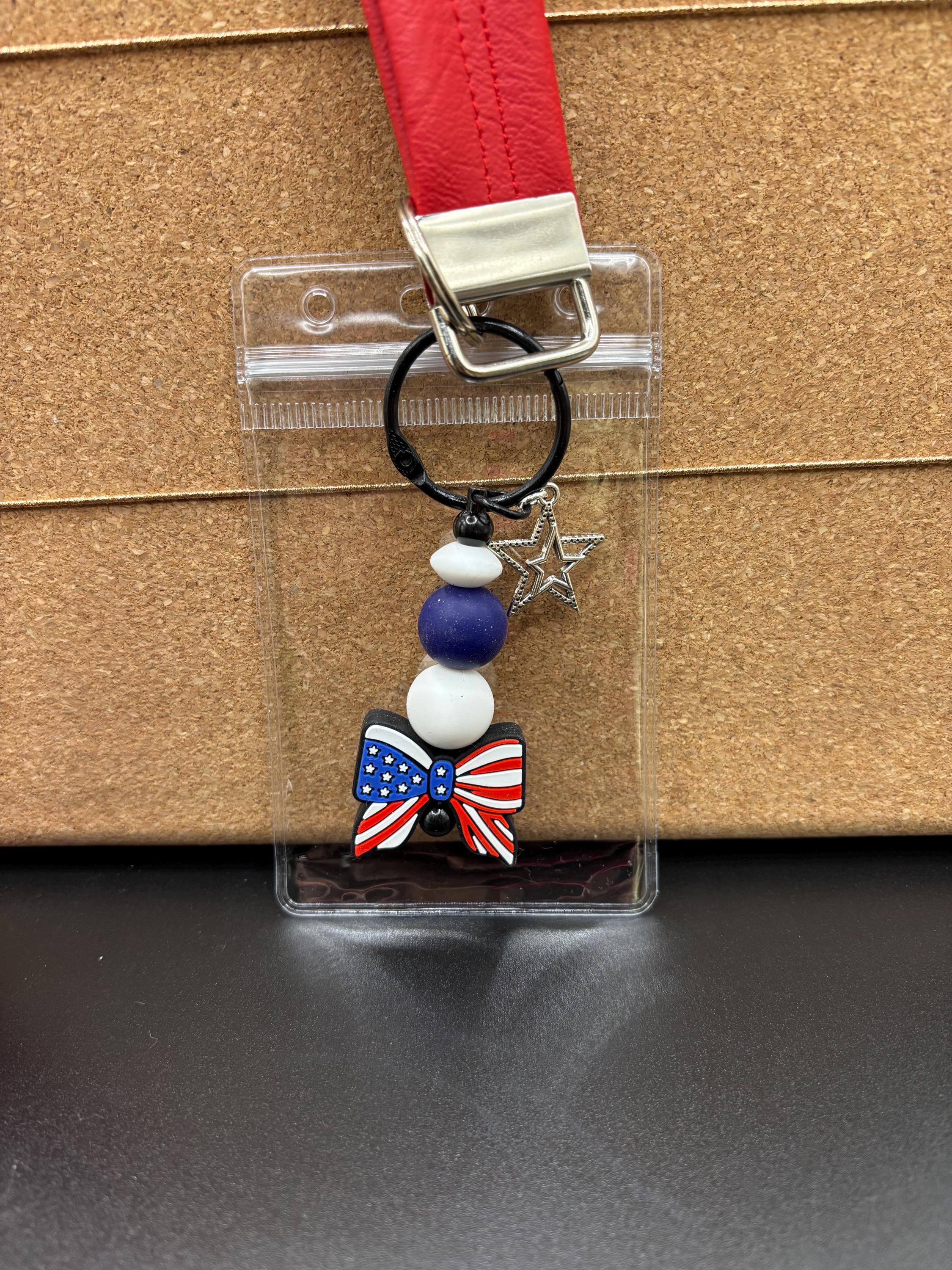 These pretty Lanyards are a great gift for yourself or someone else ! Made with soft, red colored faux/vegan leather, this is a patriotic theme on a 36 inch lanyard . Perfect for cruisers or anyone who wants a lanyard with a touch of bling.