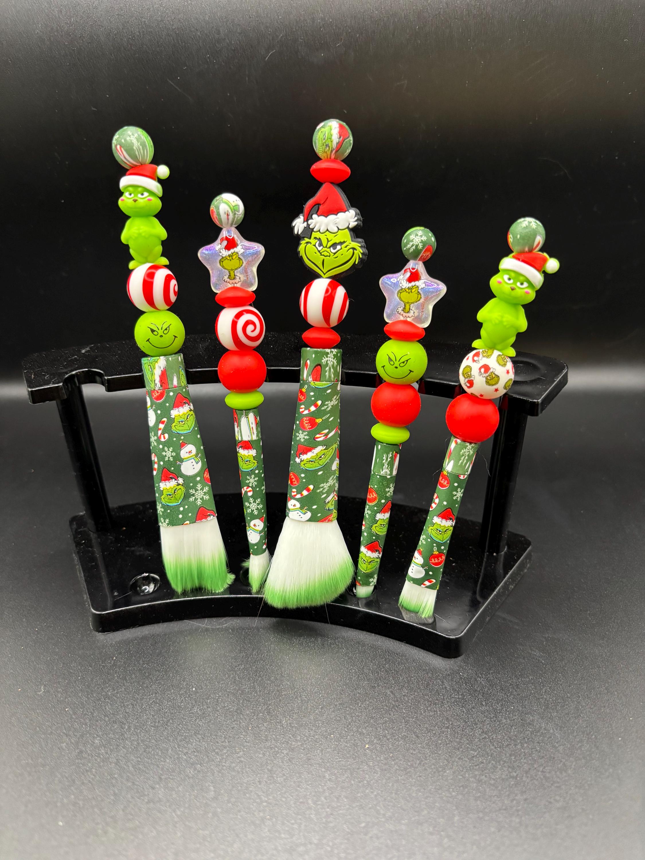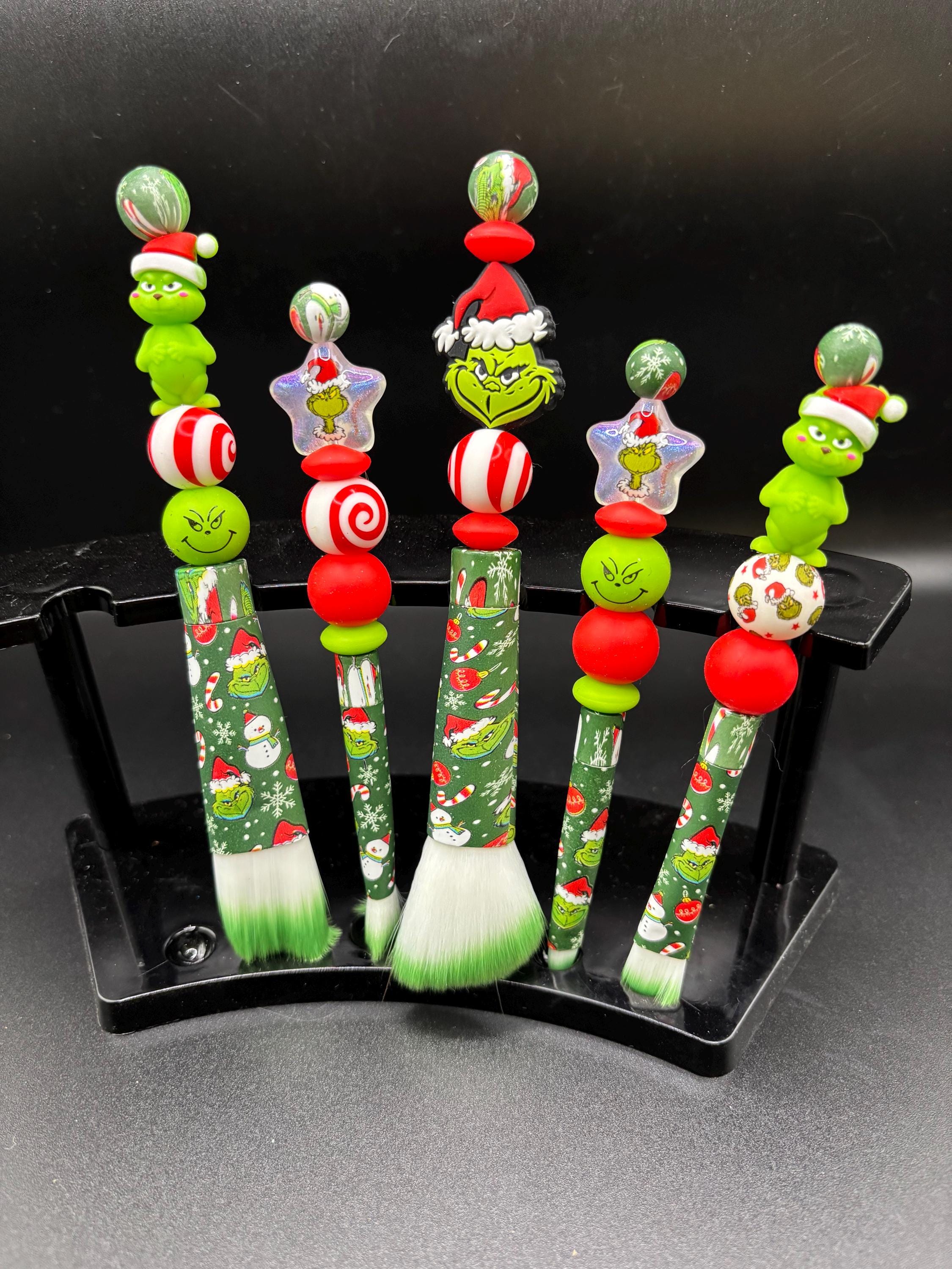 Makeup Brushes Set of 5 | Grinch Theme| Beaded Makeup Brushes | Gift Set