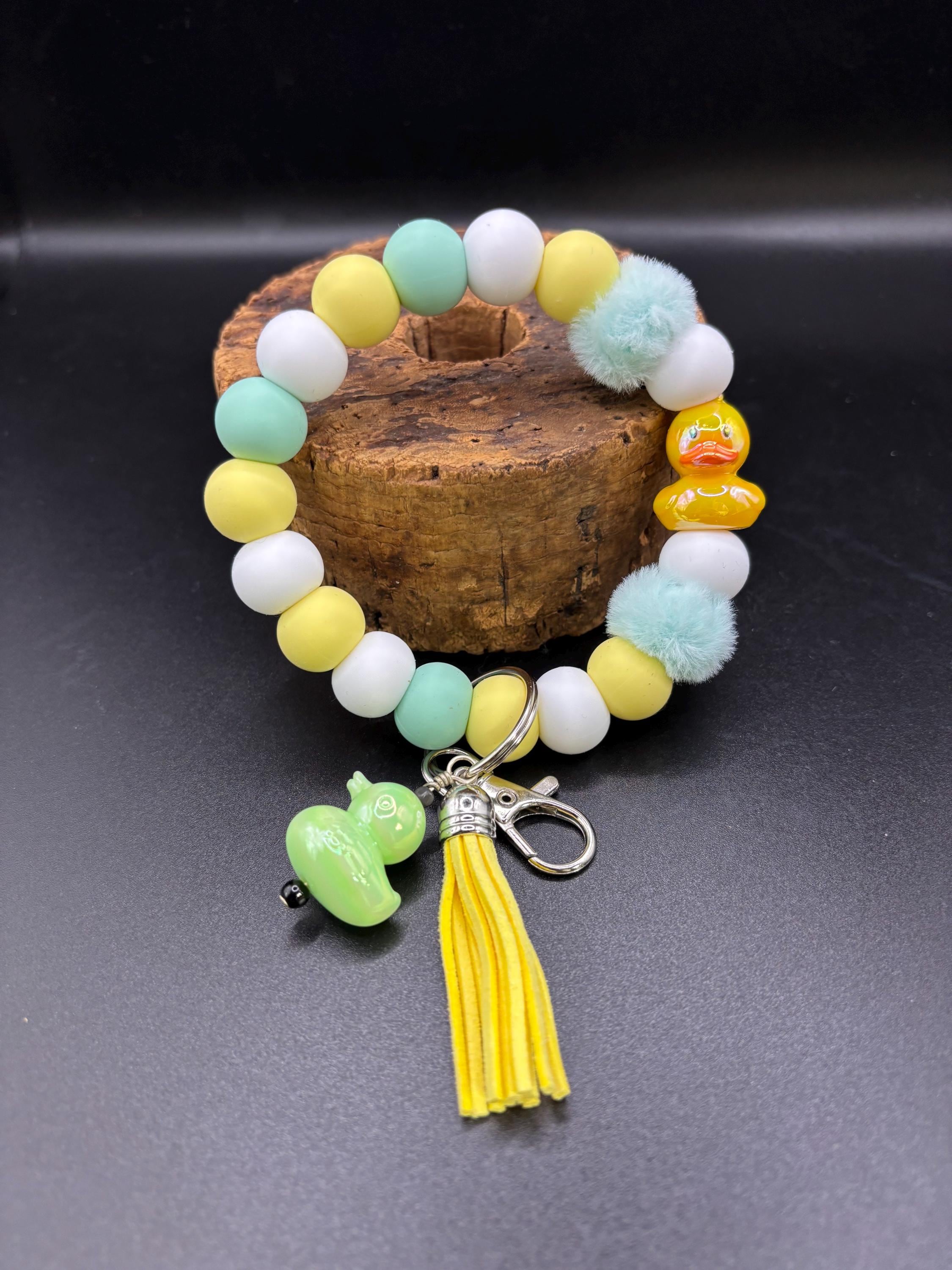 Duck Theme Beaded Wristlet Keychain | Keychain with Silicone and Duck Charm | Keychain | Key Fob | Wristlet | Cruise