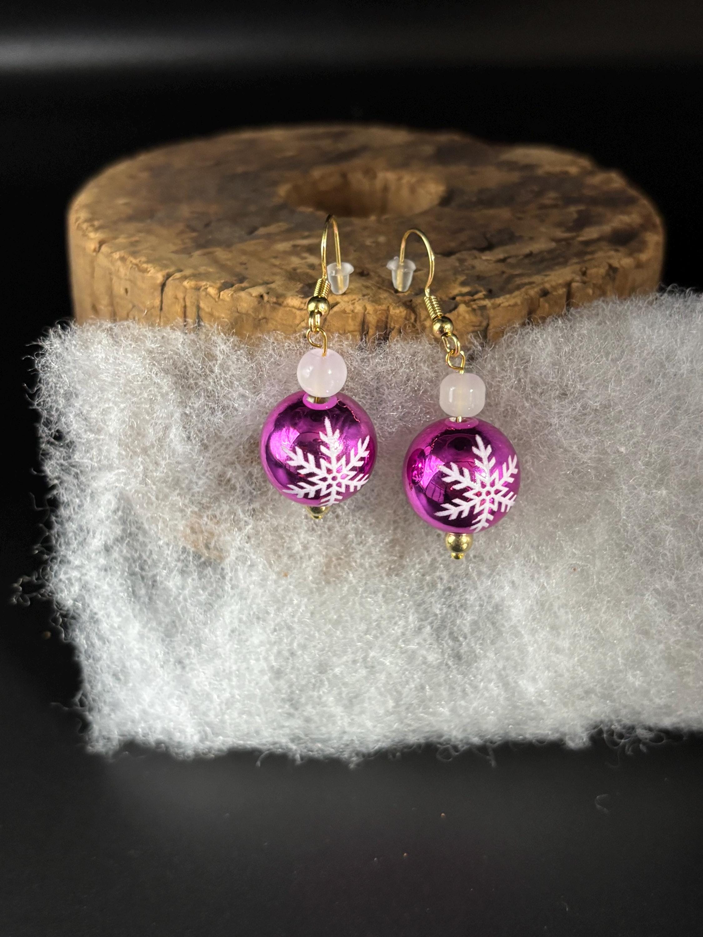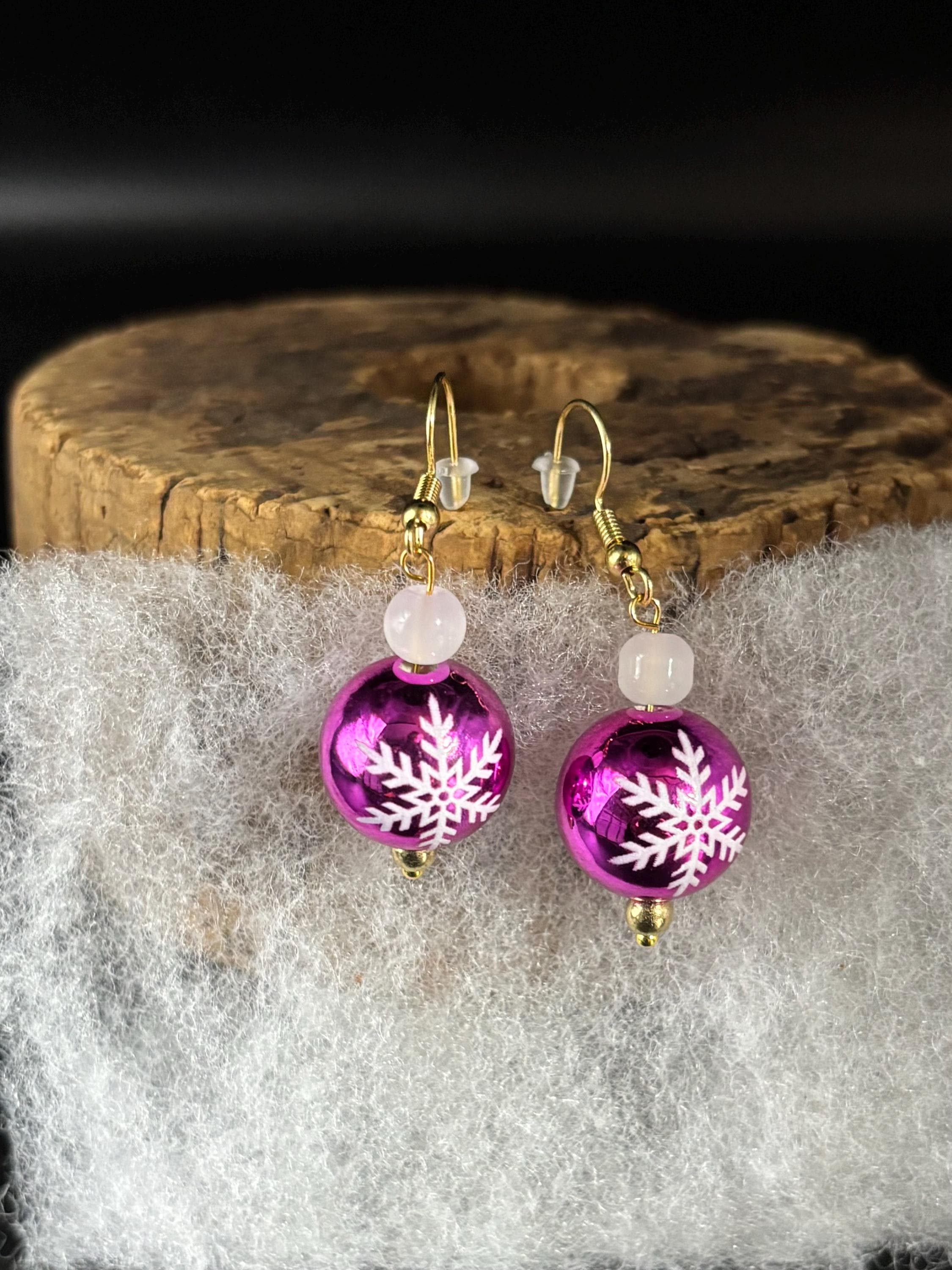 These shiny snowflake earrings have Moonstone gem accents. On gold filled ear wires. 2 styles available