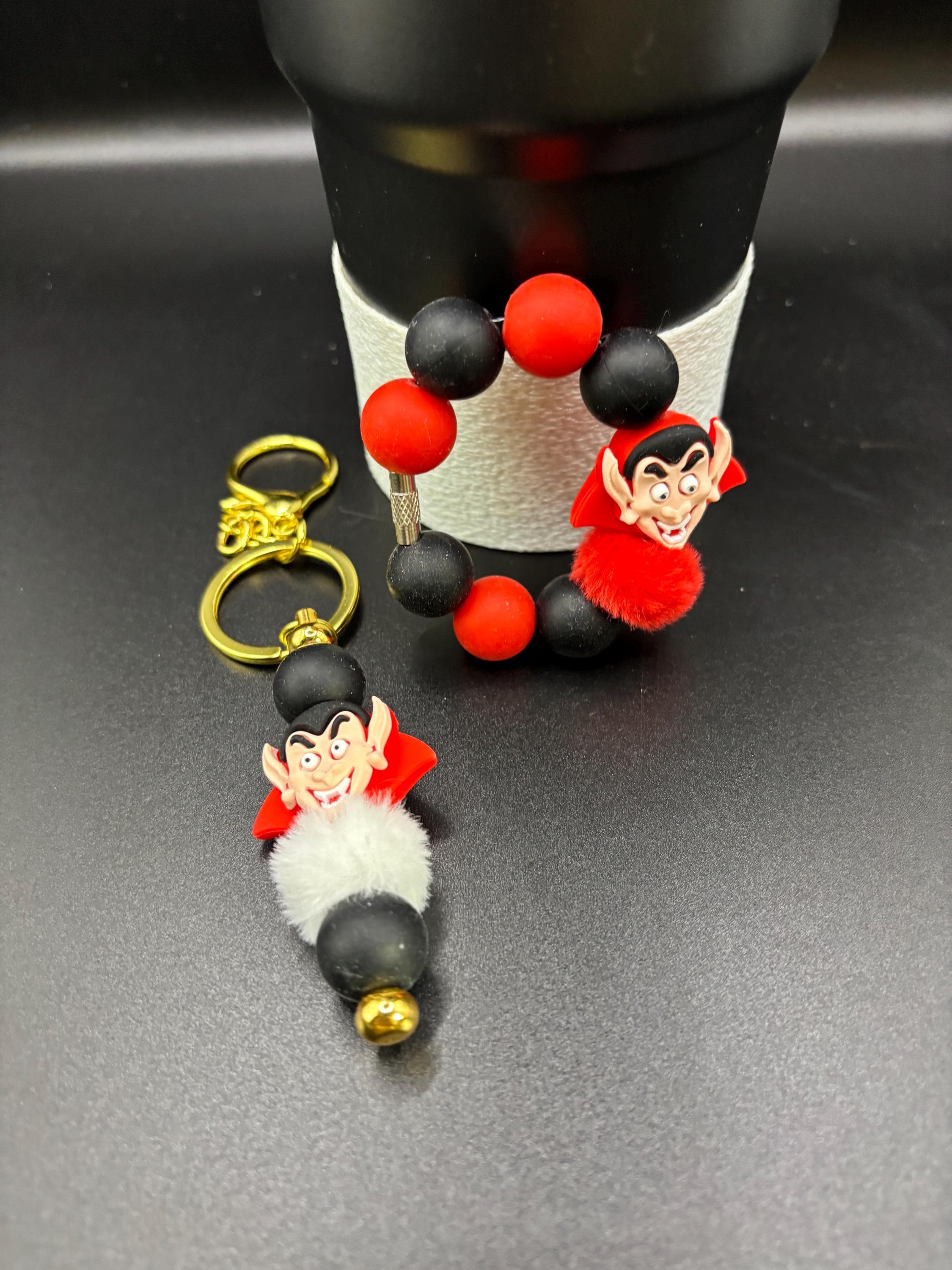 These fun handle and straw charm bracelets are made for your Tumbler and are shown on a 30 Ounce Stanley. They will fit any tumbler with a handle/ straw and could also be purse charms too !