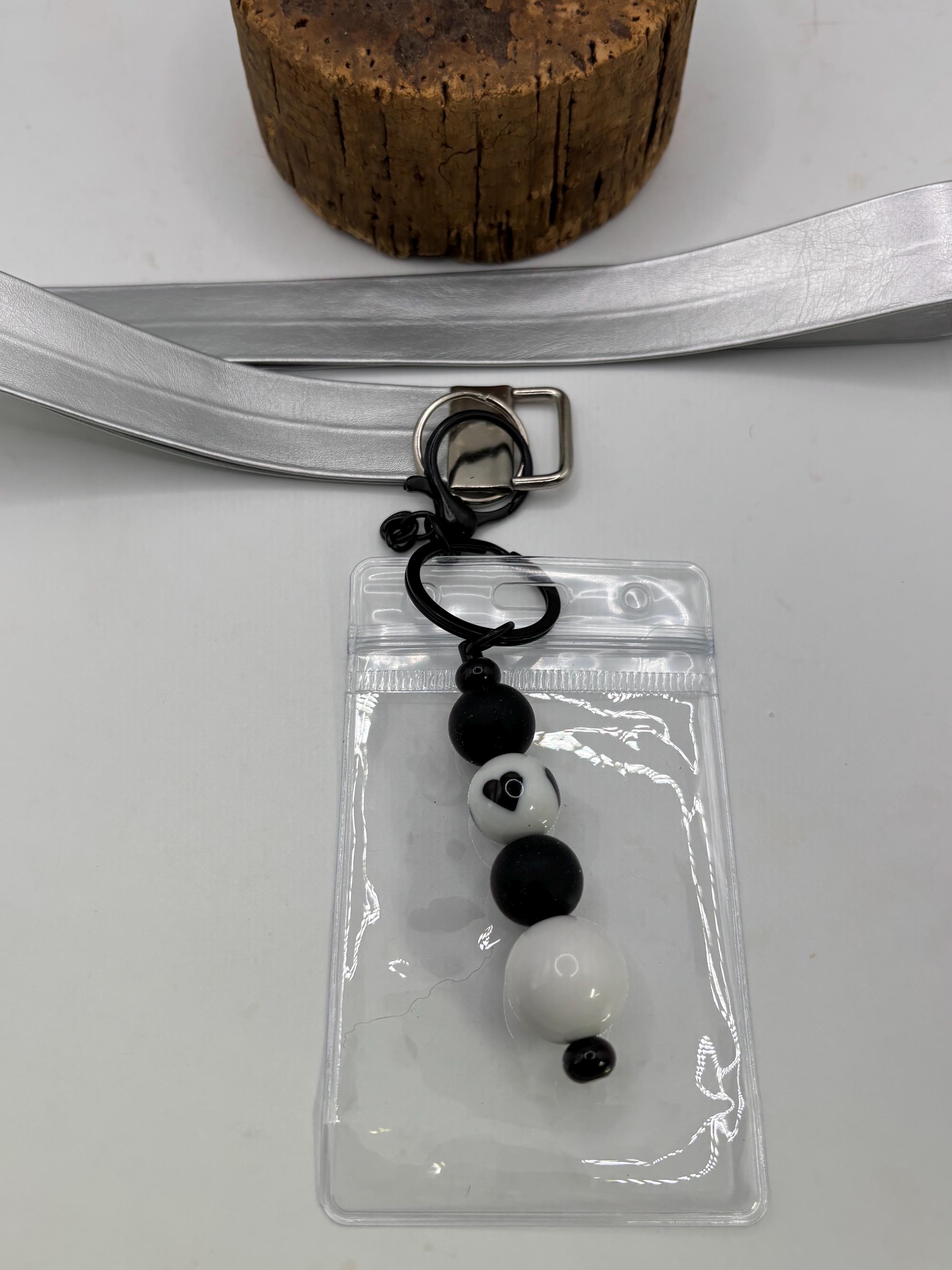 These pretty Lanyards are a great gift for yourself or someone else ! Made with soft, silver colored faux/vegan leather, on a 36 inch lanyard . Perfect for cruisers or anyone who wants a lanyard with a touch of bling.