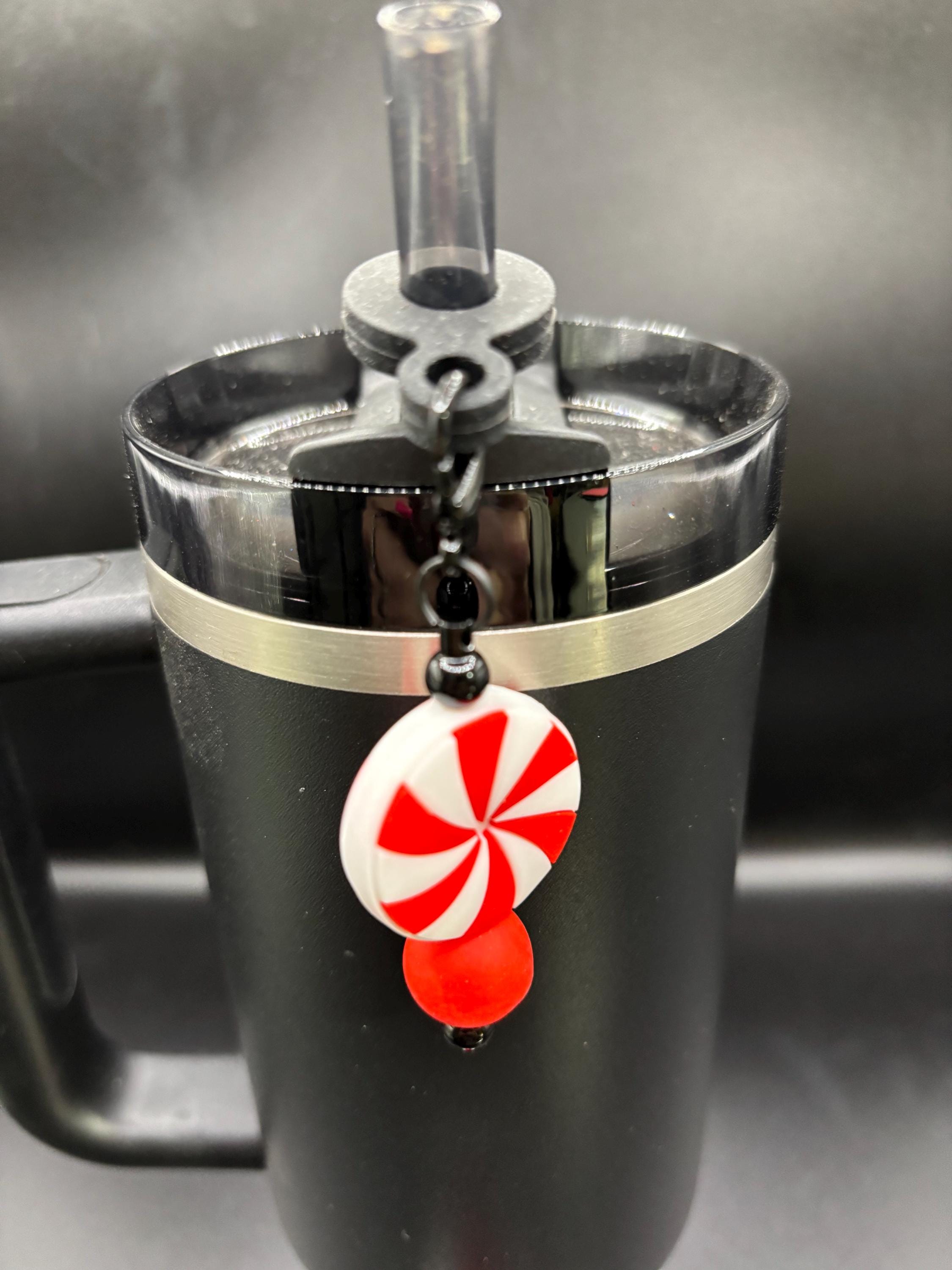 These holiday handle bracelets and straw charms are made for your Tumbler and are shown on a 30 Ounce Stanley. They will fit any tumbler with a handle and or straw.