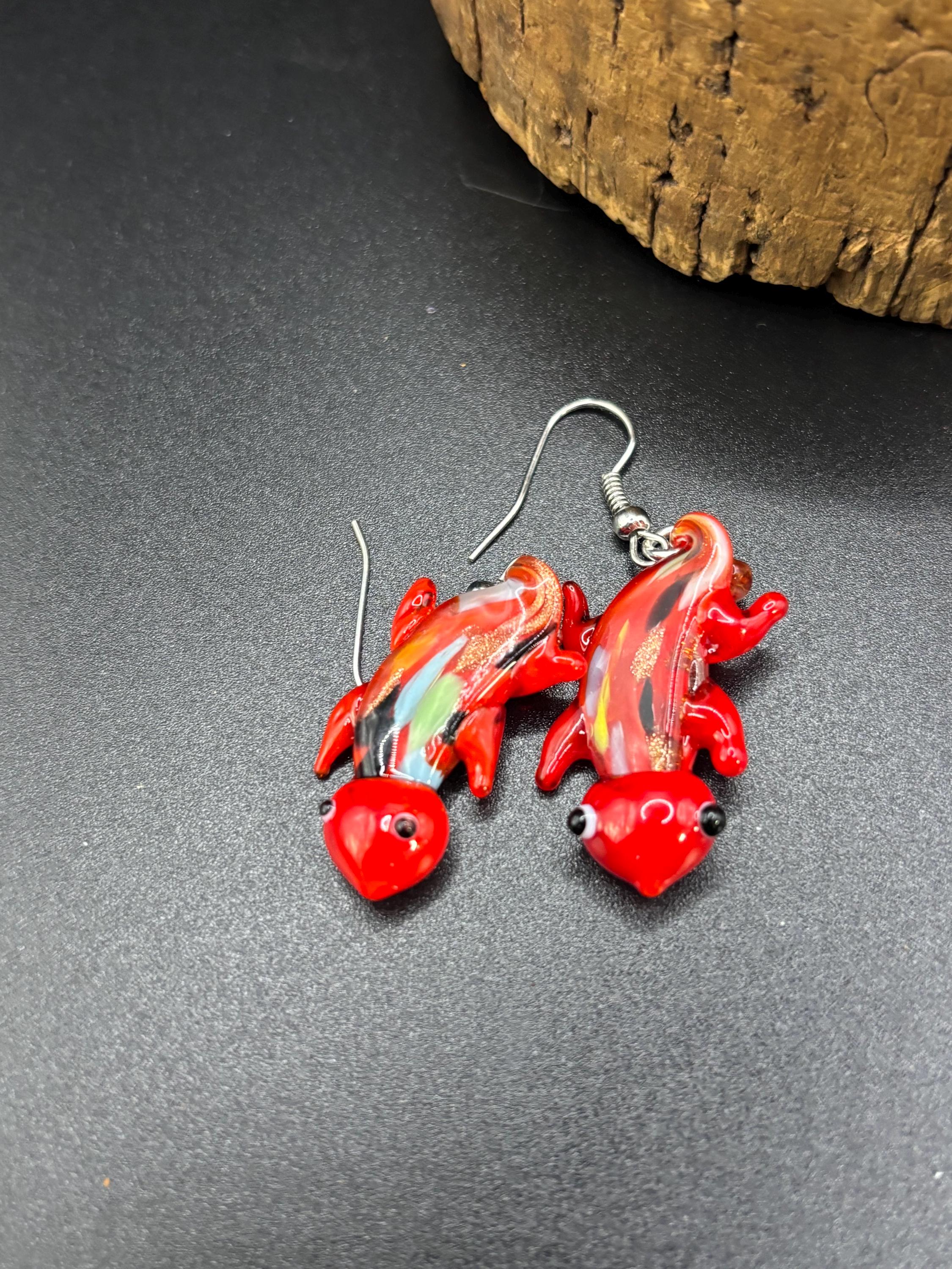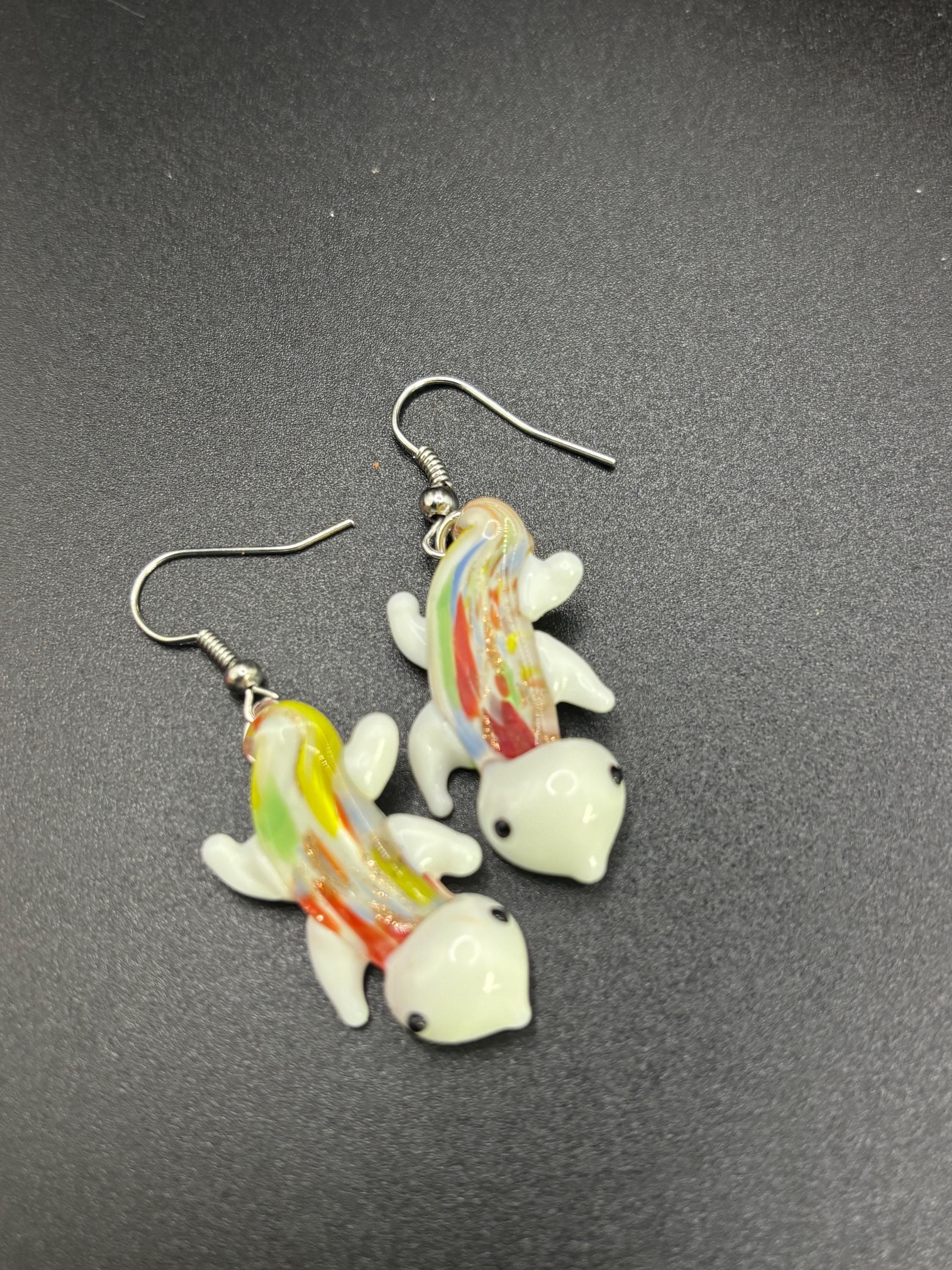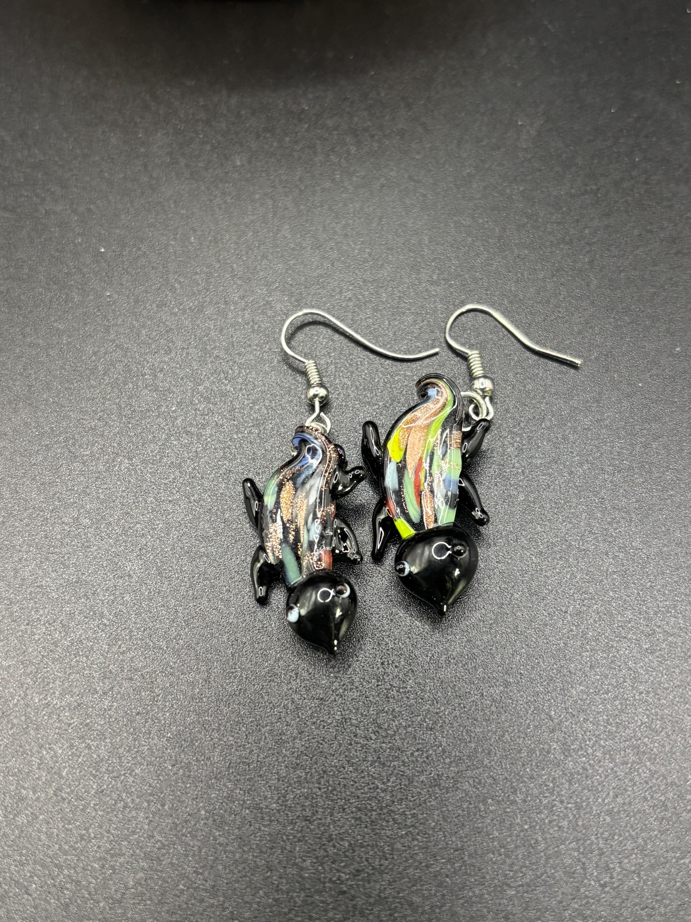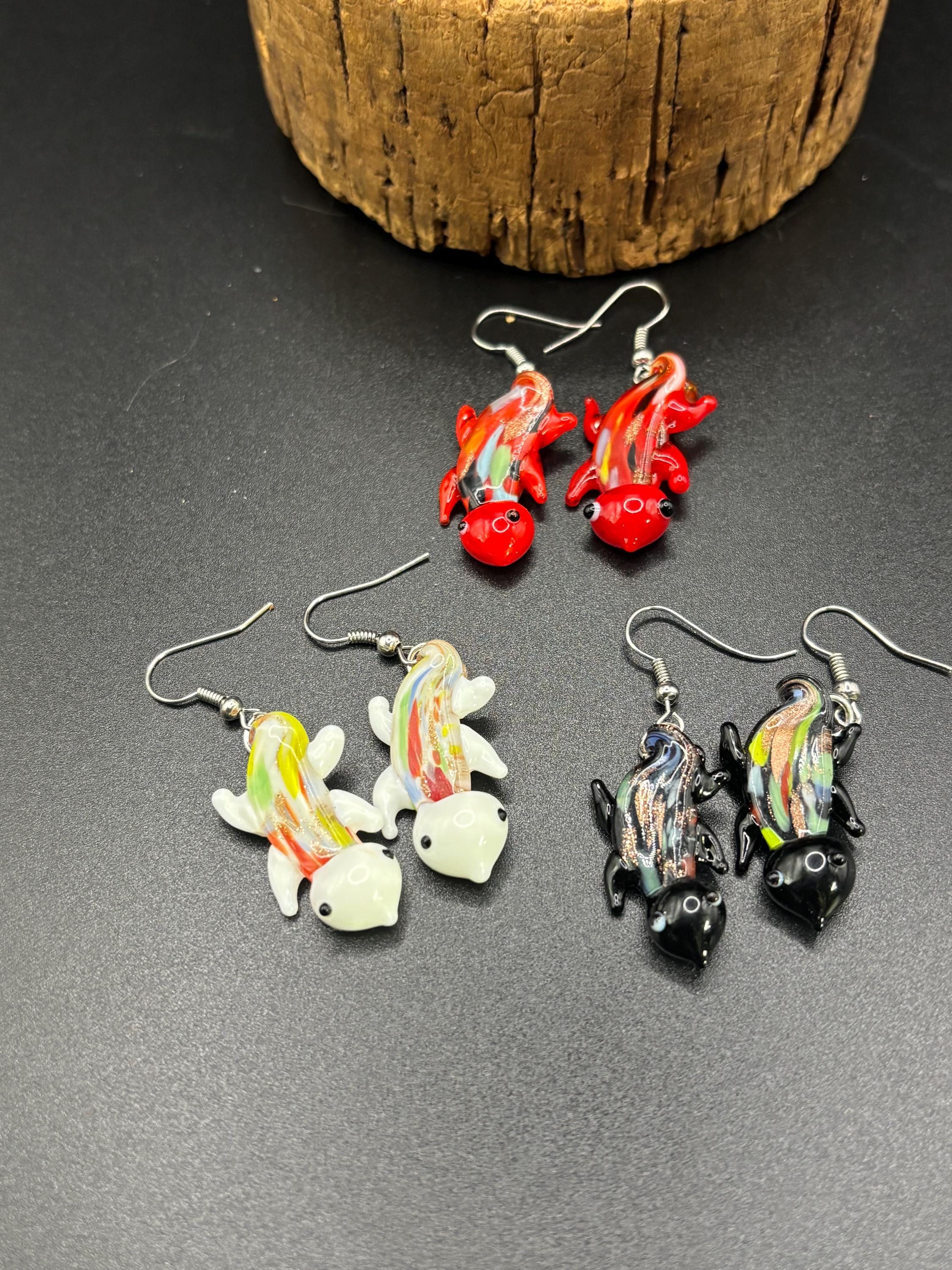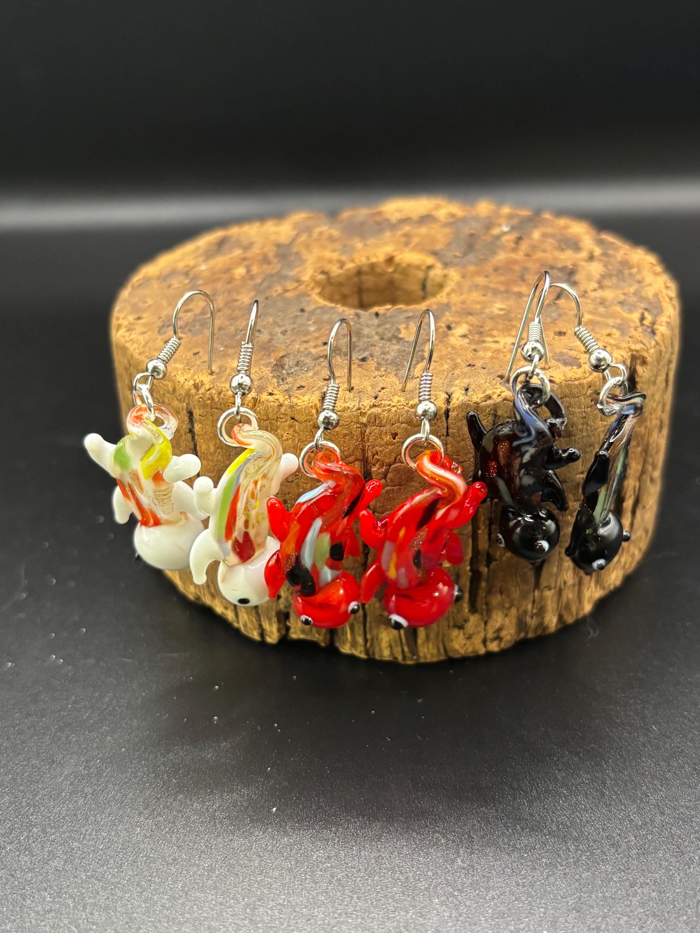 These Murano Inspired Glass Lamp Work earrings come in 3 colors and are 1.5 inches long. Pattern may vary slightly between the pairs I have available.