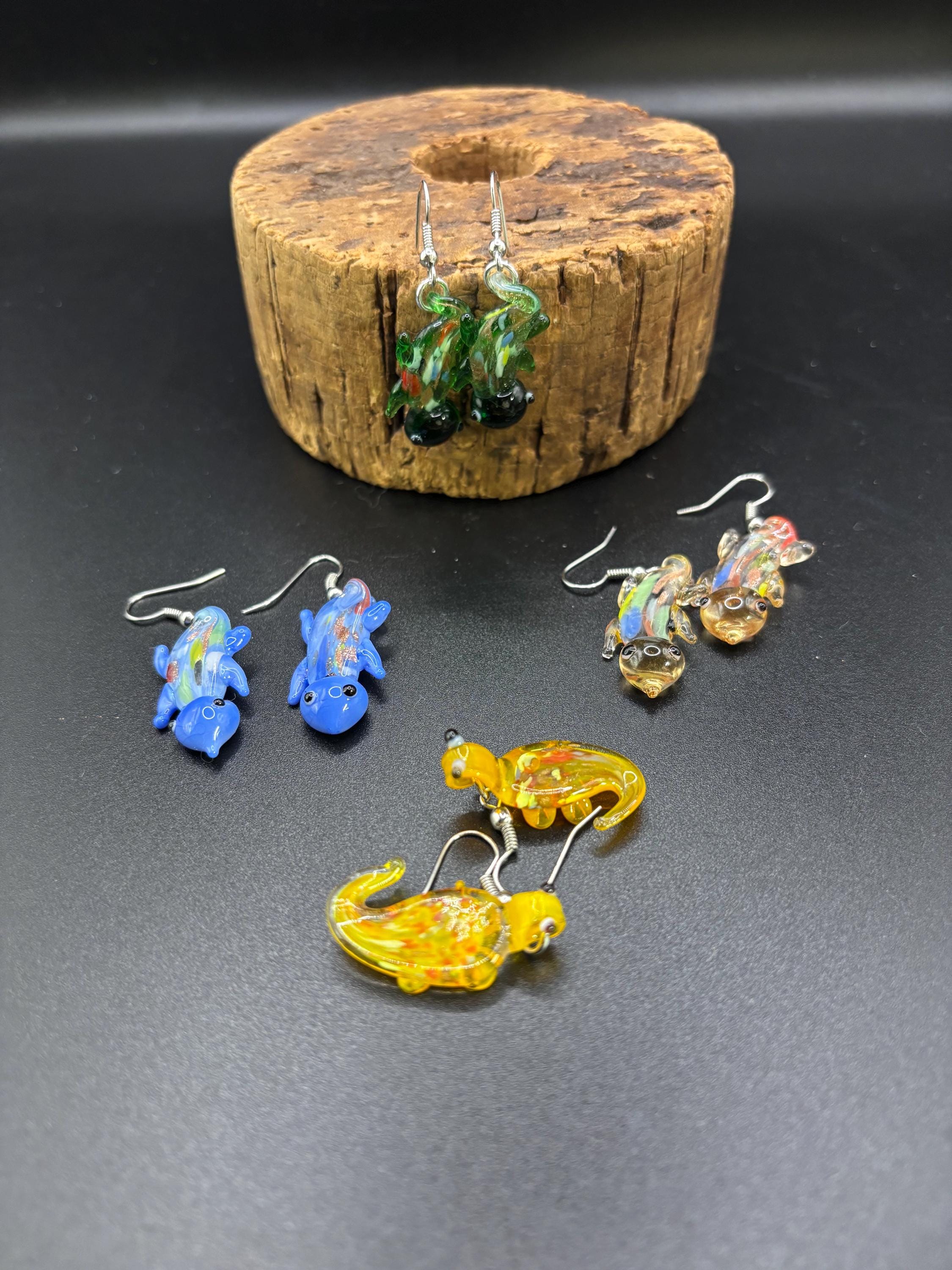 Lampwork Glass Gecko Earrings | Millefiori | Murano Inspired Lamp Work | Colorful Options Available