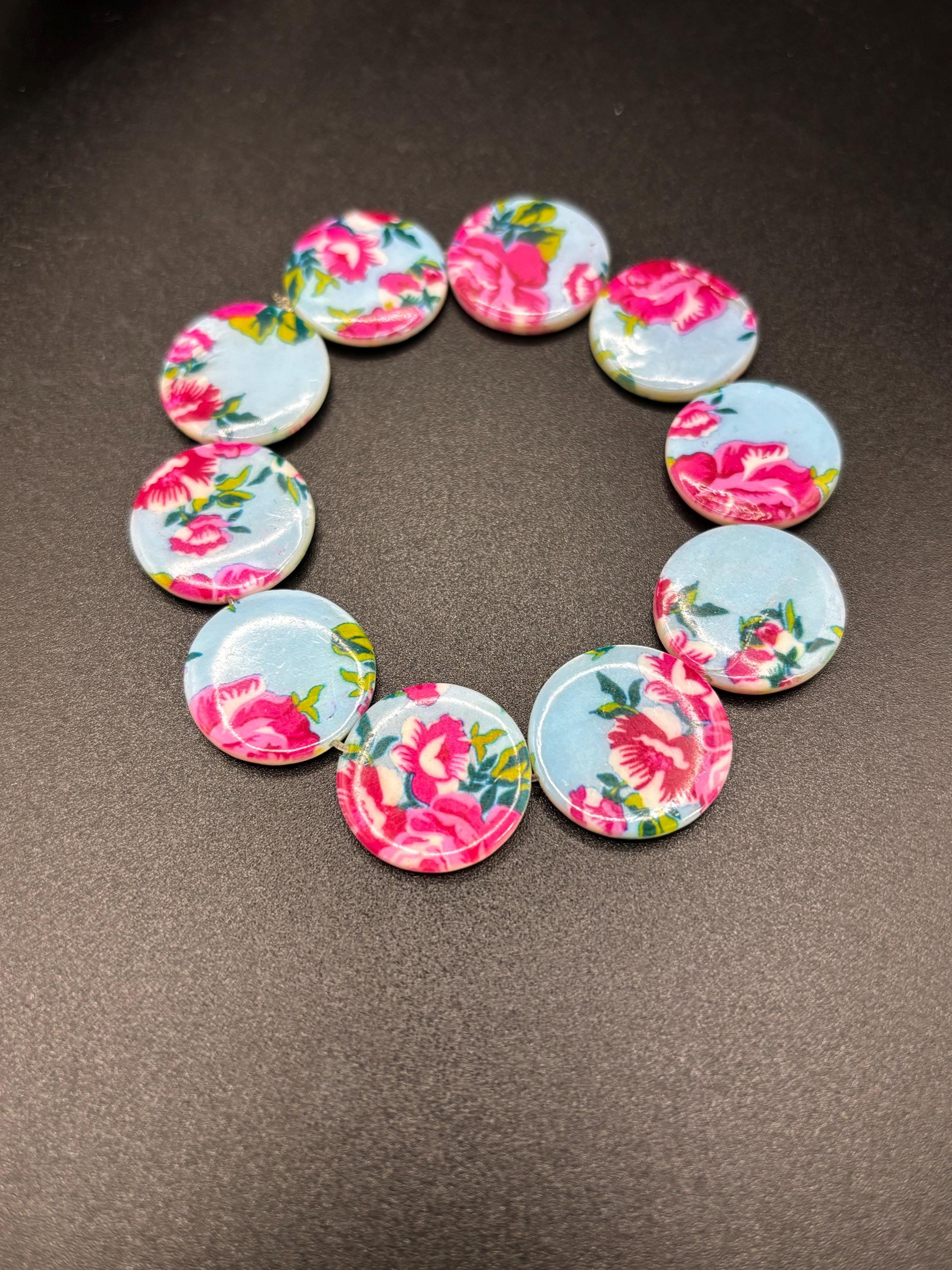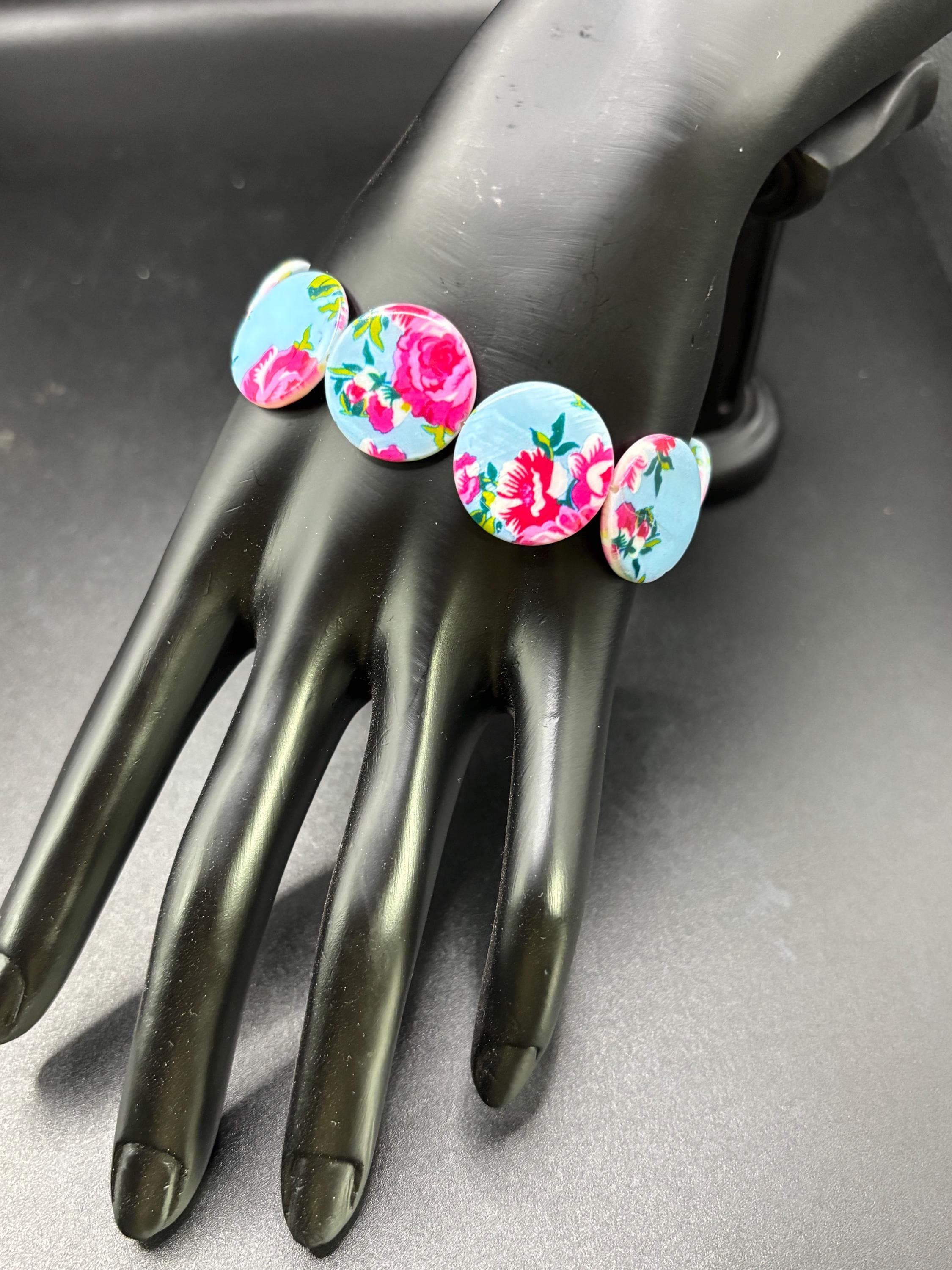 I’m in my regency era with creating this bracelet. Made with pretty blue and pink round flat beads.