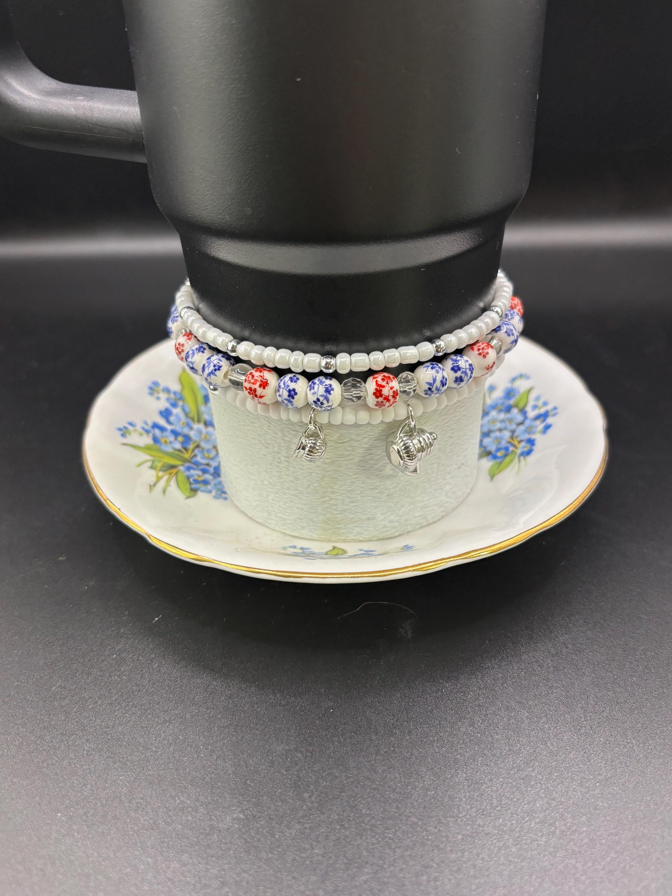 These fun charm bracelets are made for your Tumbler and are shown with a tumbler (on a tea saucer lol)