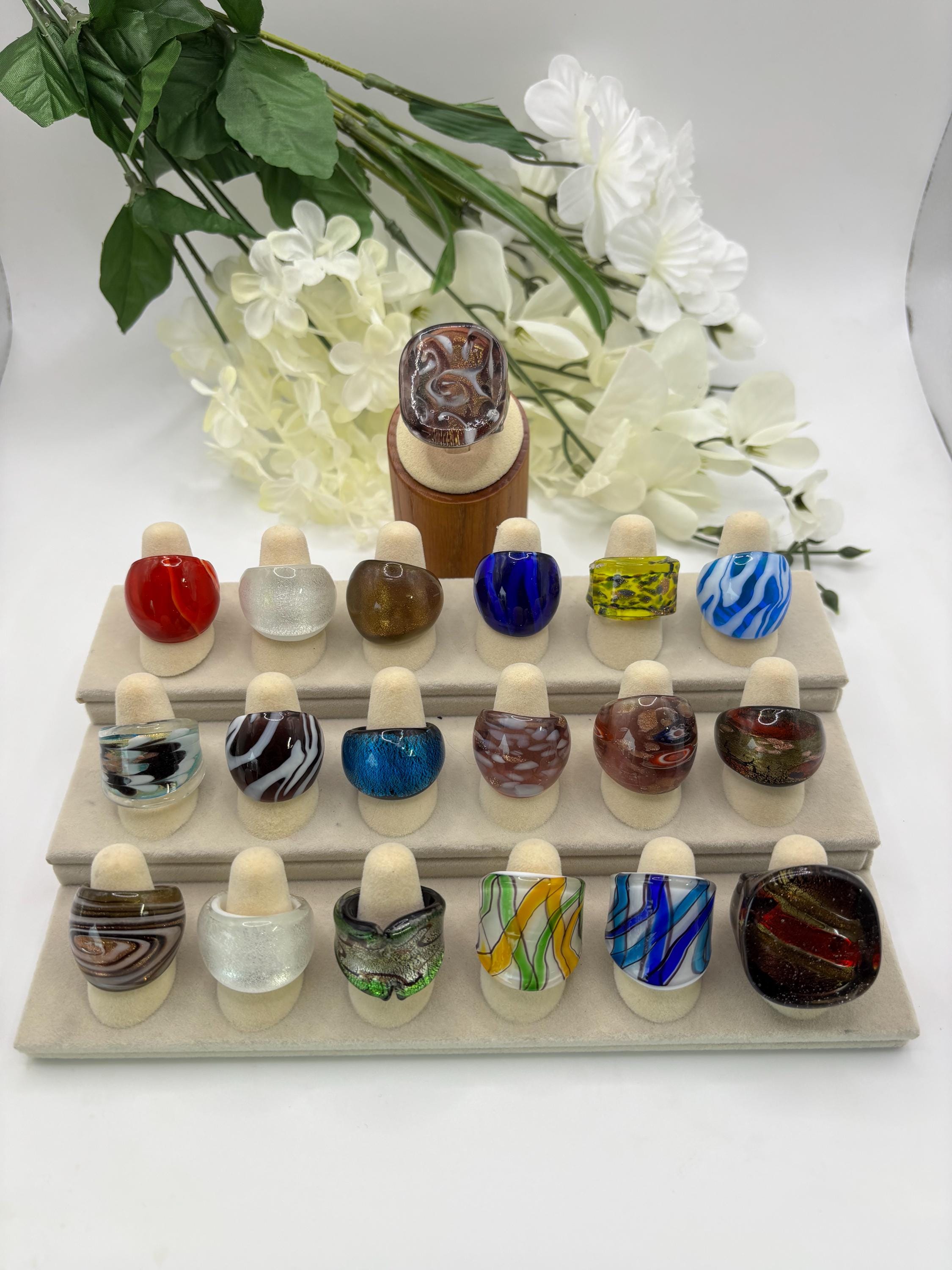 There will be many options by style, color and ring type. There are Millefiori designs as well as Murano inspired glass rings to chose from.