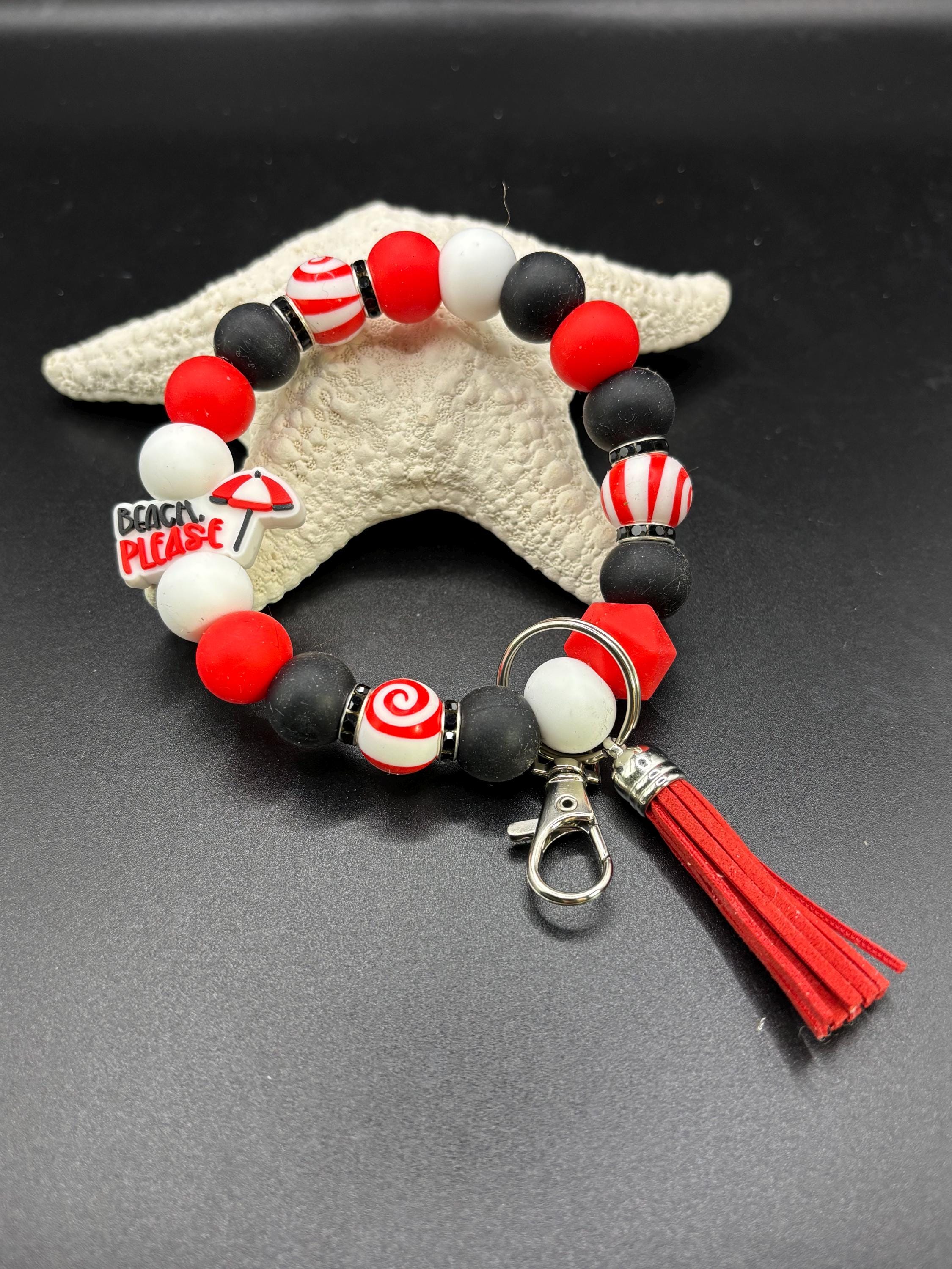 Beach Please Beaded Wristlet Keychain | Keychain with Silicone and Beach Please Focal | Keychain | Key Fob | Wristlet | Cruise